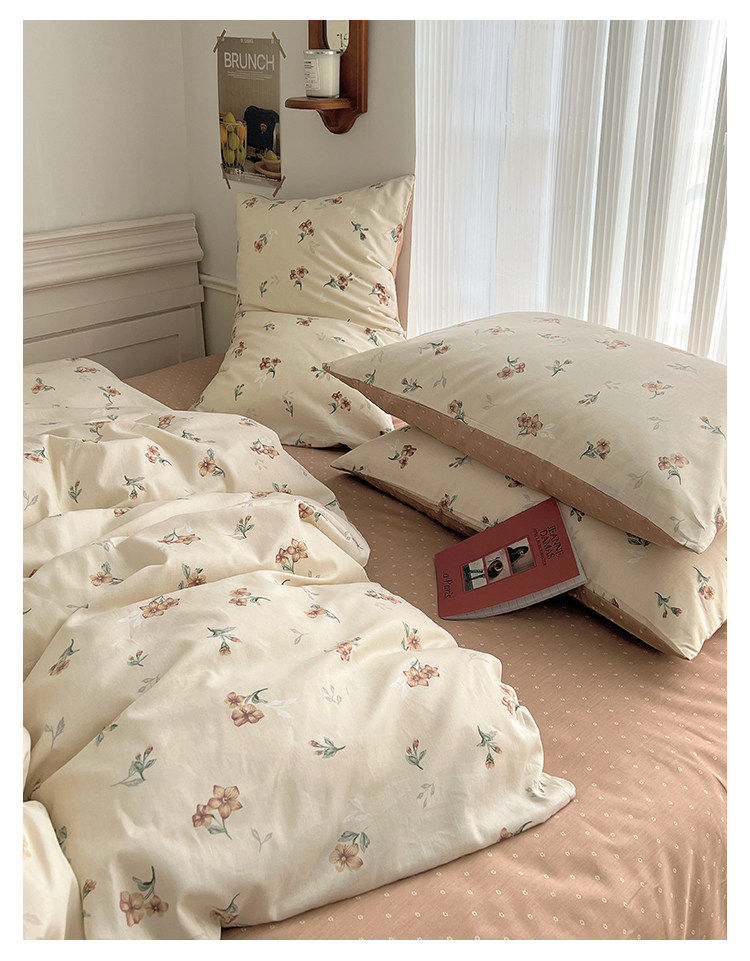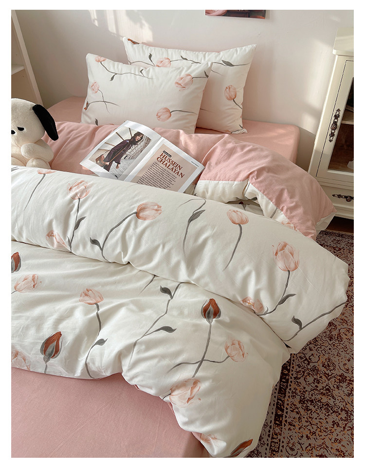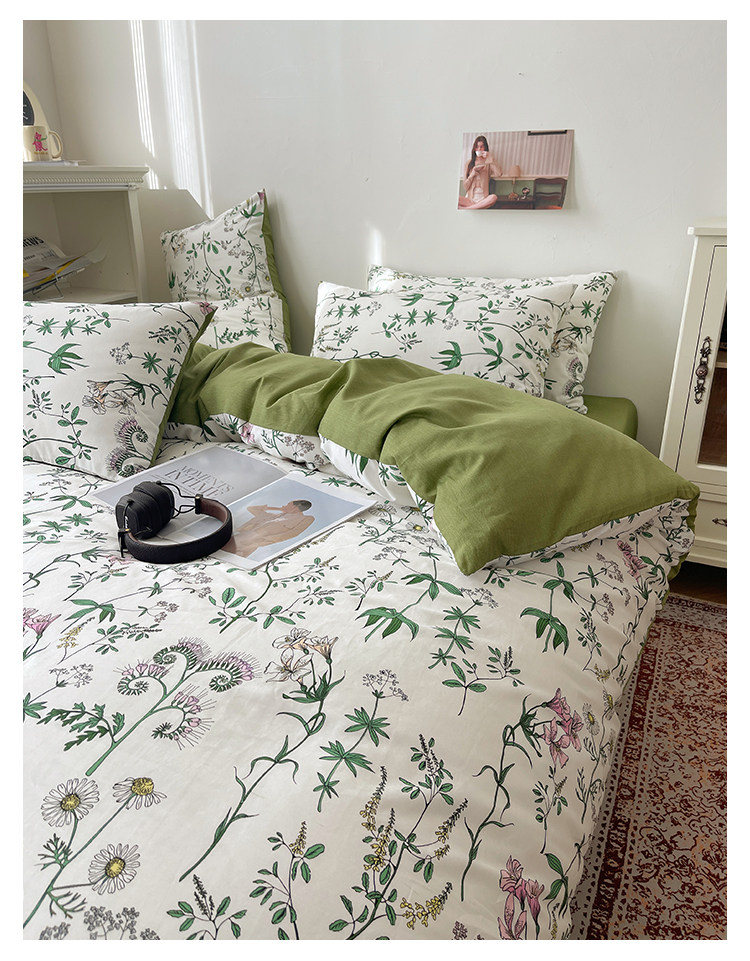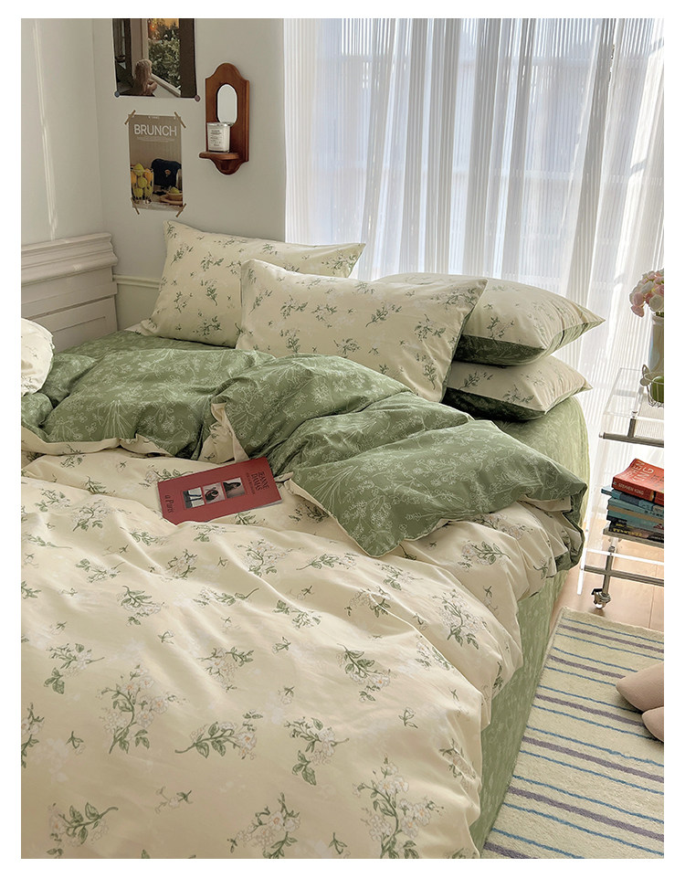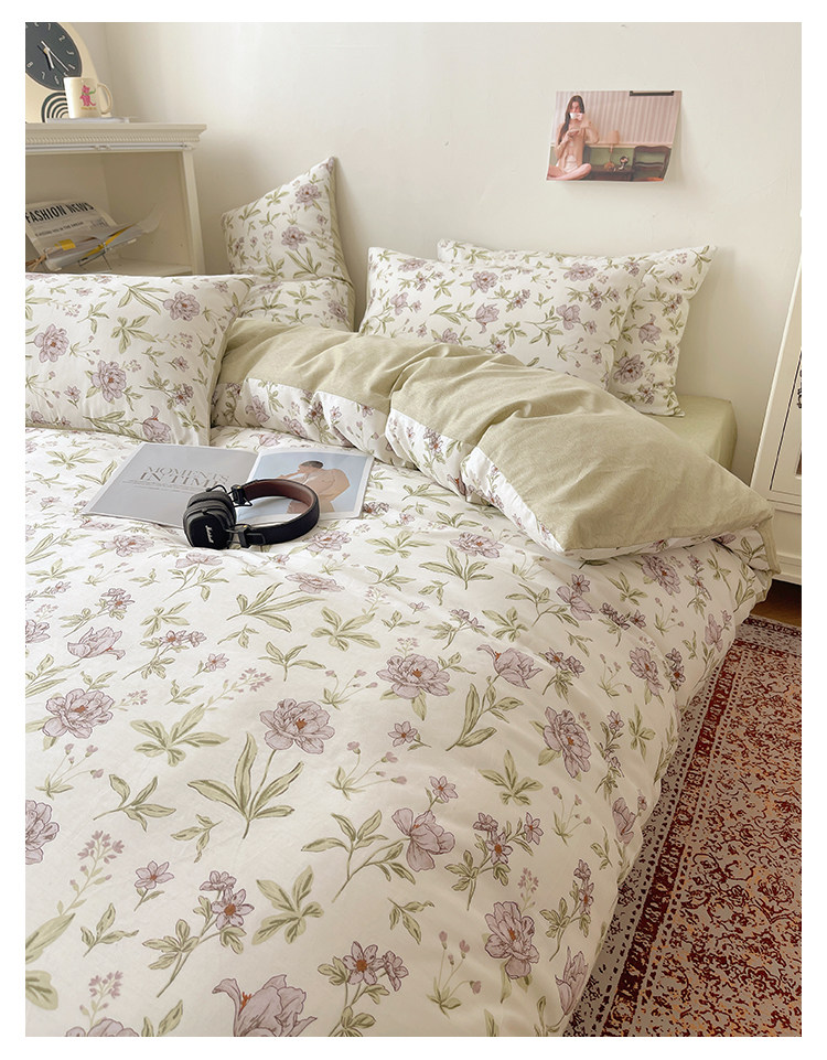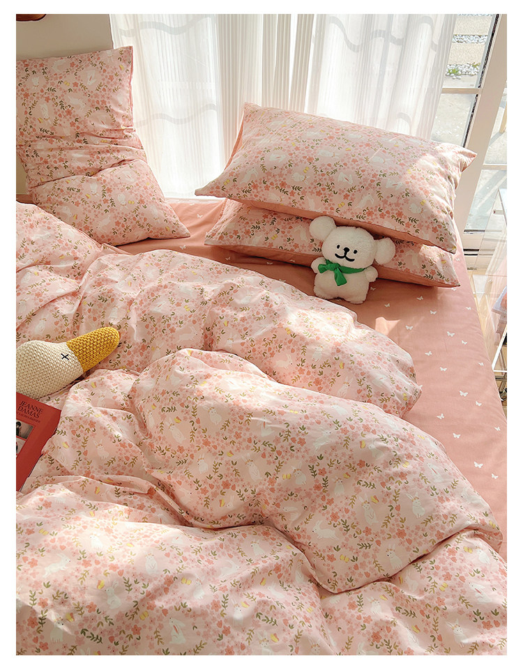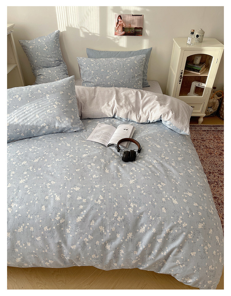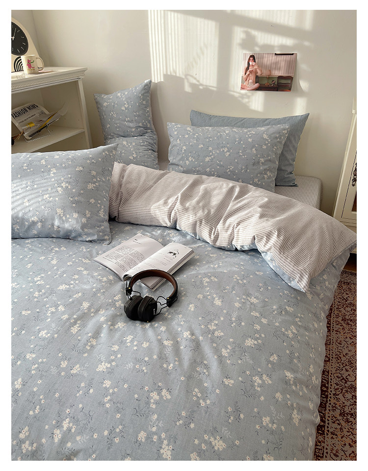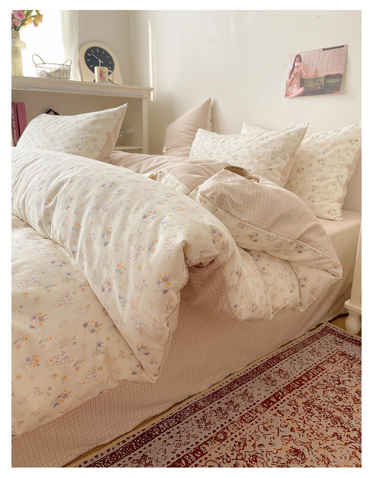 木悠ins田園風四件套純棉全棉小清新床單被套學生宿捨床上三件套