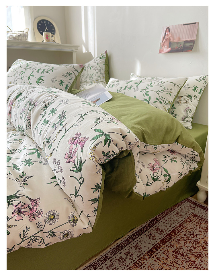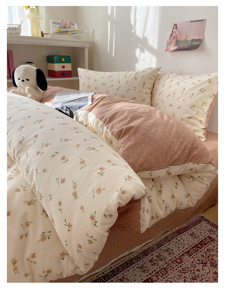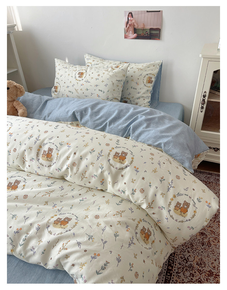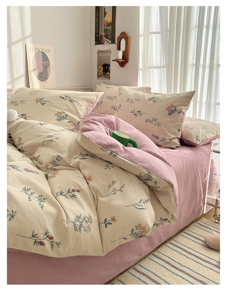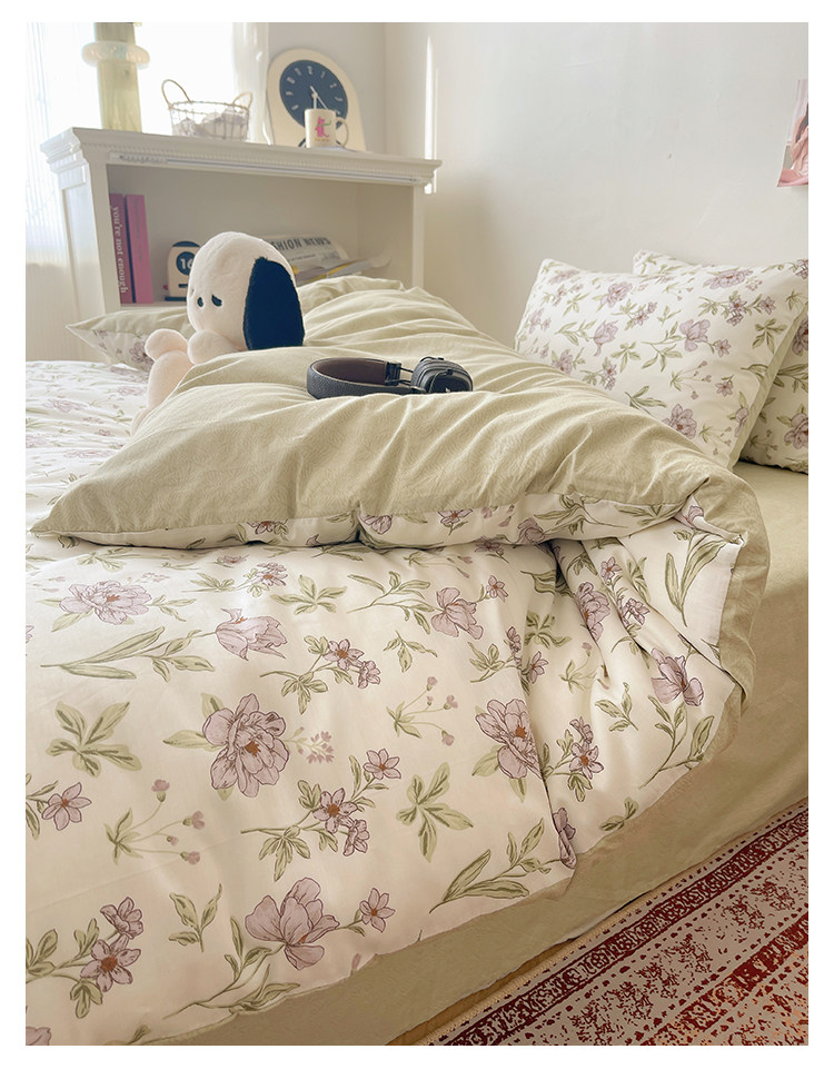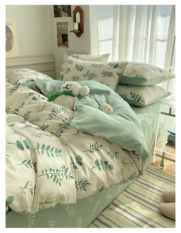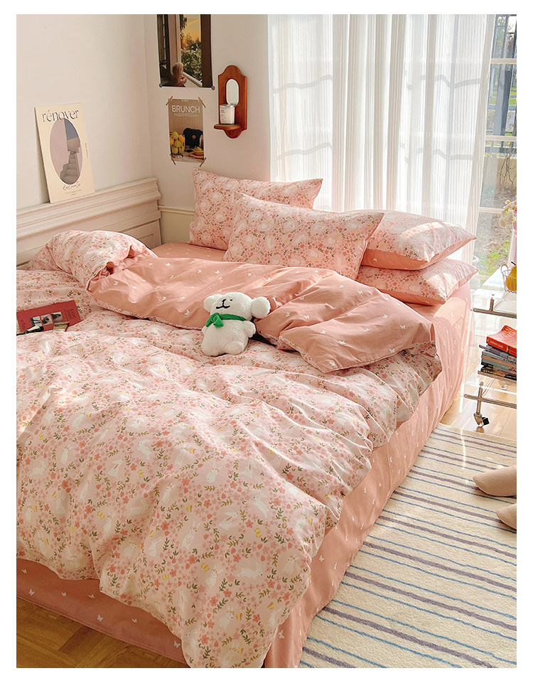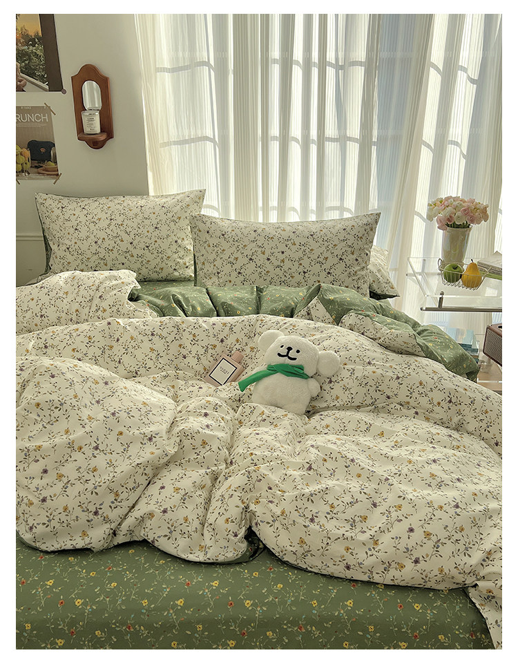 木悠ins田園風四件套純棉全棉小清新床單被套學生宿捨床上三件套
