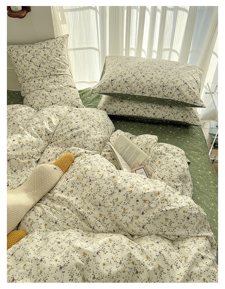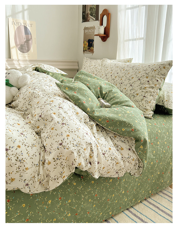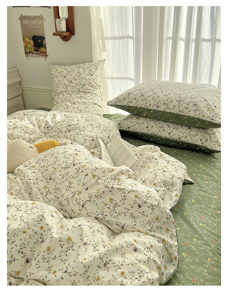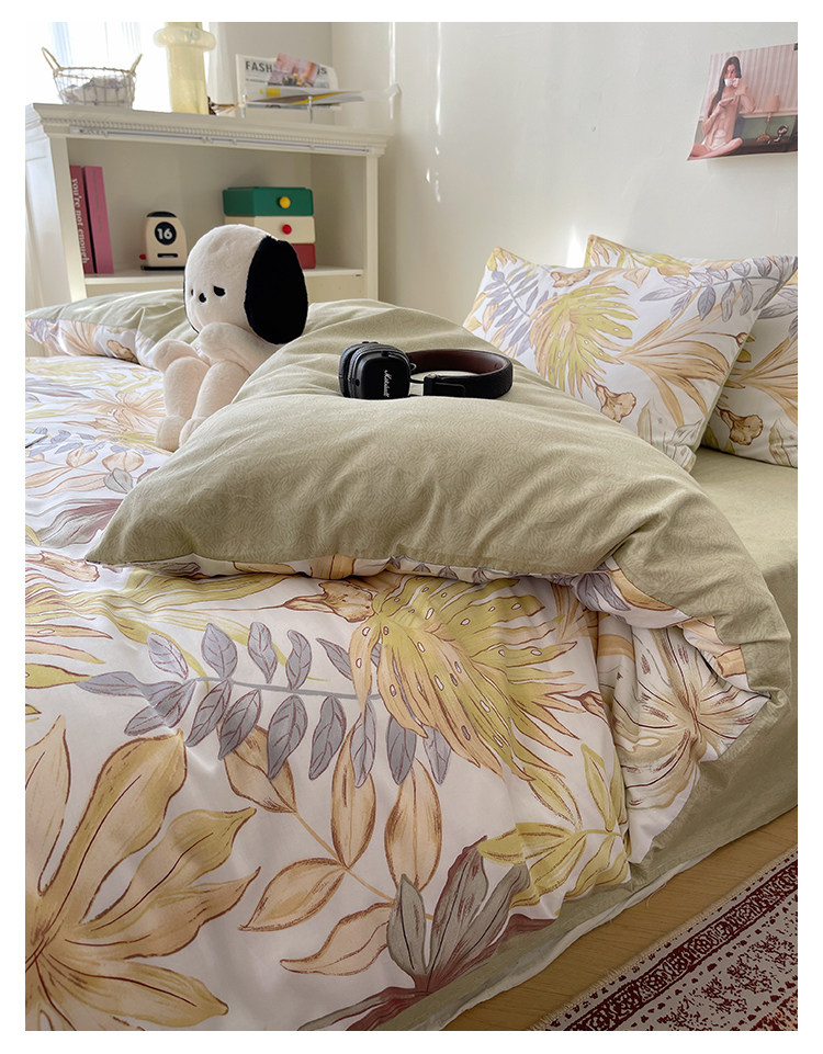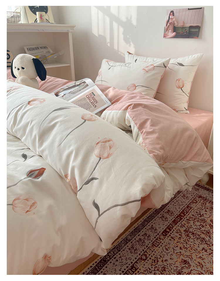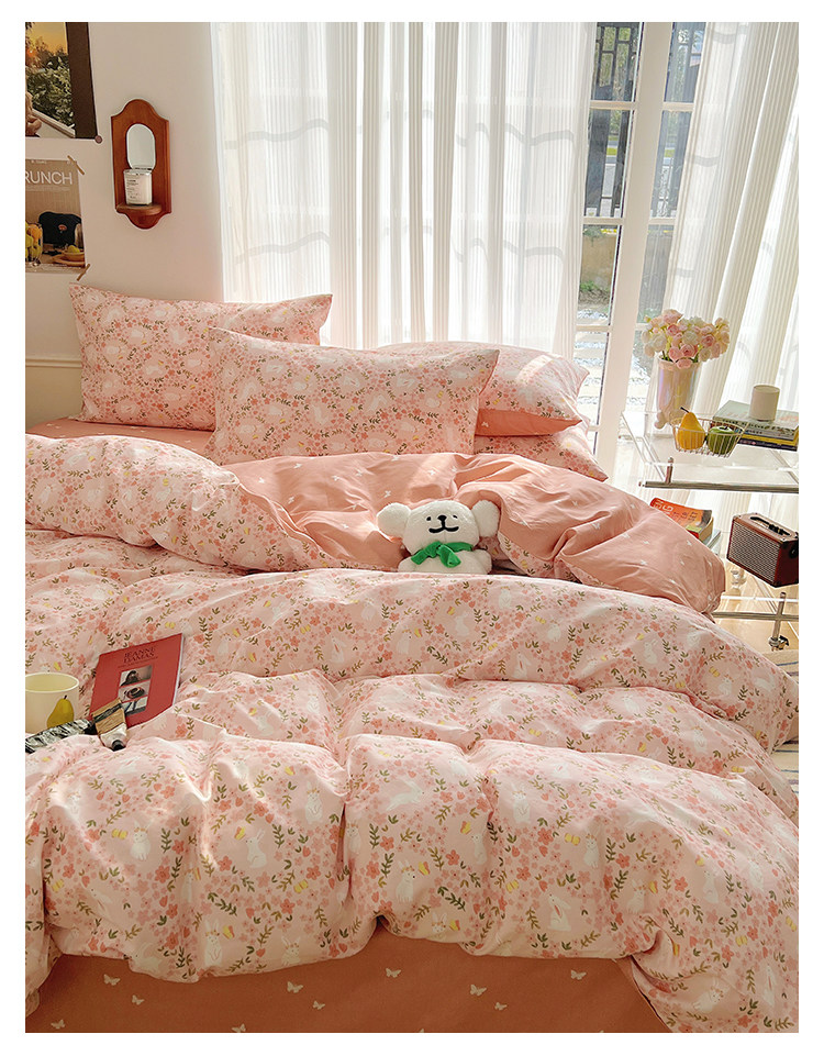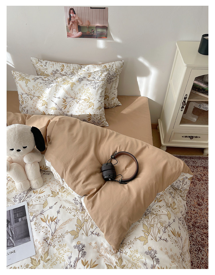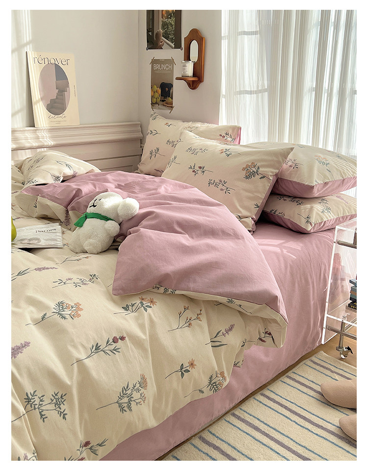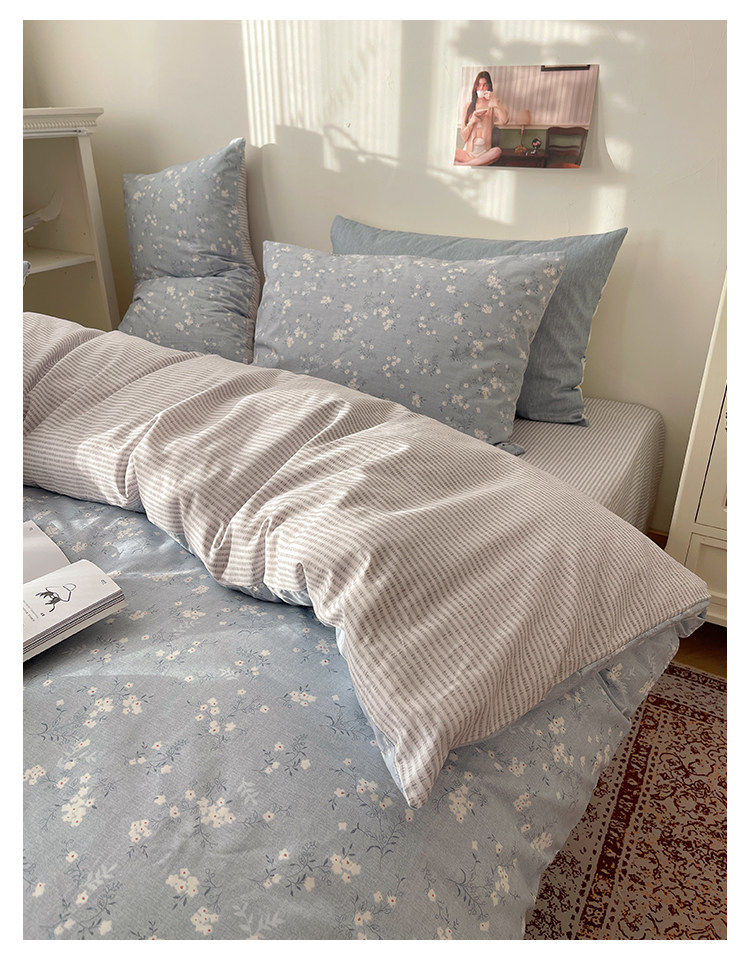木悠ins田園風四件套純棉全棉小清新床單被套學生宿捨床上三件套