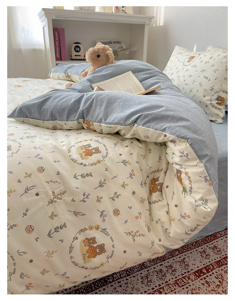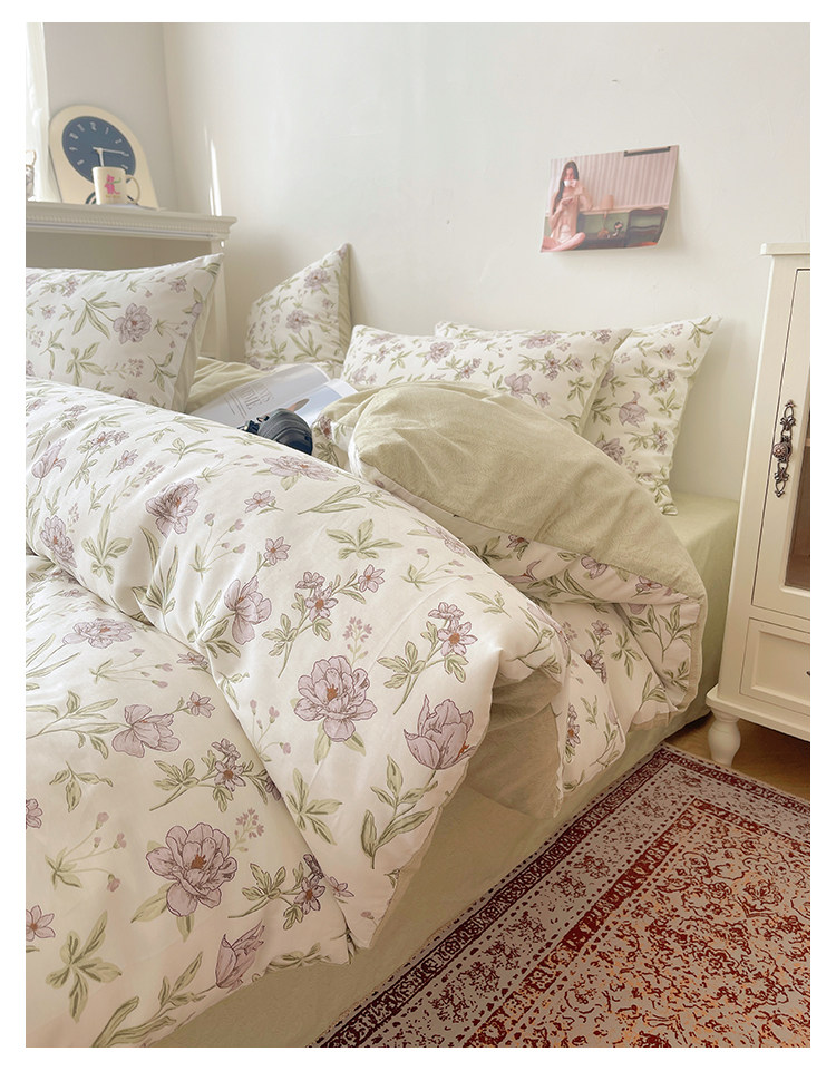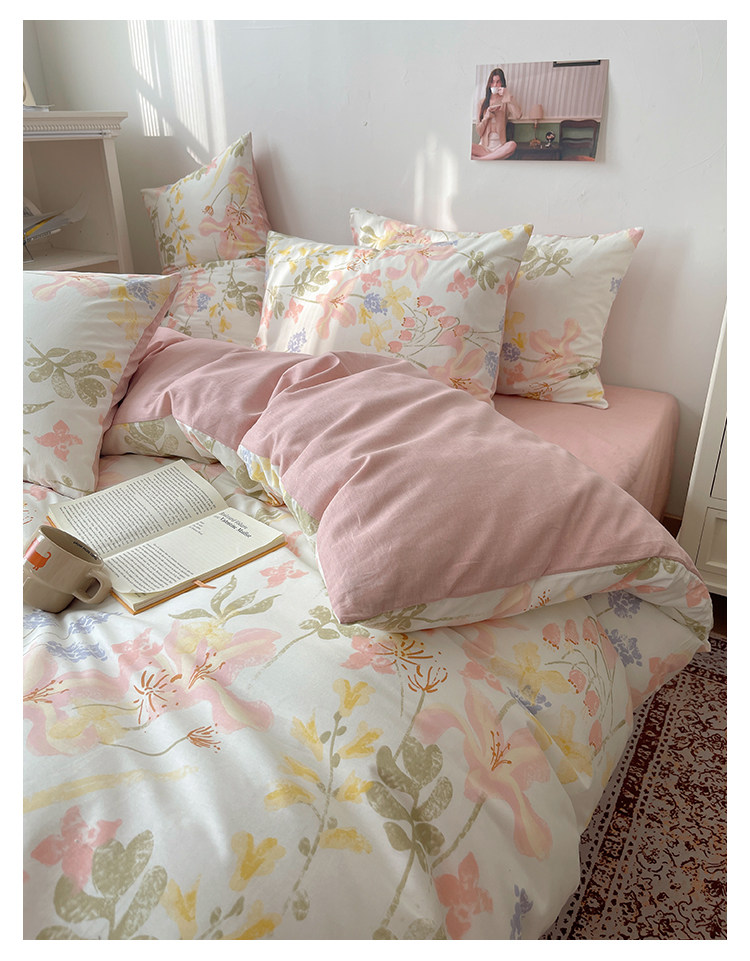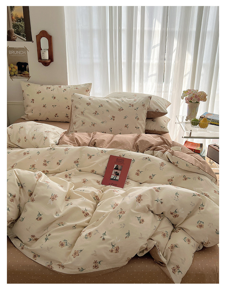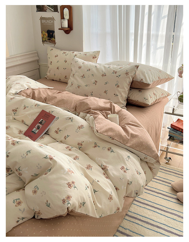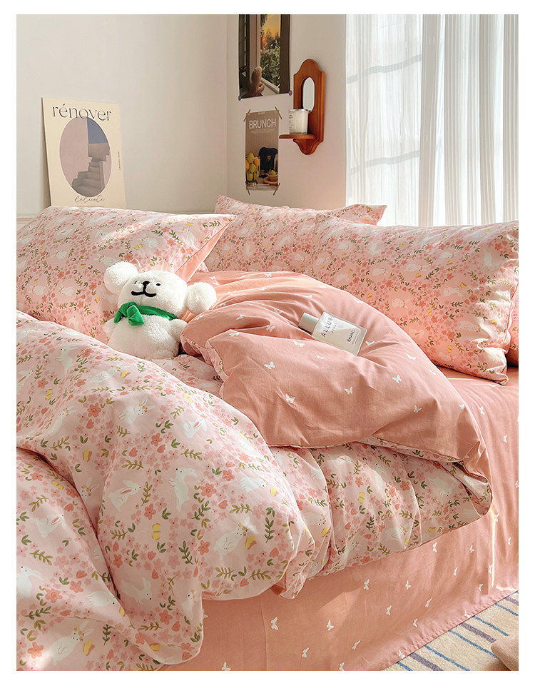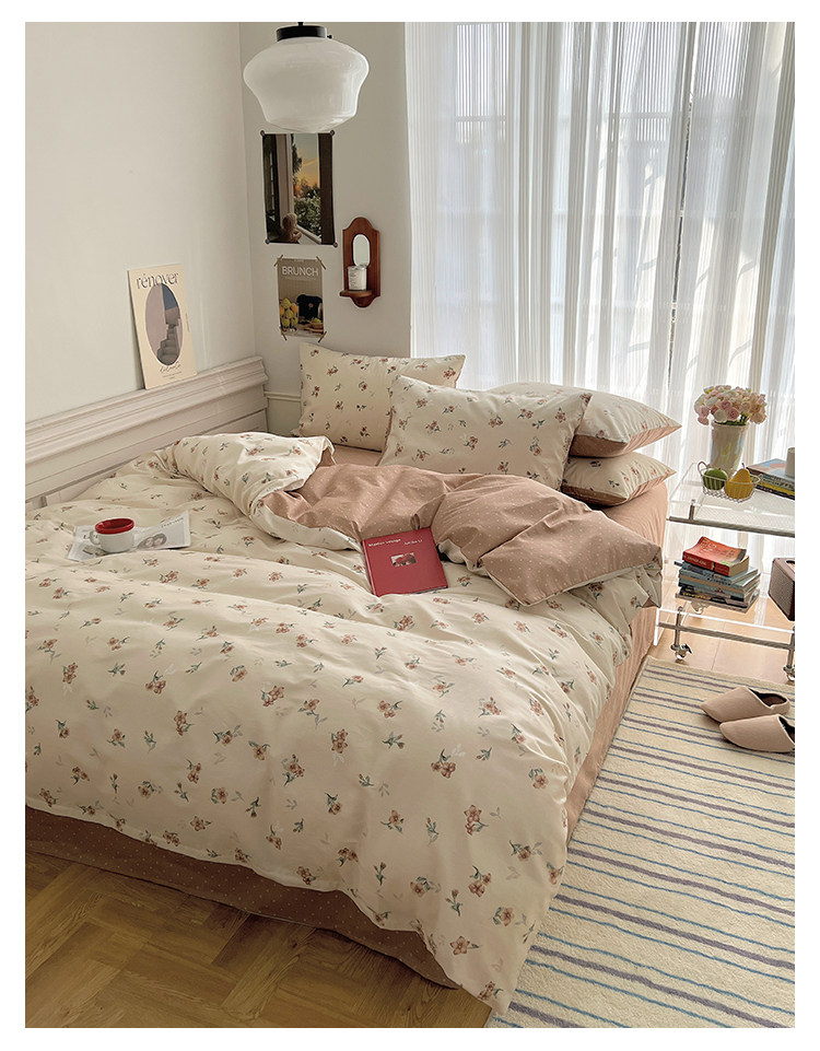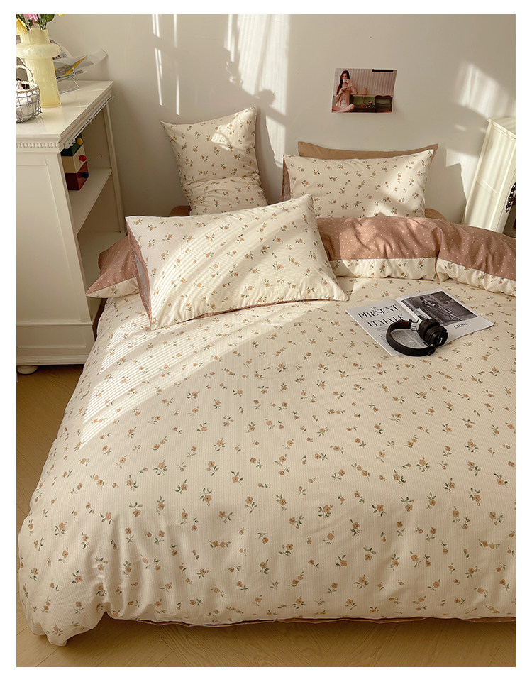 木悠ins田園風四件套純棉全棉小清新床單被套學生宿捨床上三件套