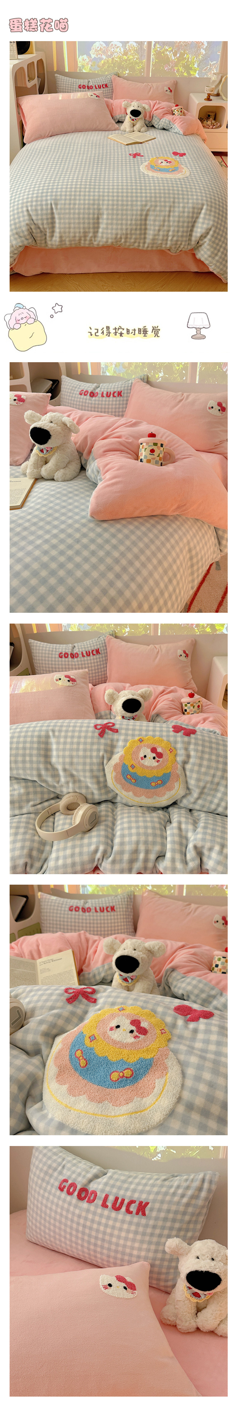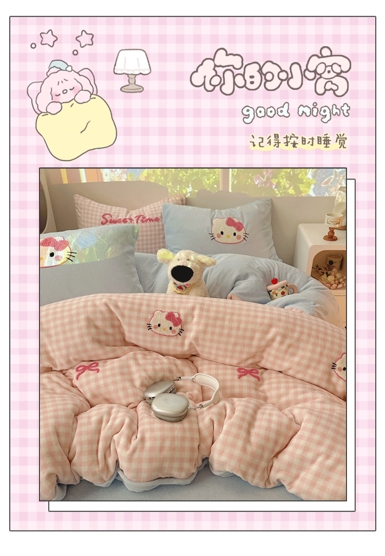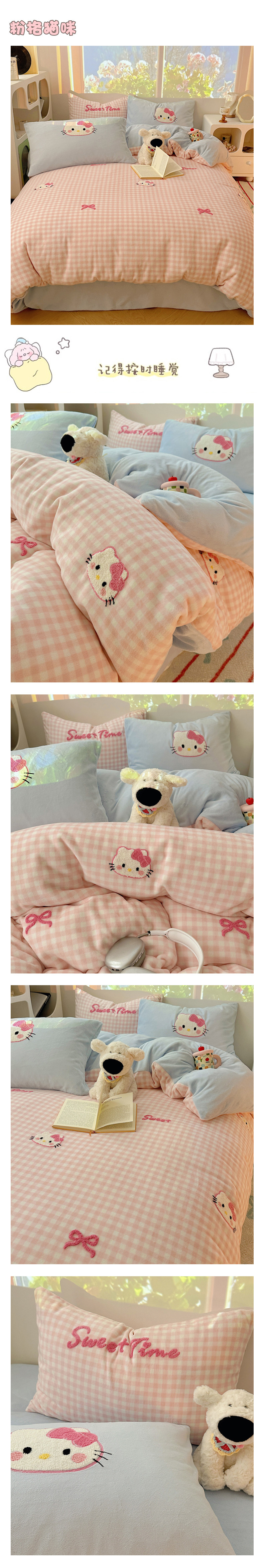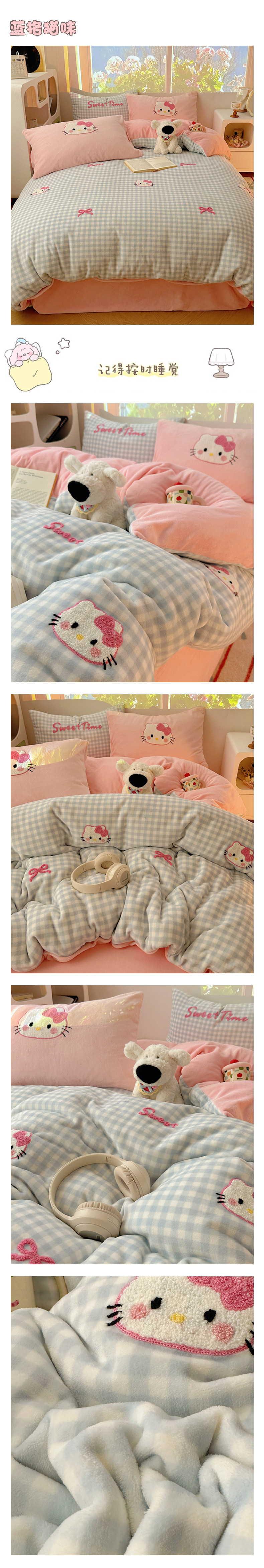可愛Hello Kitty牛奶絨四件套卡通被套三件套床單宿捨珊瑚絨床品4
