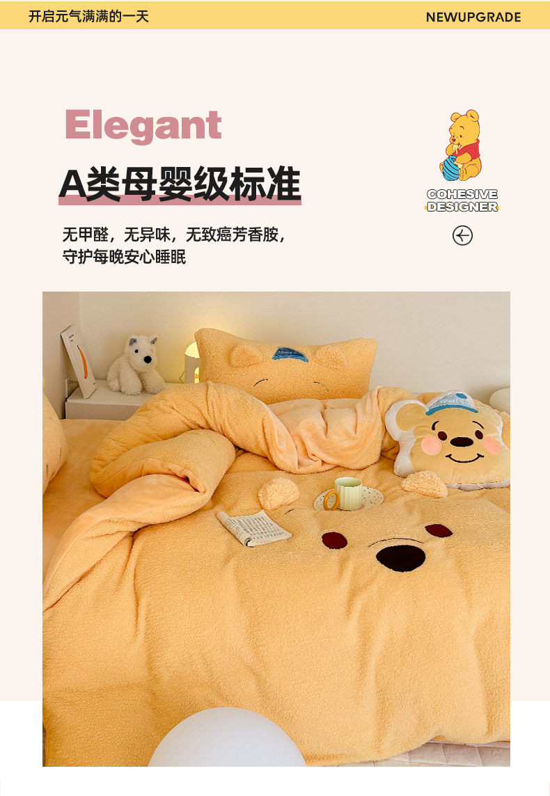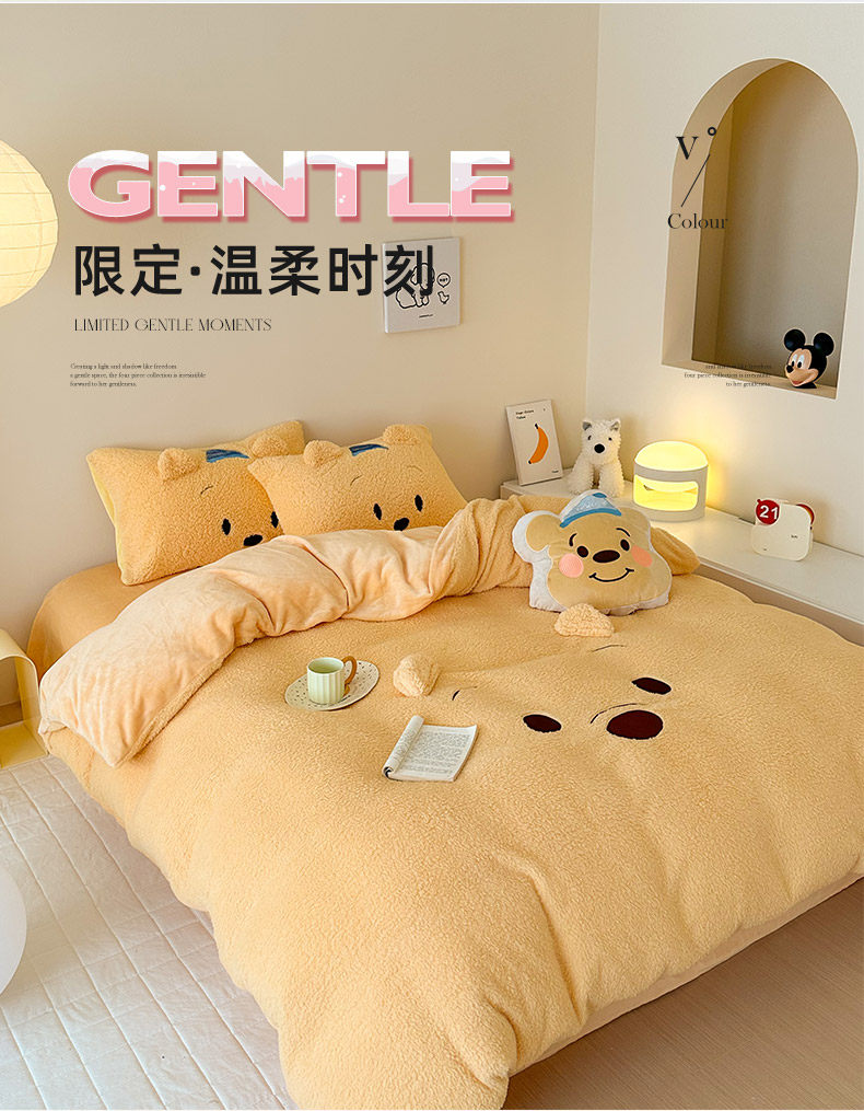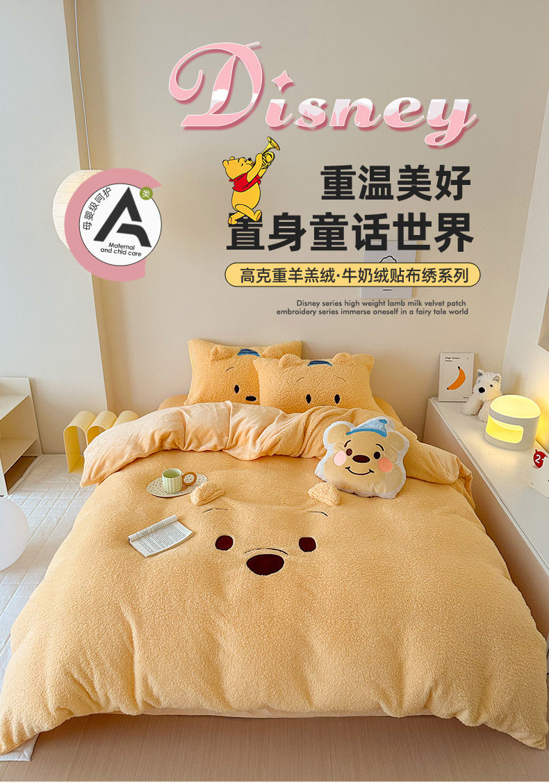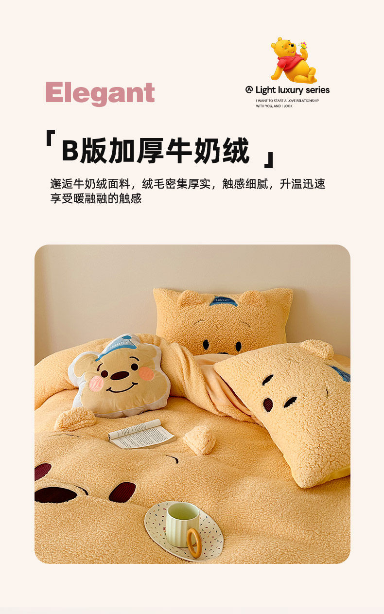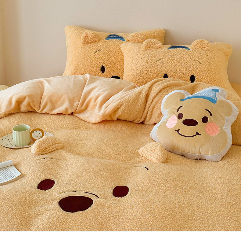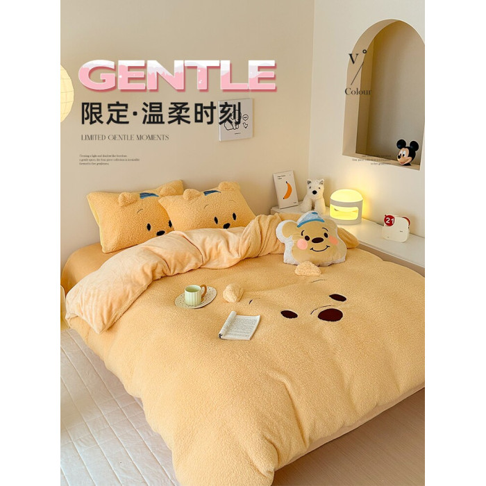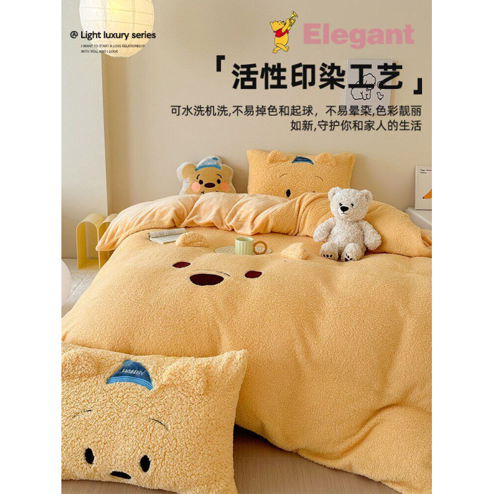 加厚維尼熊羊羔絨四件套加厚絨被套罩冬季牛奶絨床單床包三件套