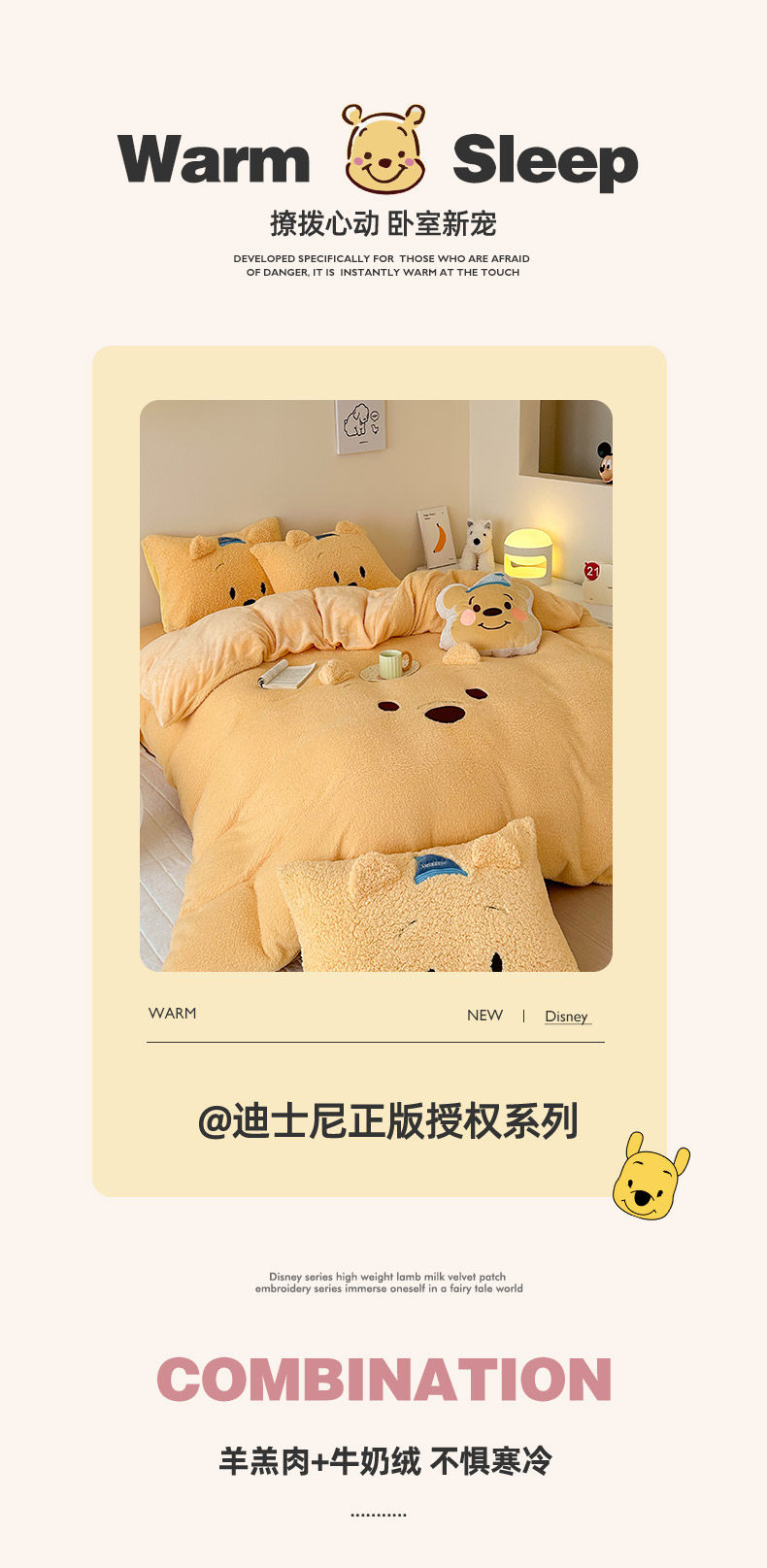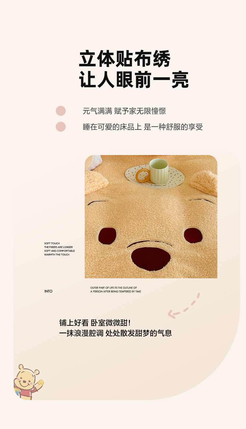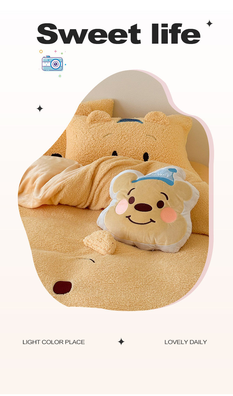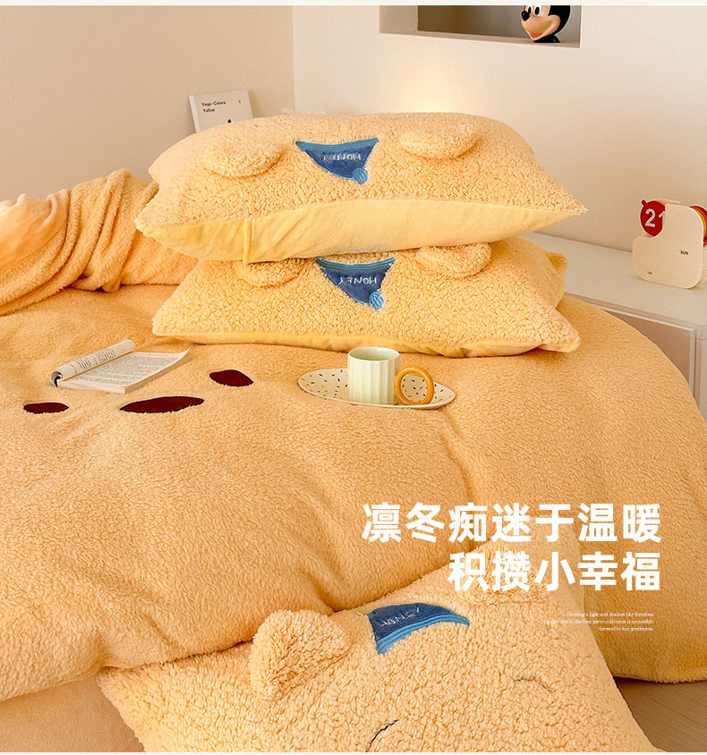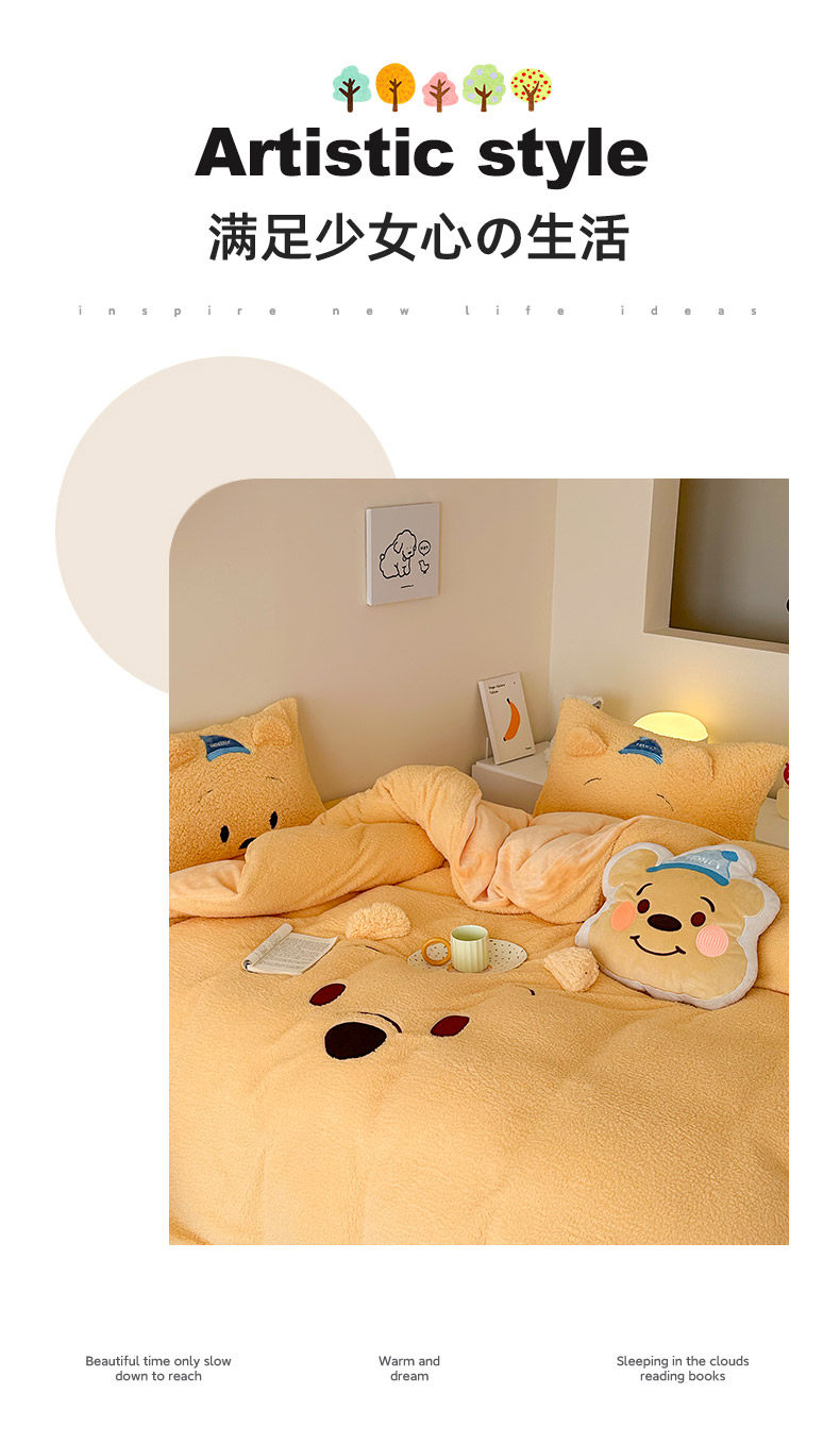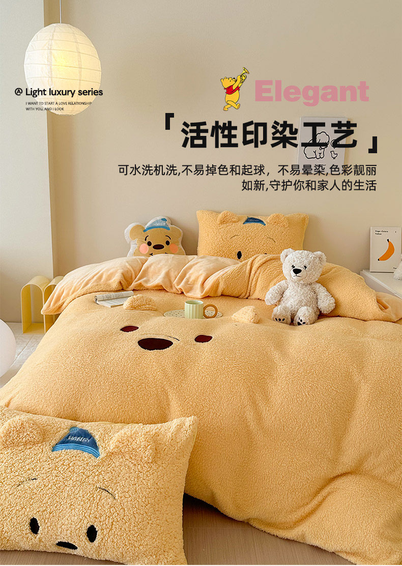 加厚維尼熊羊羔絨四件套加厚絨被套罩冬季牛奶絨床單床包三件套