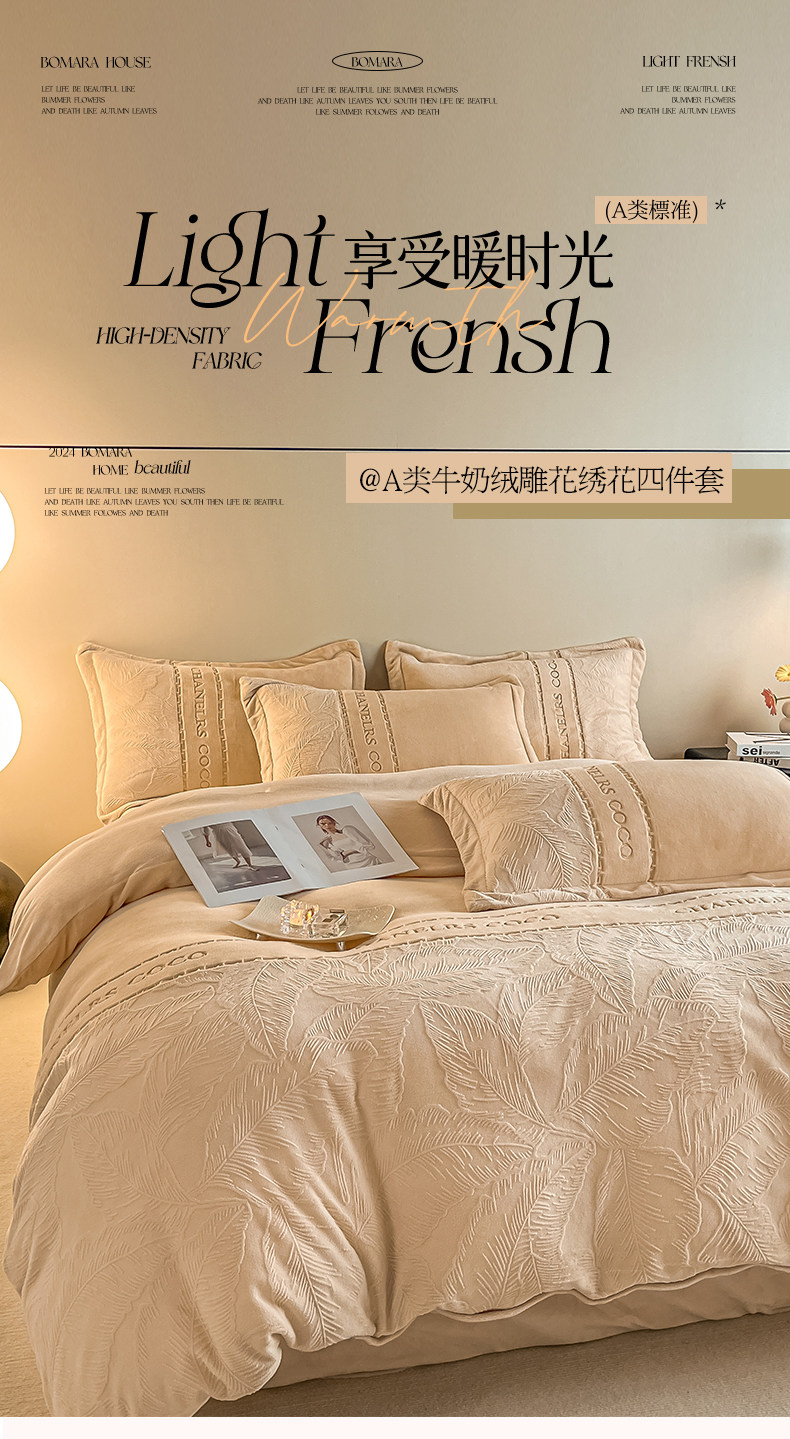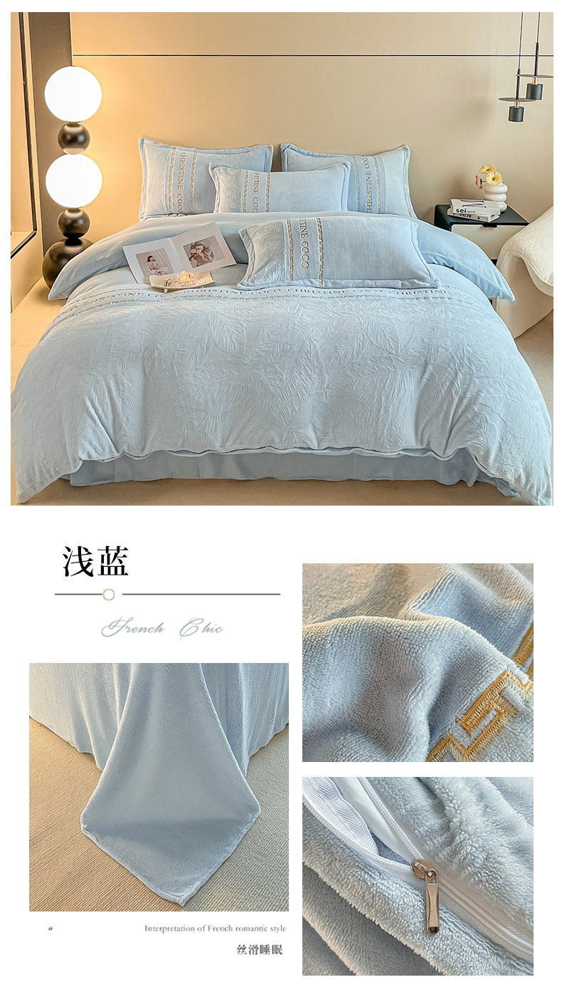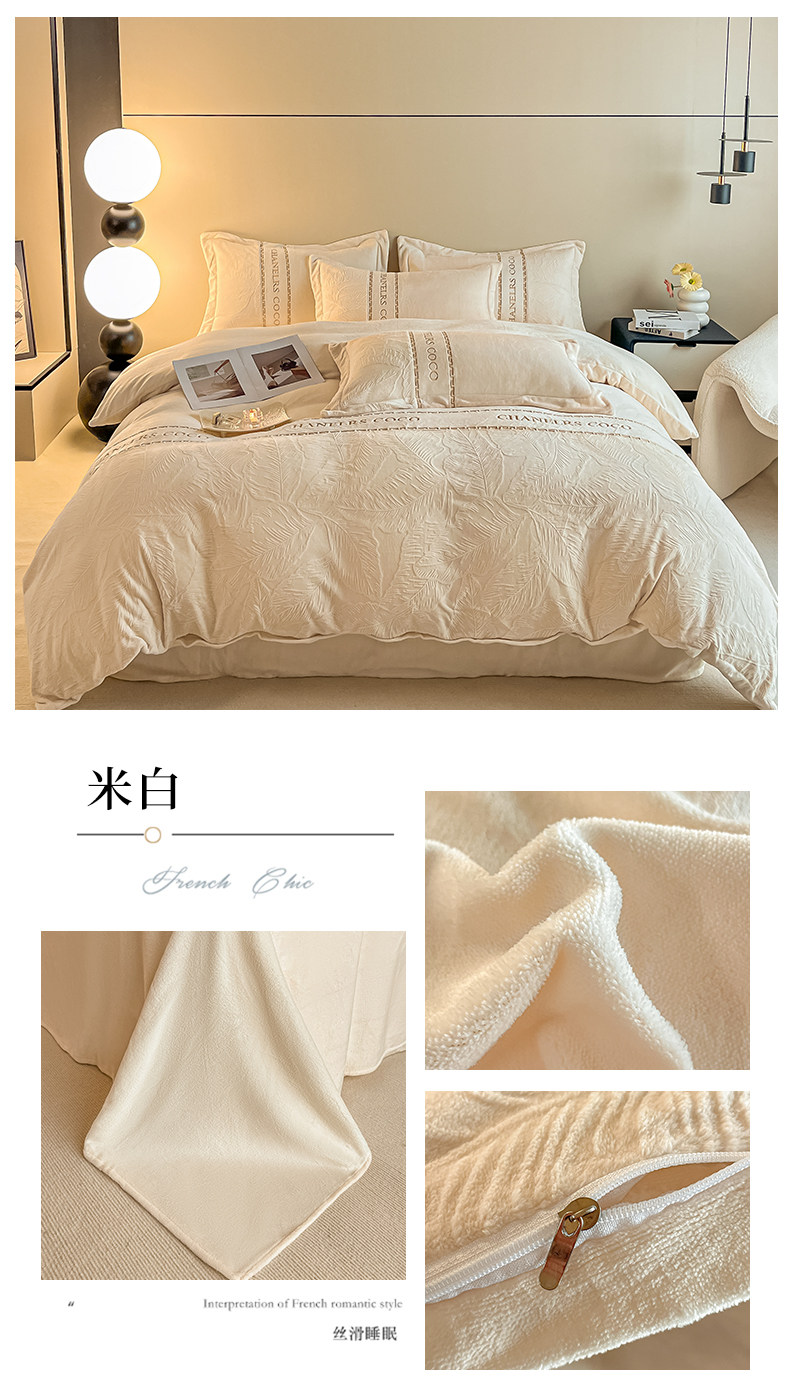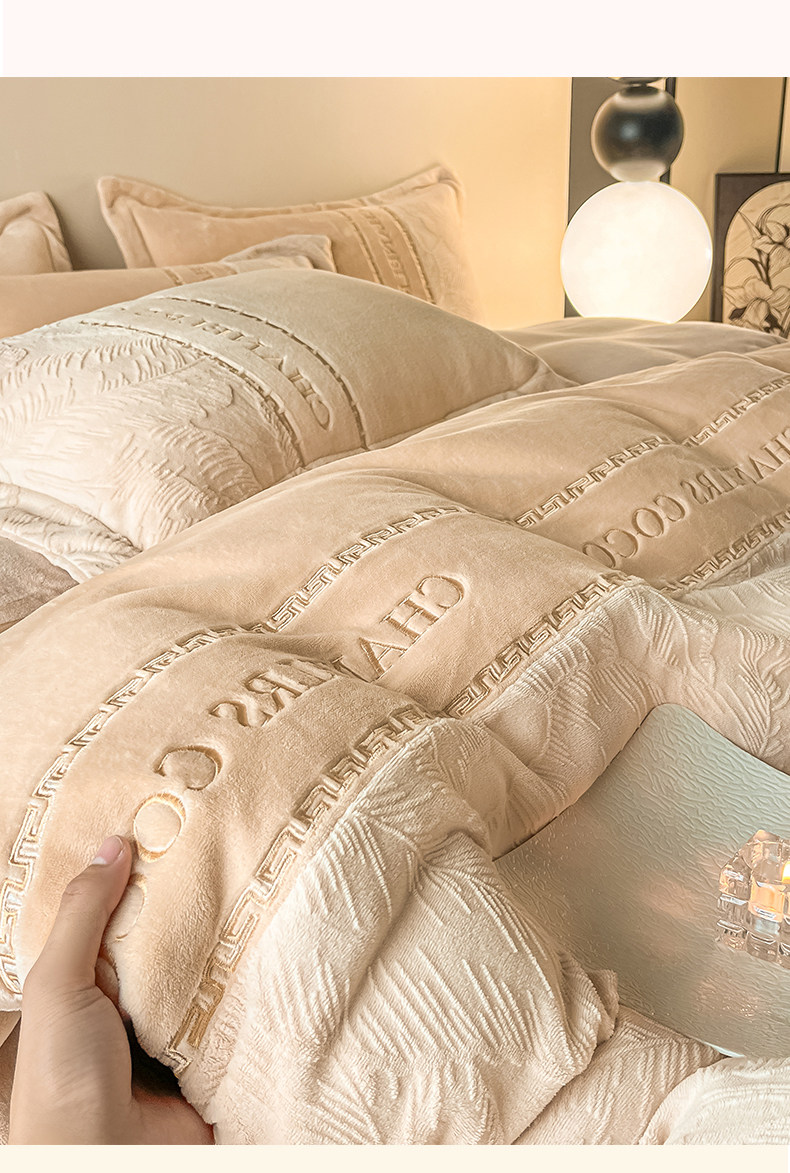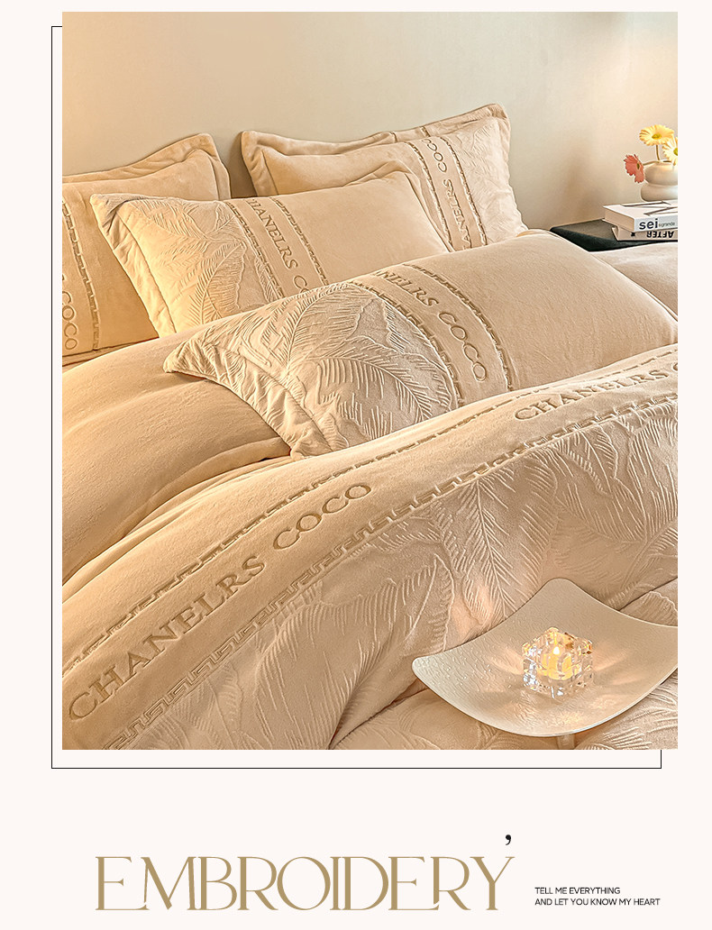 輕奢高級感創新牛奶絨四件套冬季珊瑚絨法蘭絨雙面加絨被套床單款