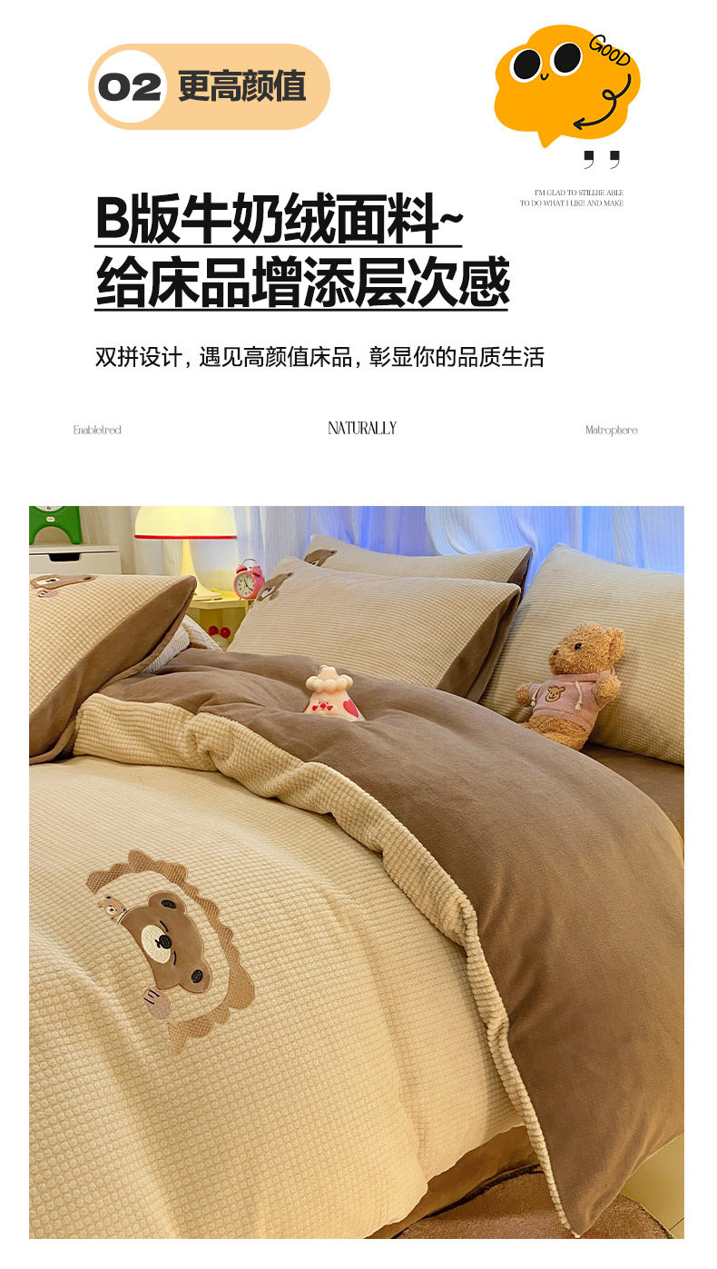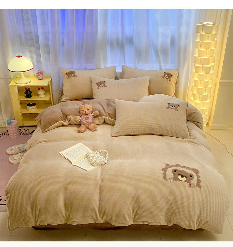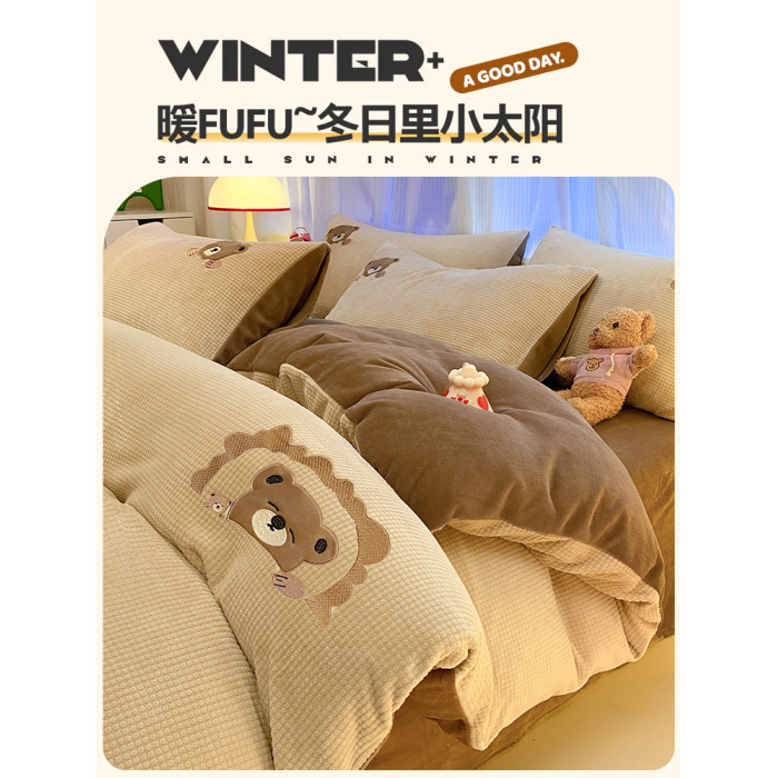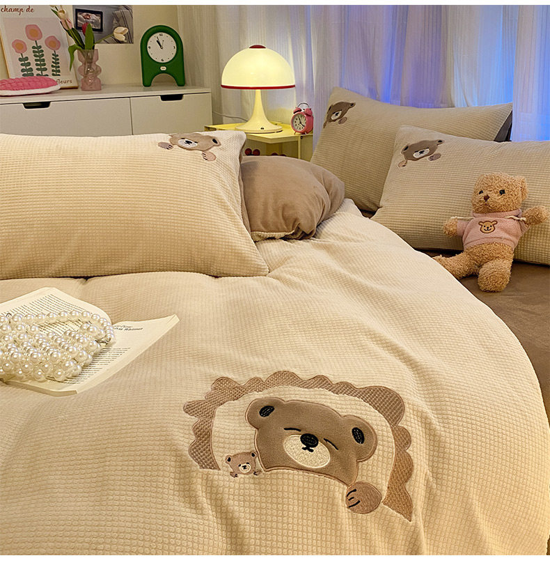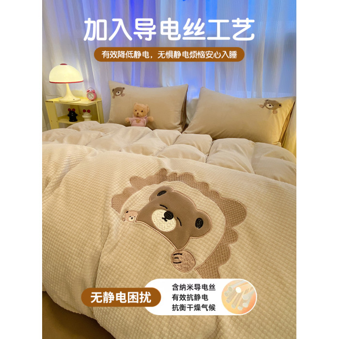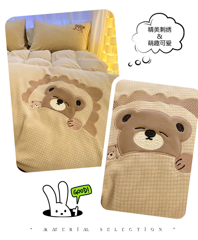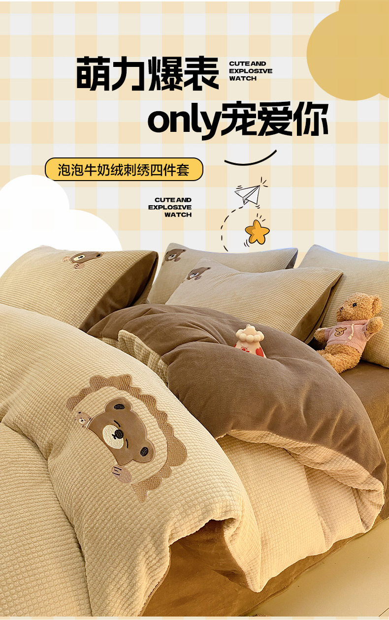 卡通泡泡牛奶絨冬季床上四件套兒童雙面加厚珊瑚絨被套床單三件套