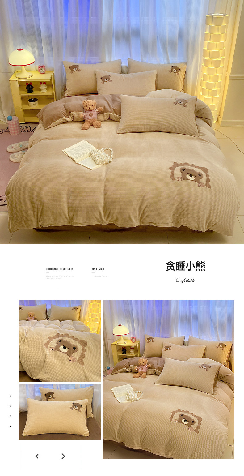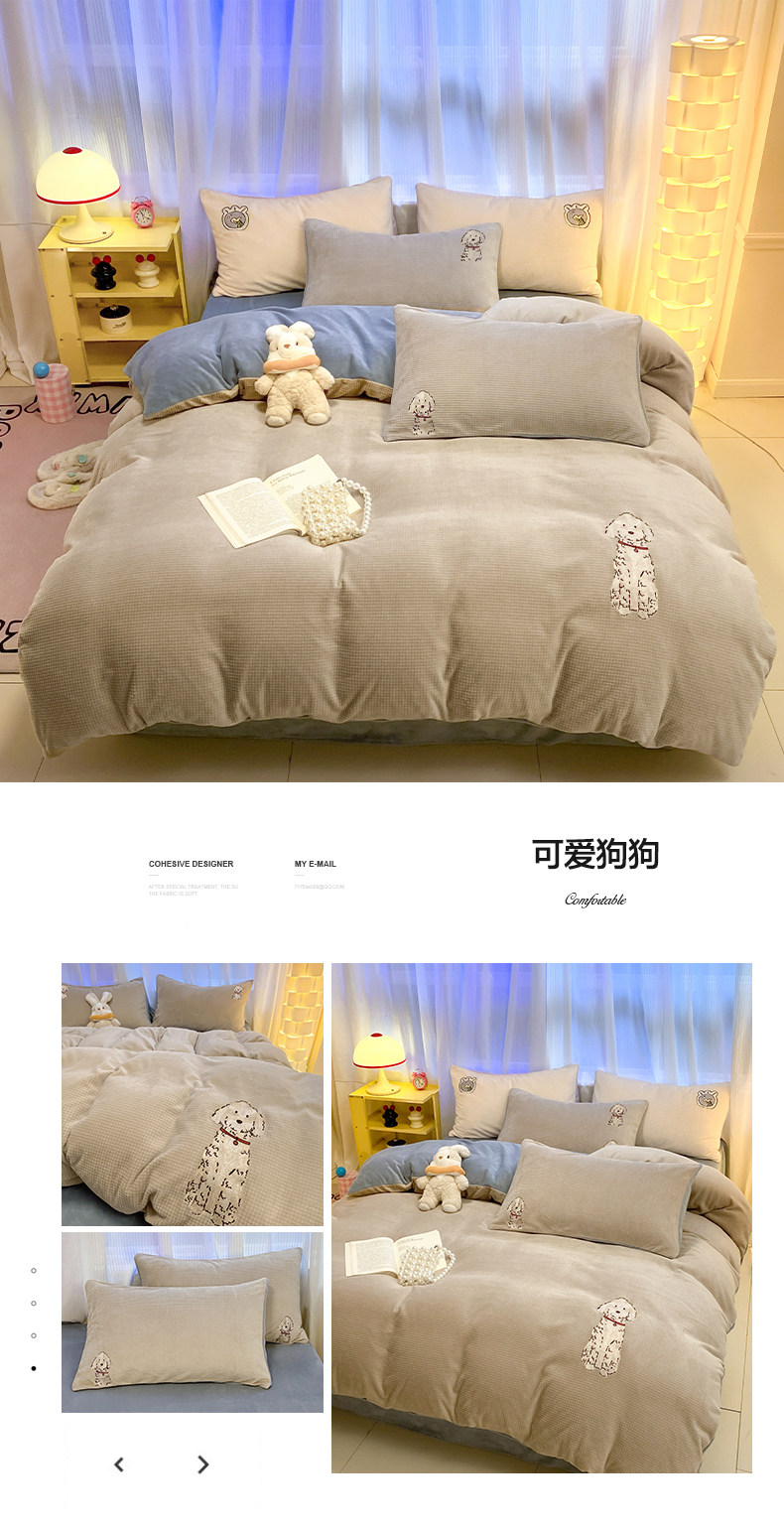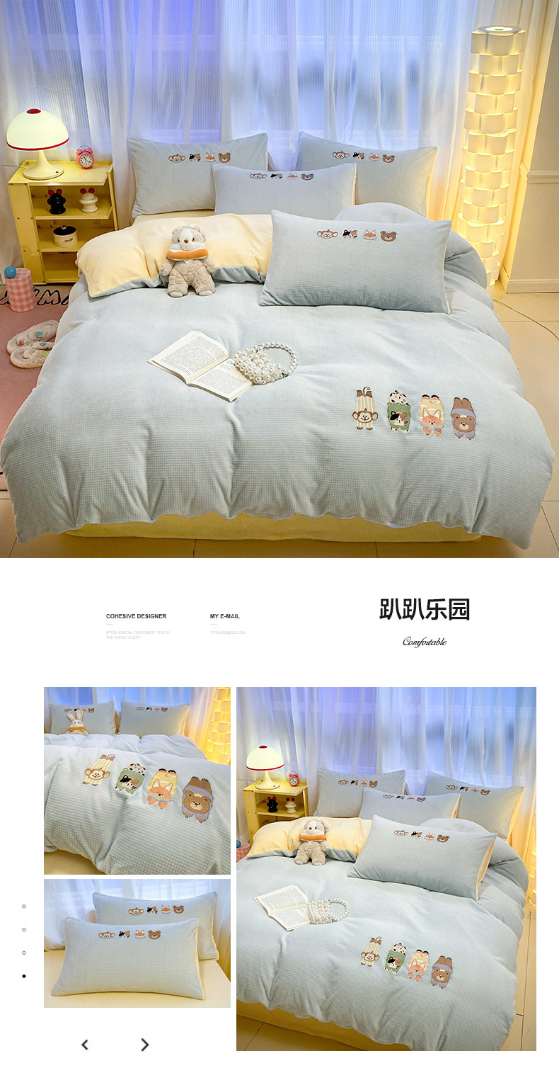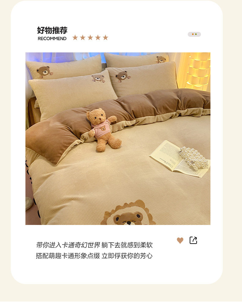卡通泡泡牛奶絨冬季床上四件套兒童雙面加厚珊瑚絨被套床單三件套