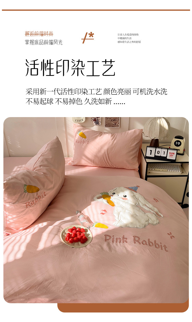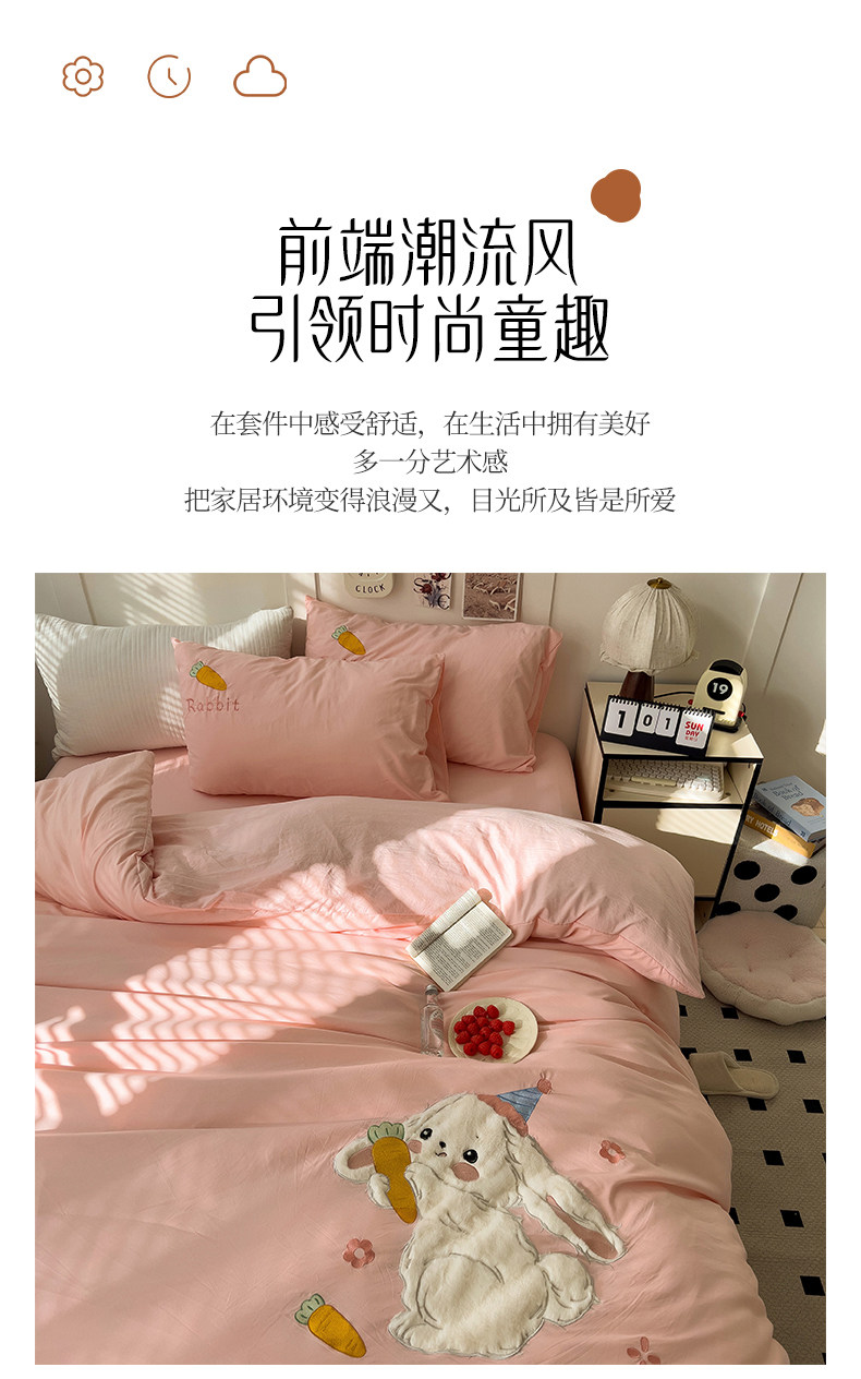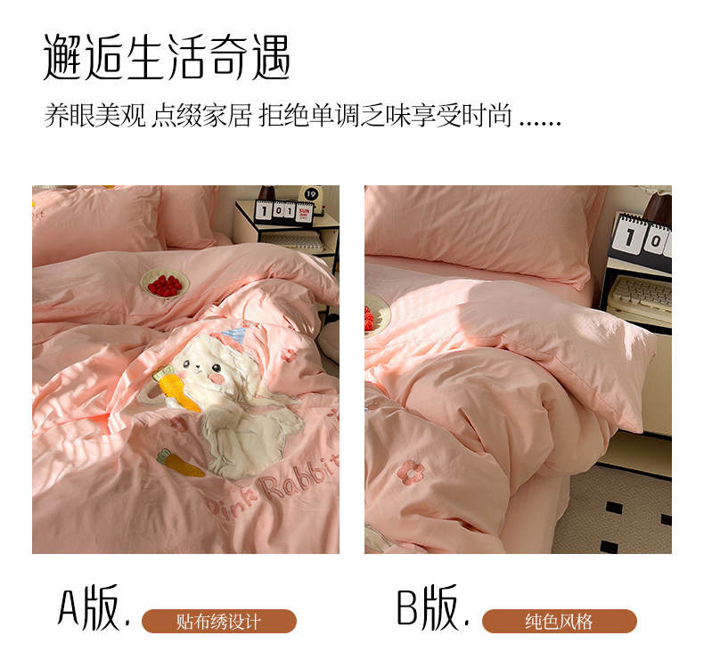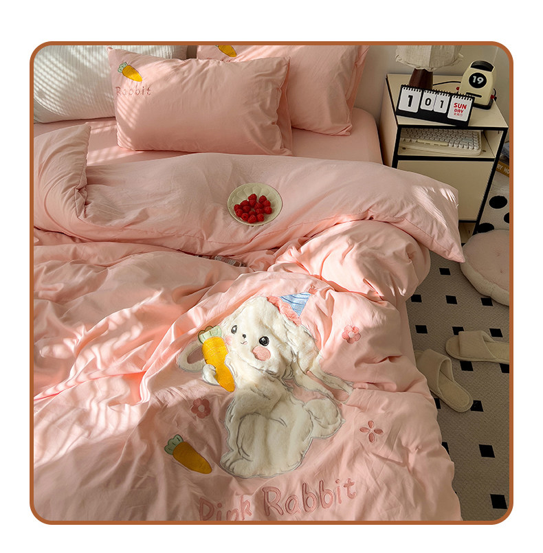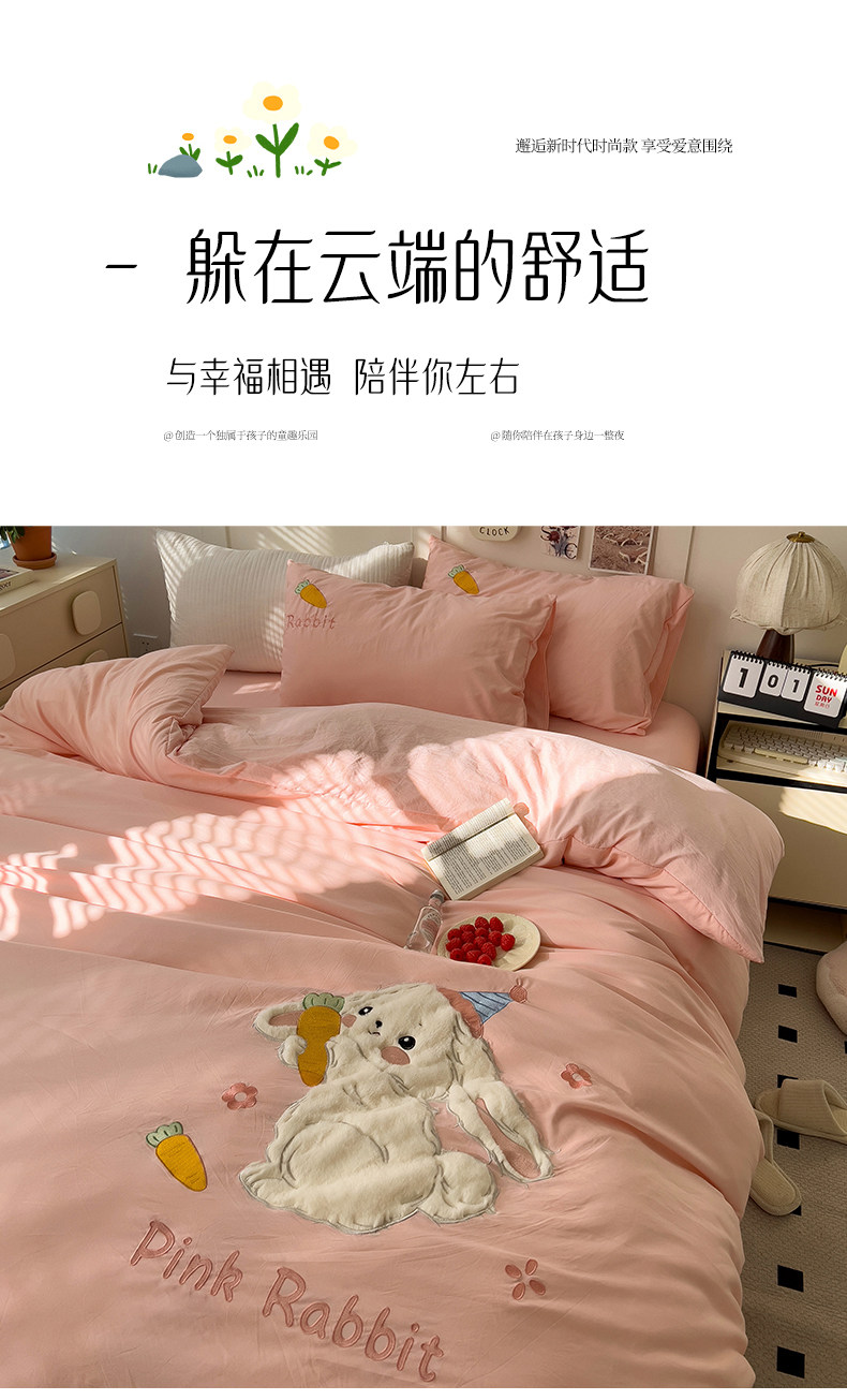 ins床上刺綉四件套2026新款加厚床單被套床品單人學生宿捨三件套4