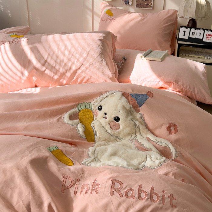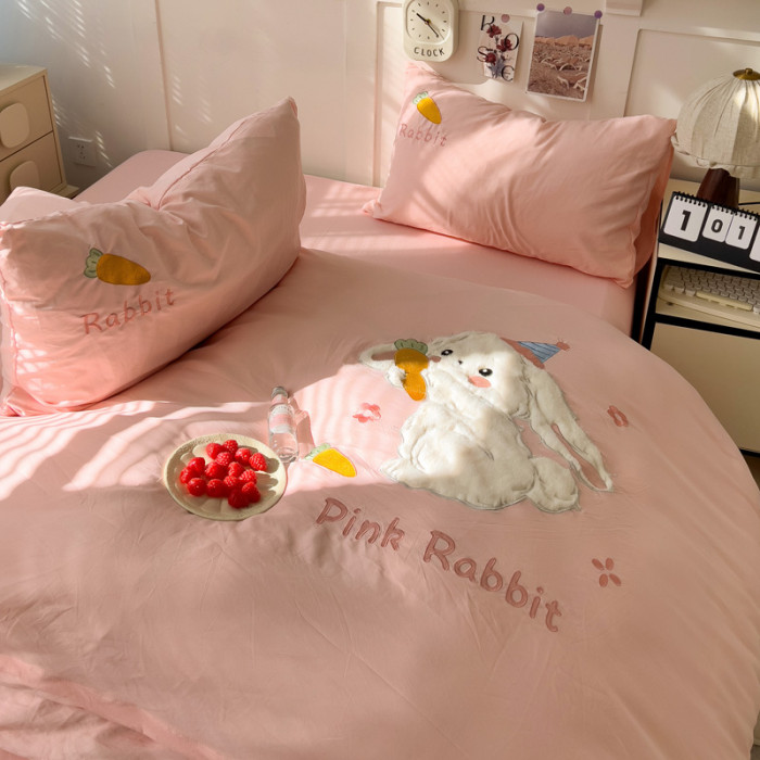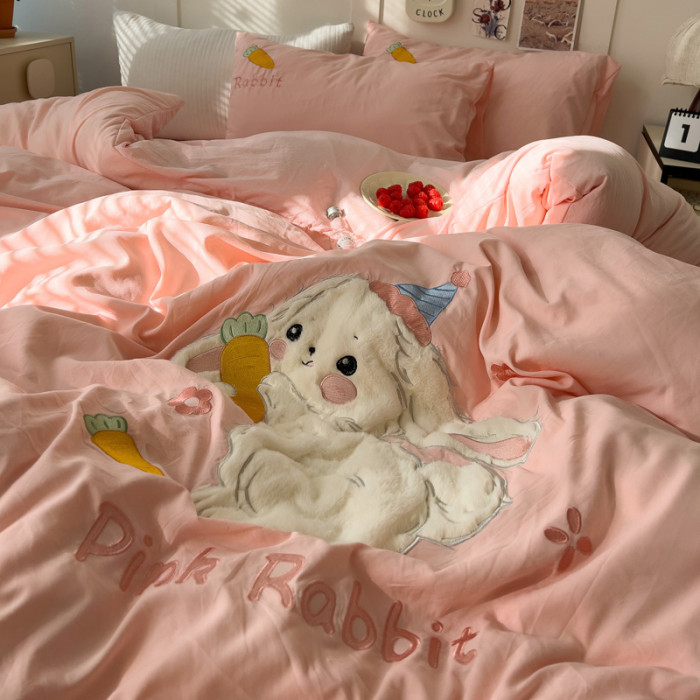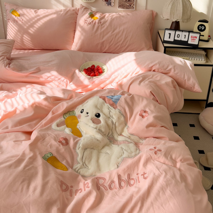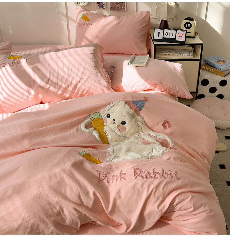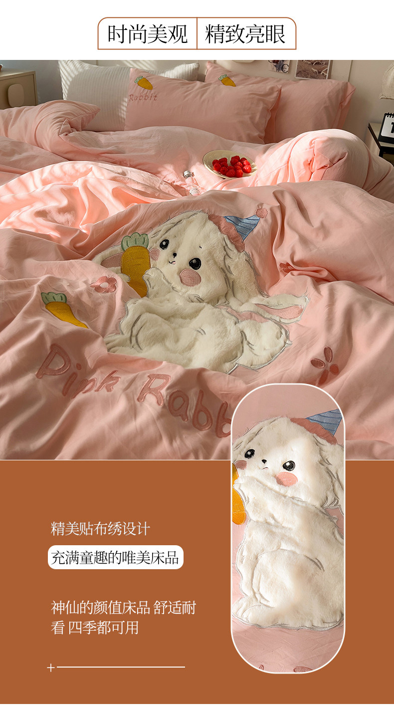 ins床上刺綉四件套2026新款加厚床單被套床品單人學生宿捨三件套4
