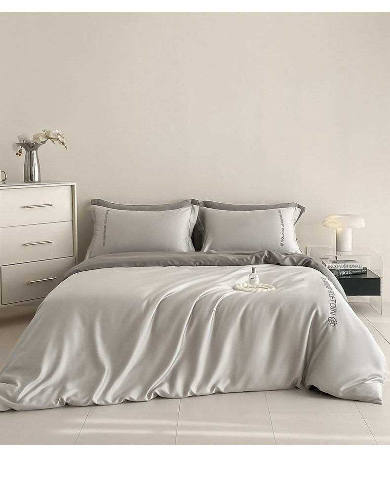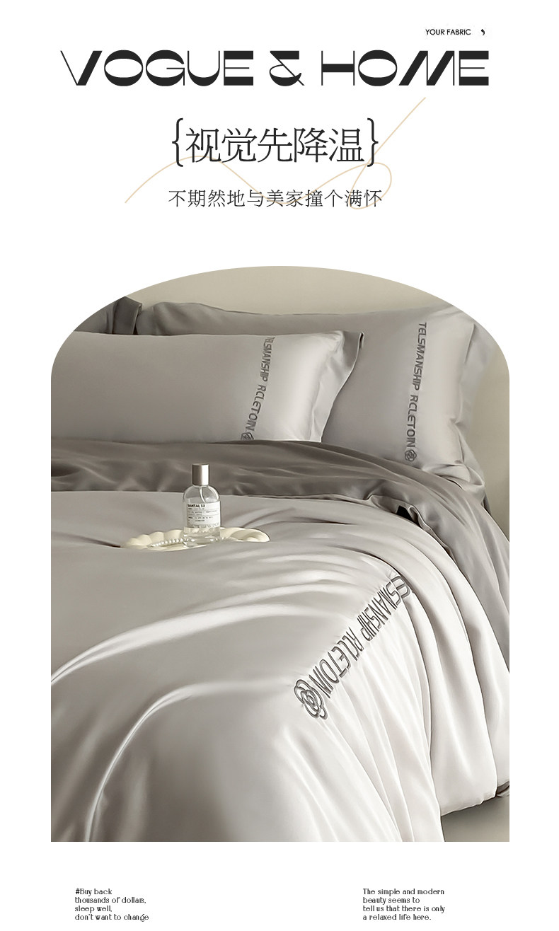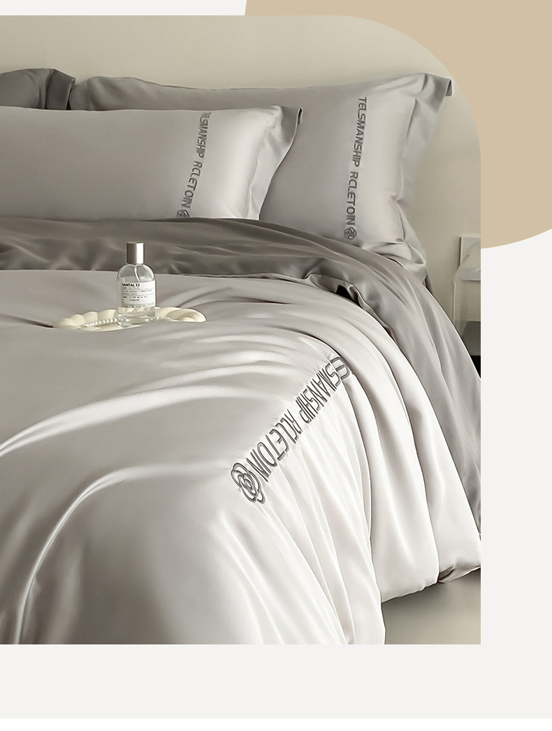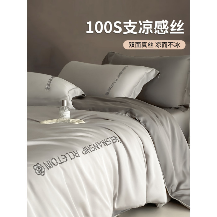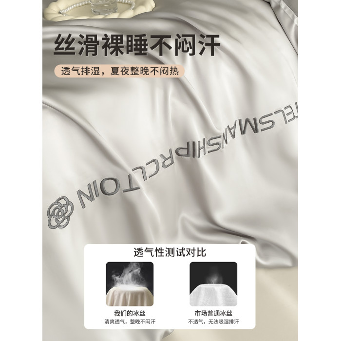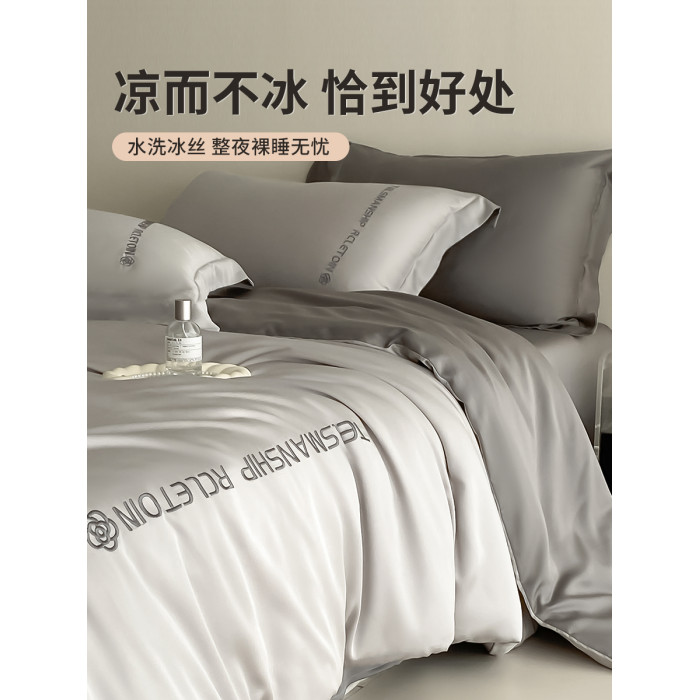 冰絲四件套夏款絲滑裸睡被套輕奢高級床單夏季床上三件套夏天天絲