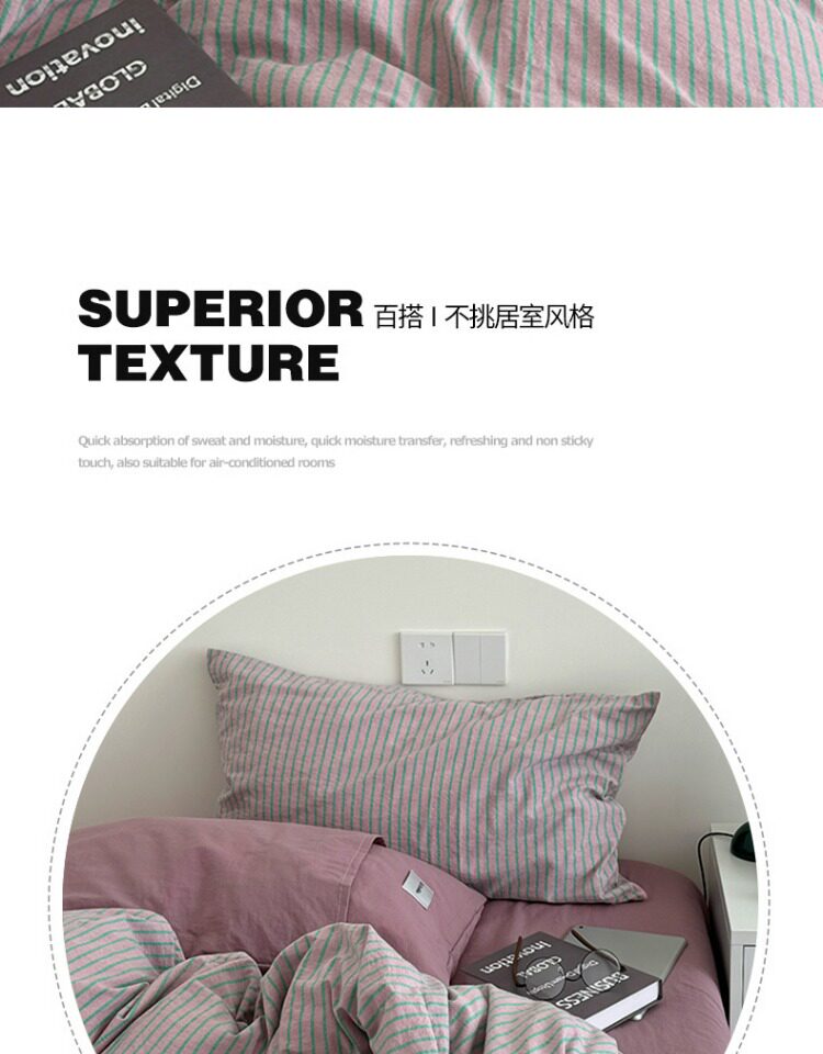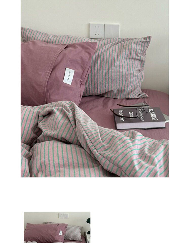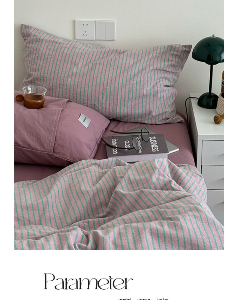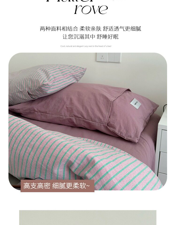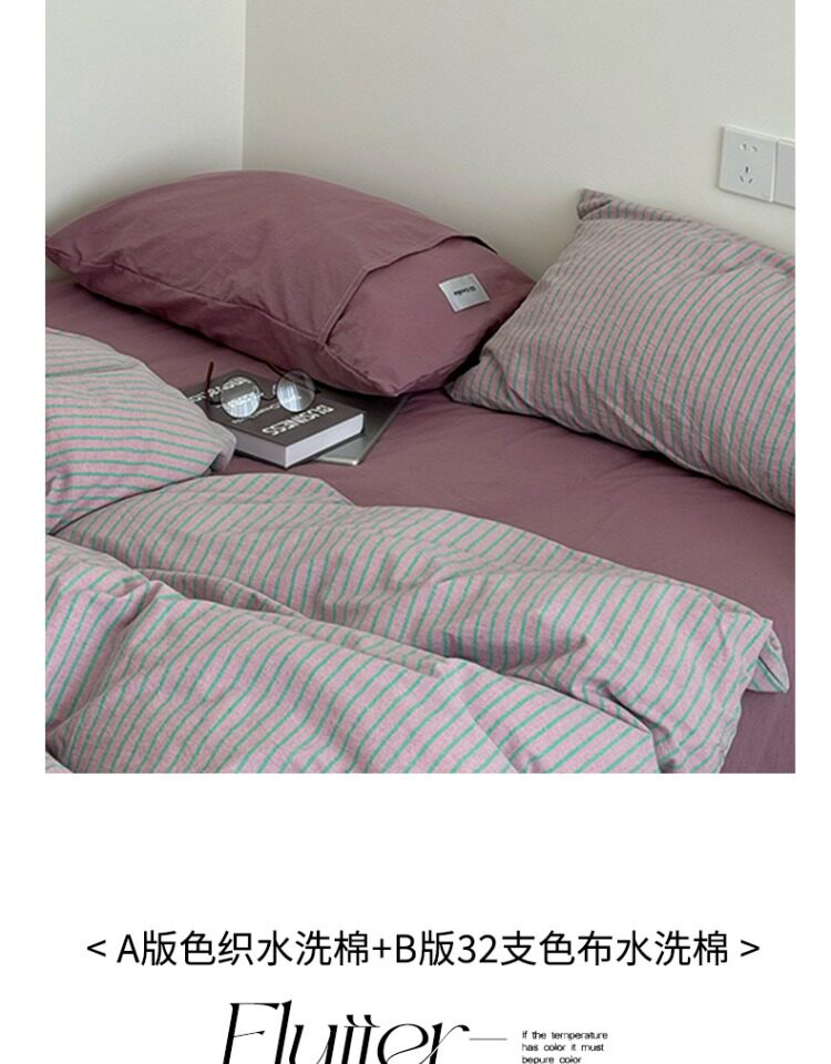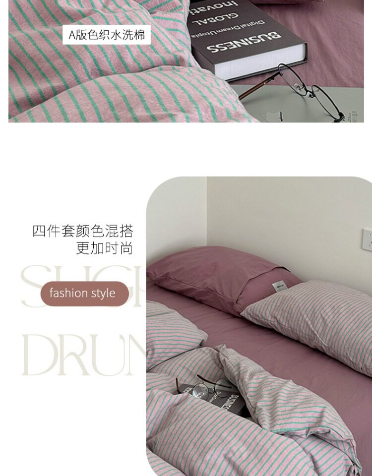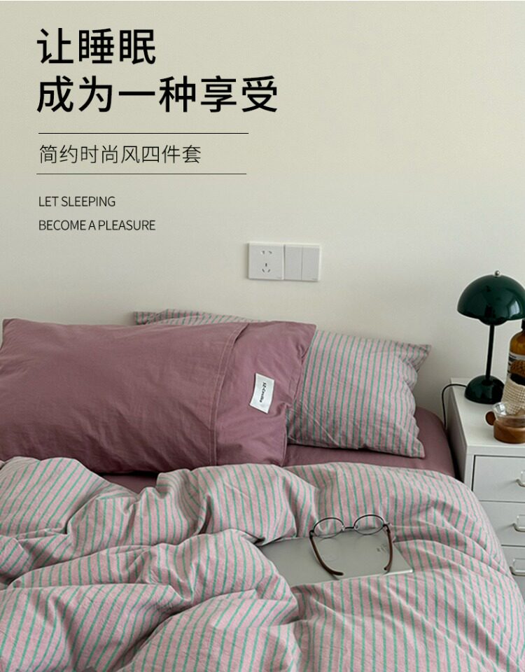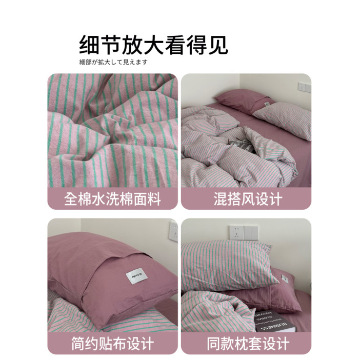 2025新款簡約條紋床上四件套全棉純棉色織水洗棉宿捨床品被套床單
