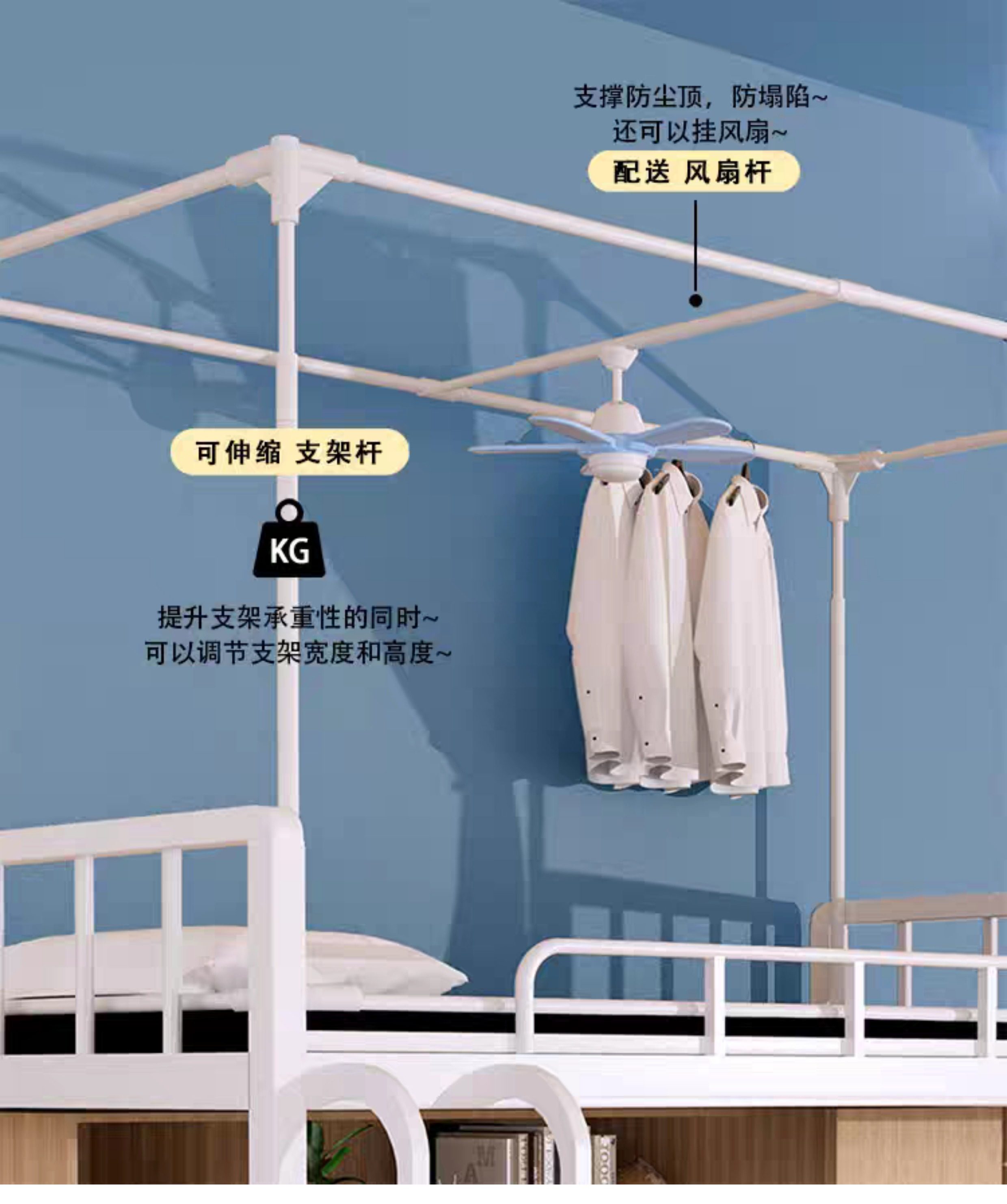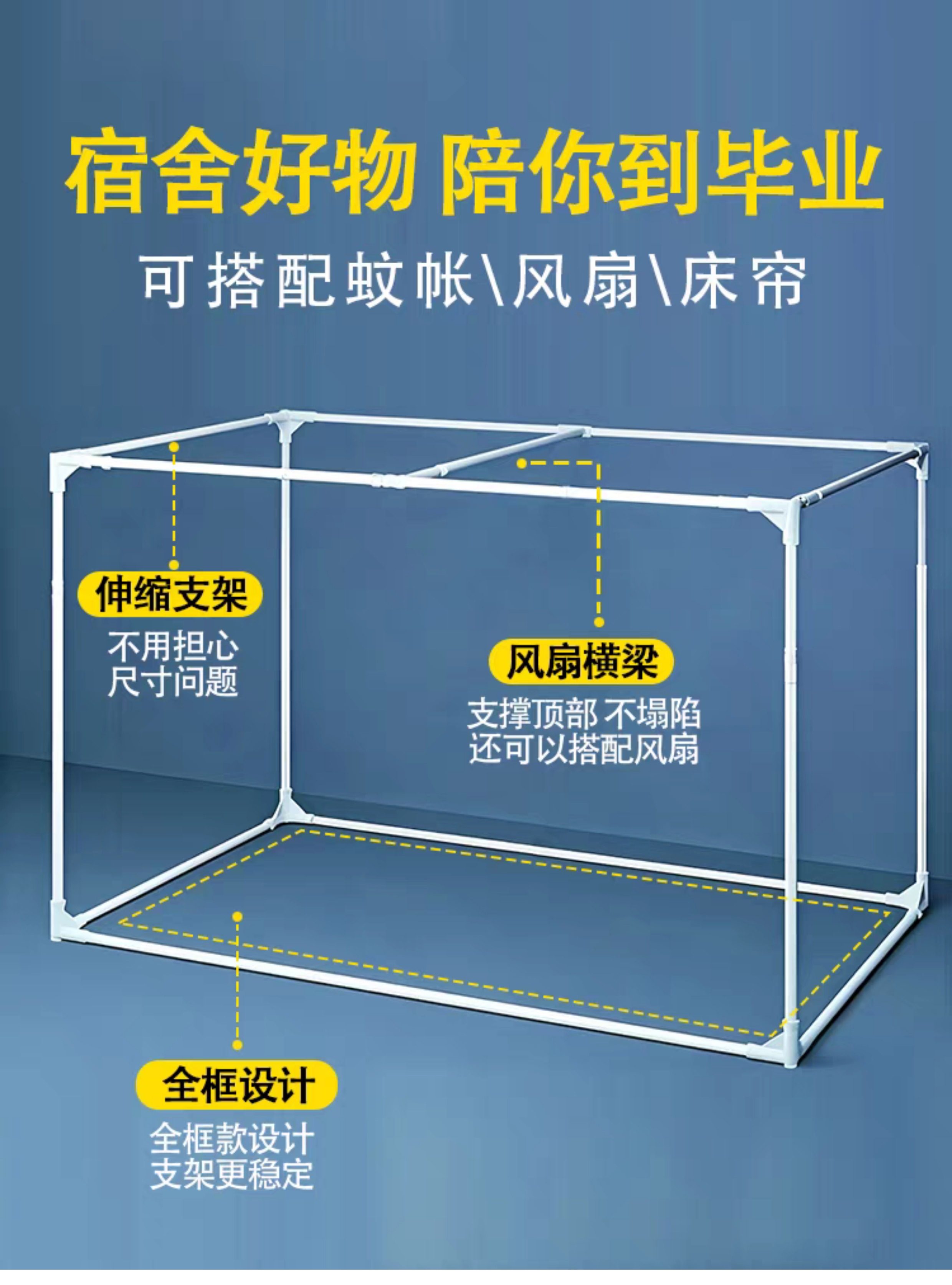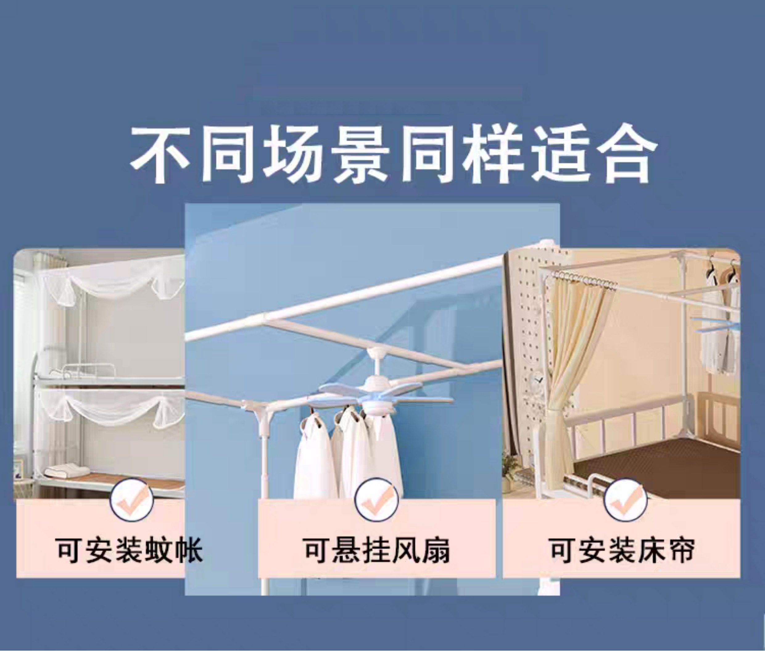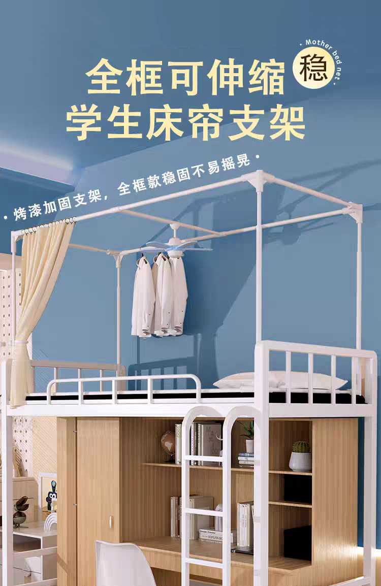 加厚加粗伸縮支架學生遮光床簾蚊帳桿子高承重宿捨上下鋪通用架子