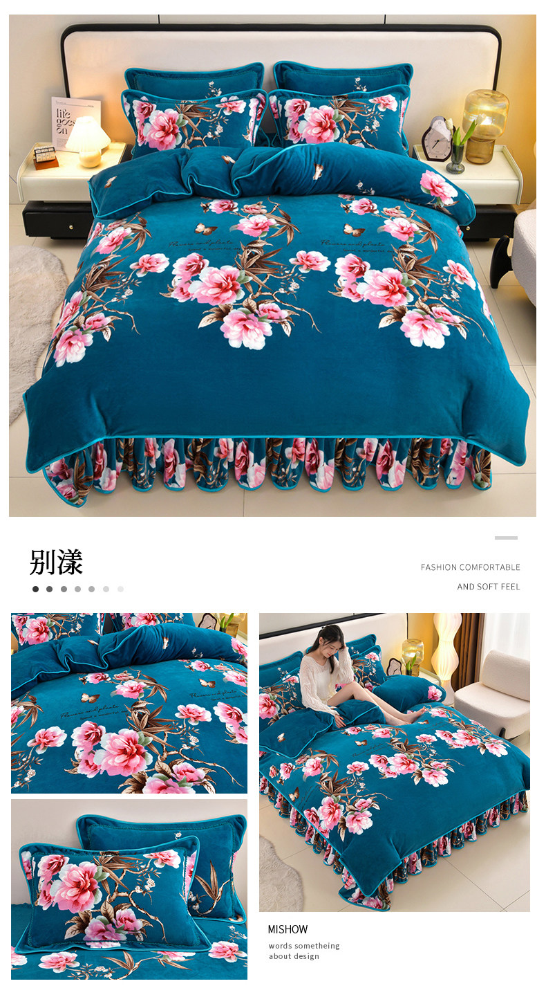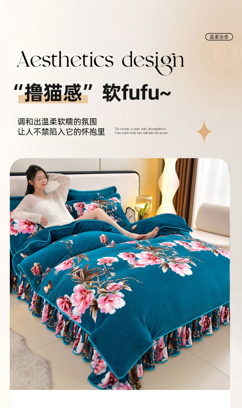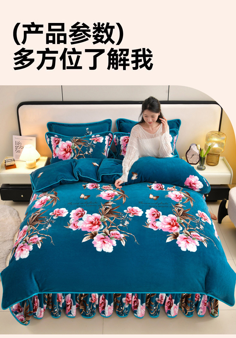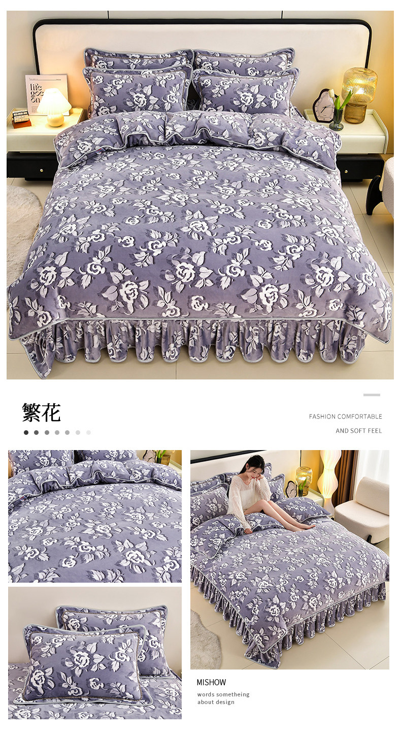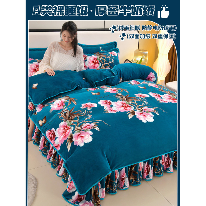 冬季牛奶絨床裙四件套雙面加絨被套加厚法蘭絨床單珊瑚絨床上用品