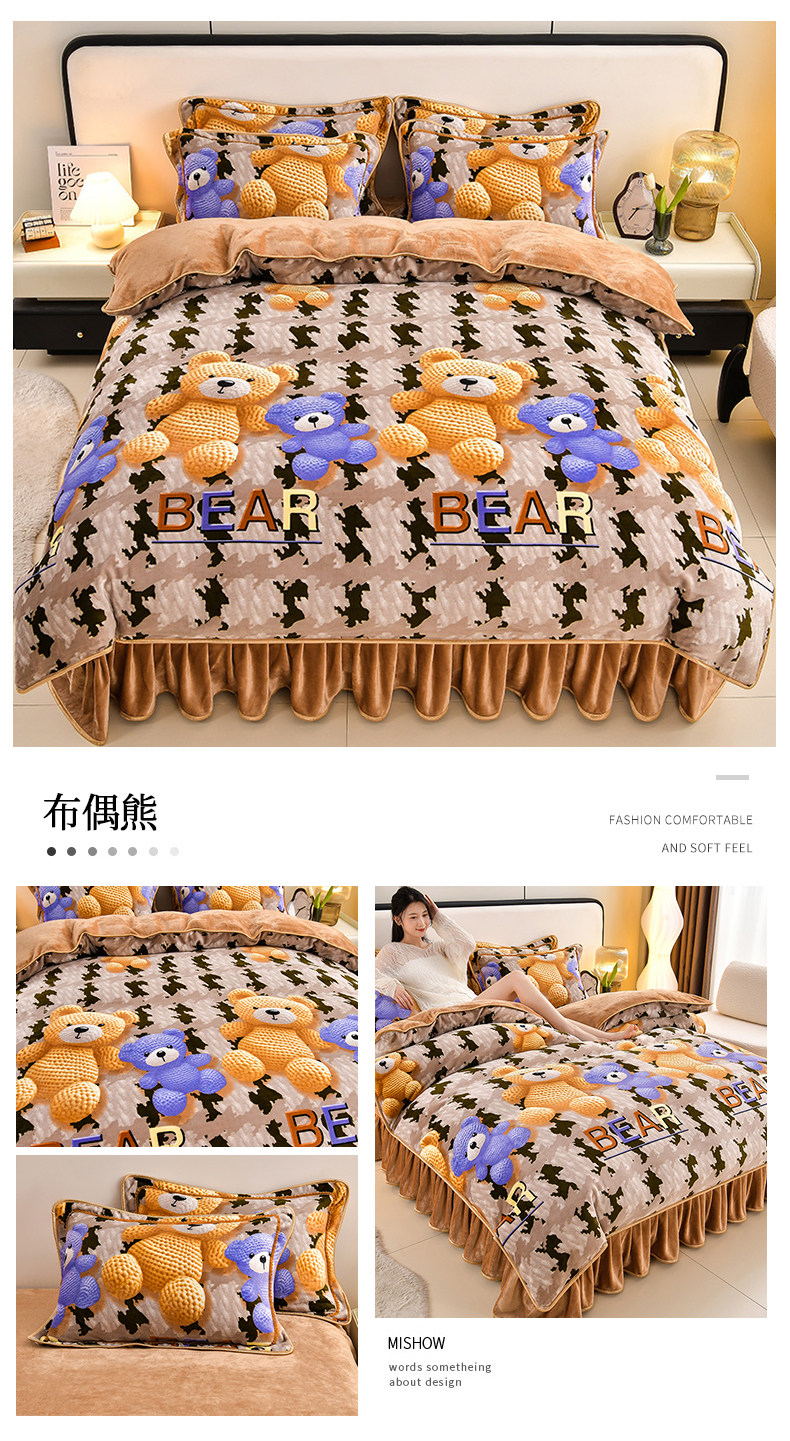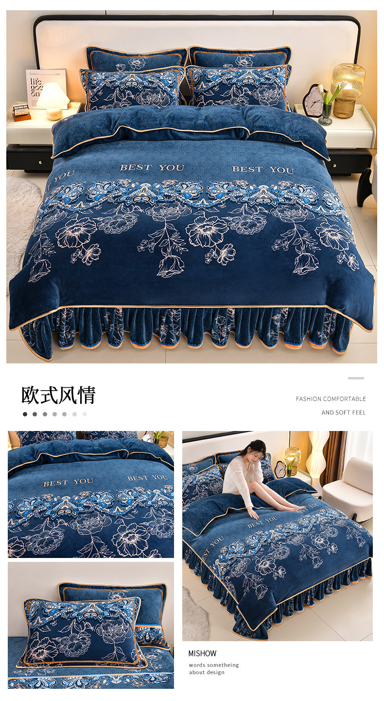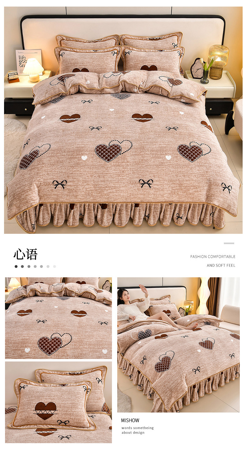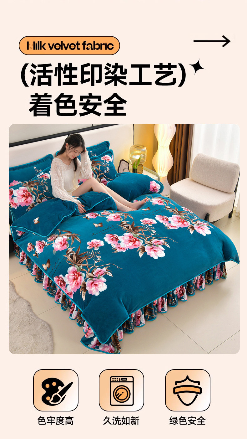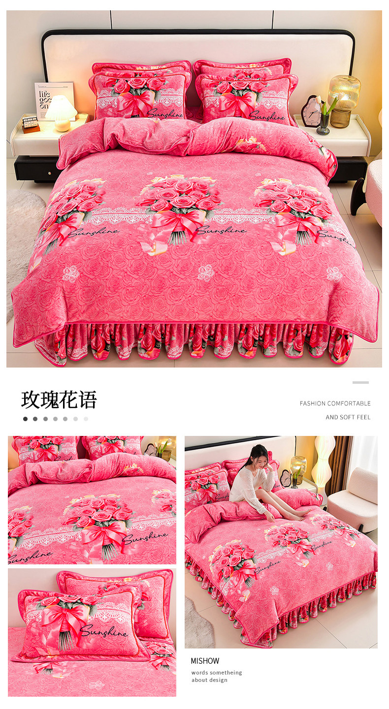 冬季牛奶絨床裙四件套雙面加絨被套加厚法蘭絨床單珊瑚絨床上用品