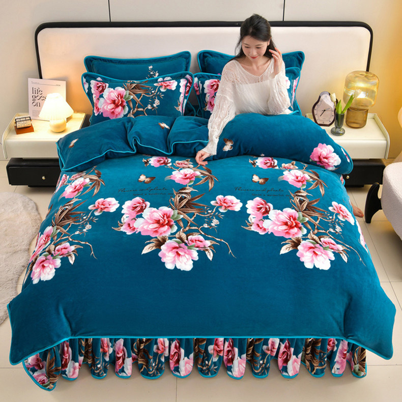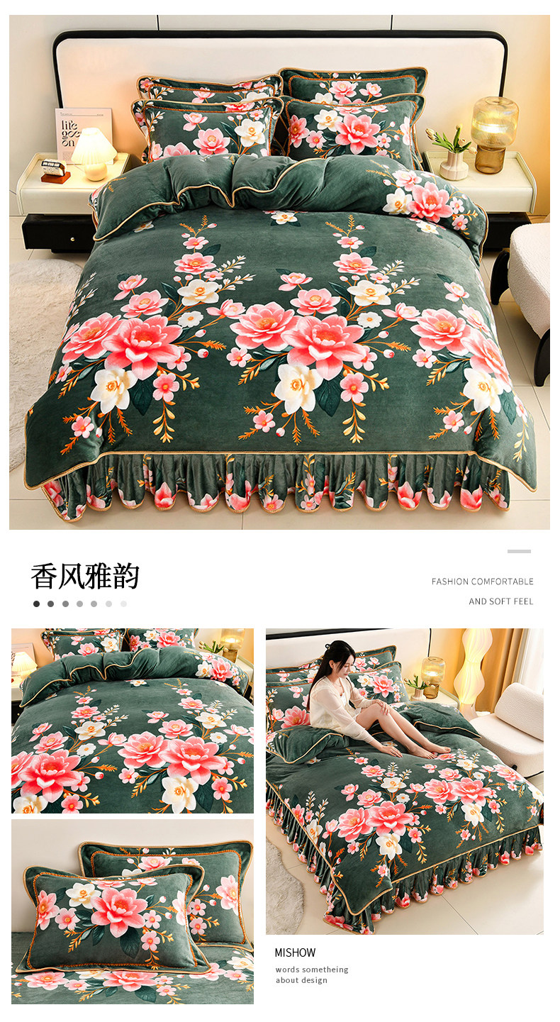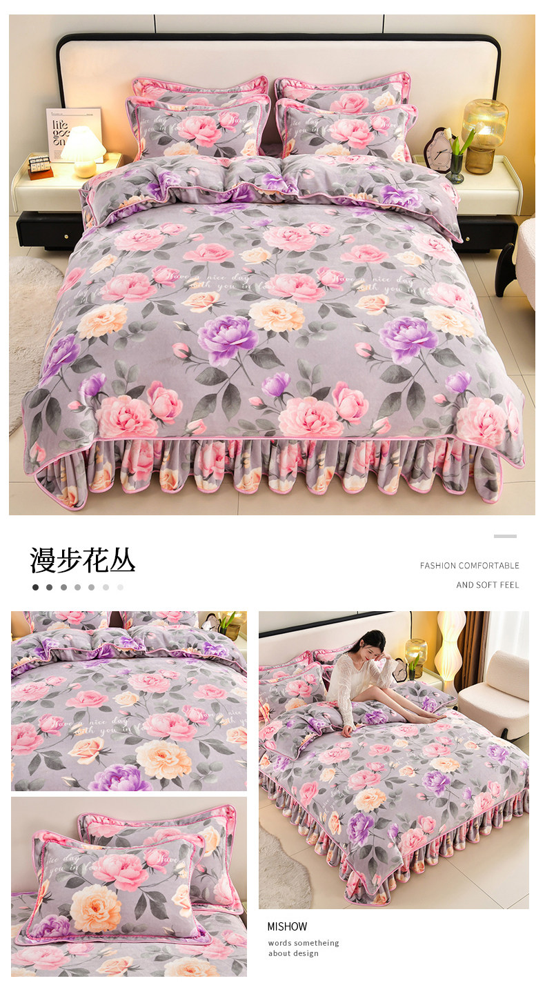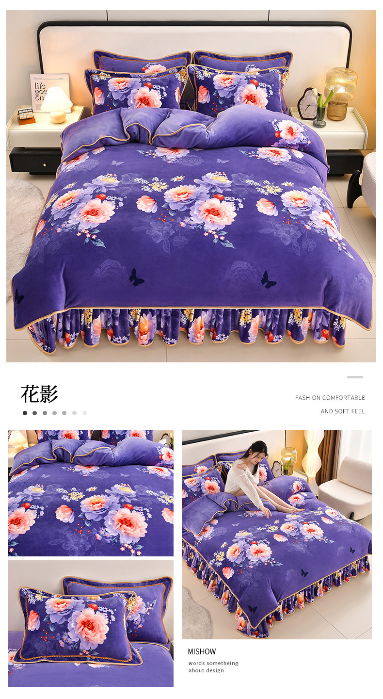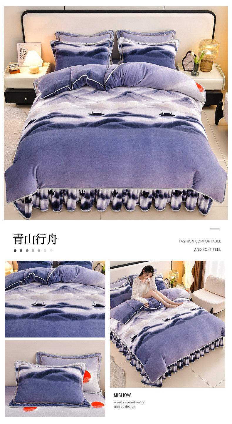 冬季牛奶絨床裙四件套雙面加絨被套加厚法蘭絨床單珊瑚絨床上用品