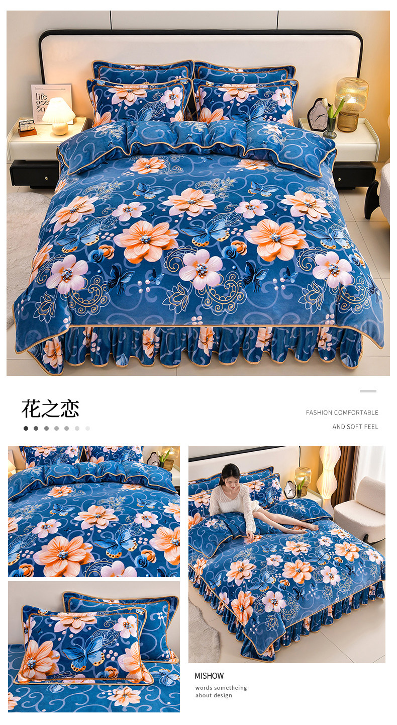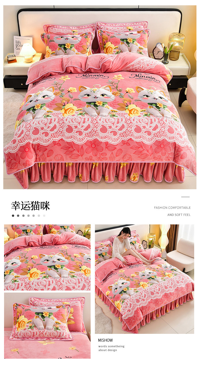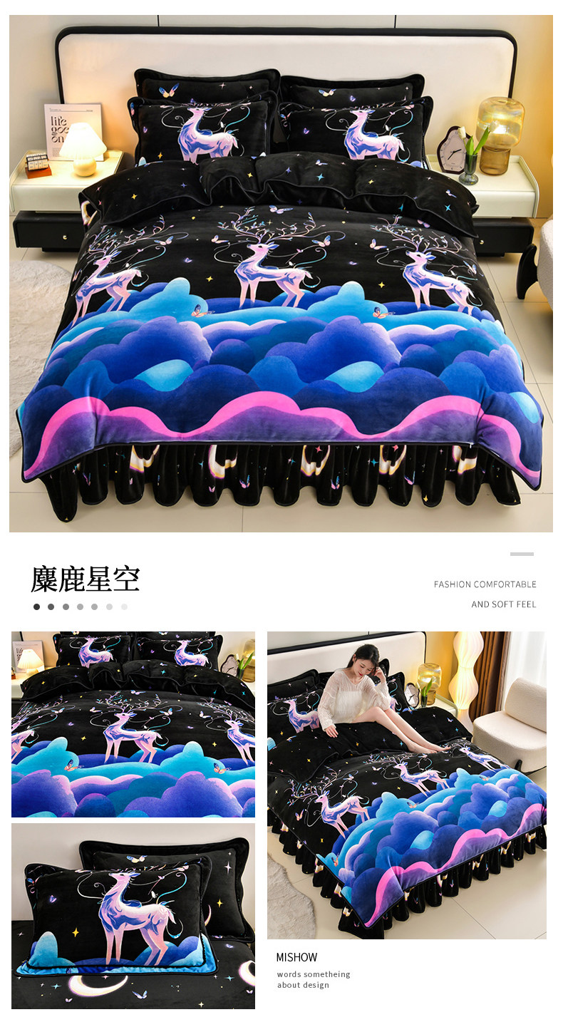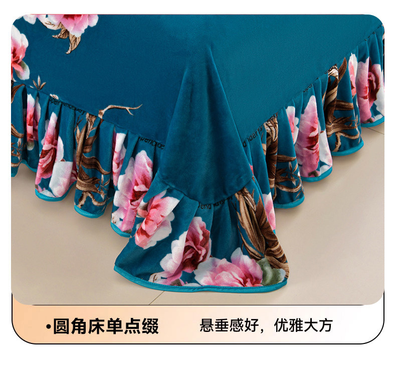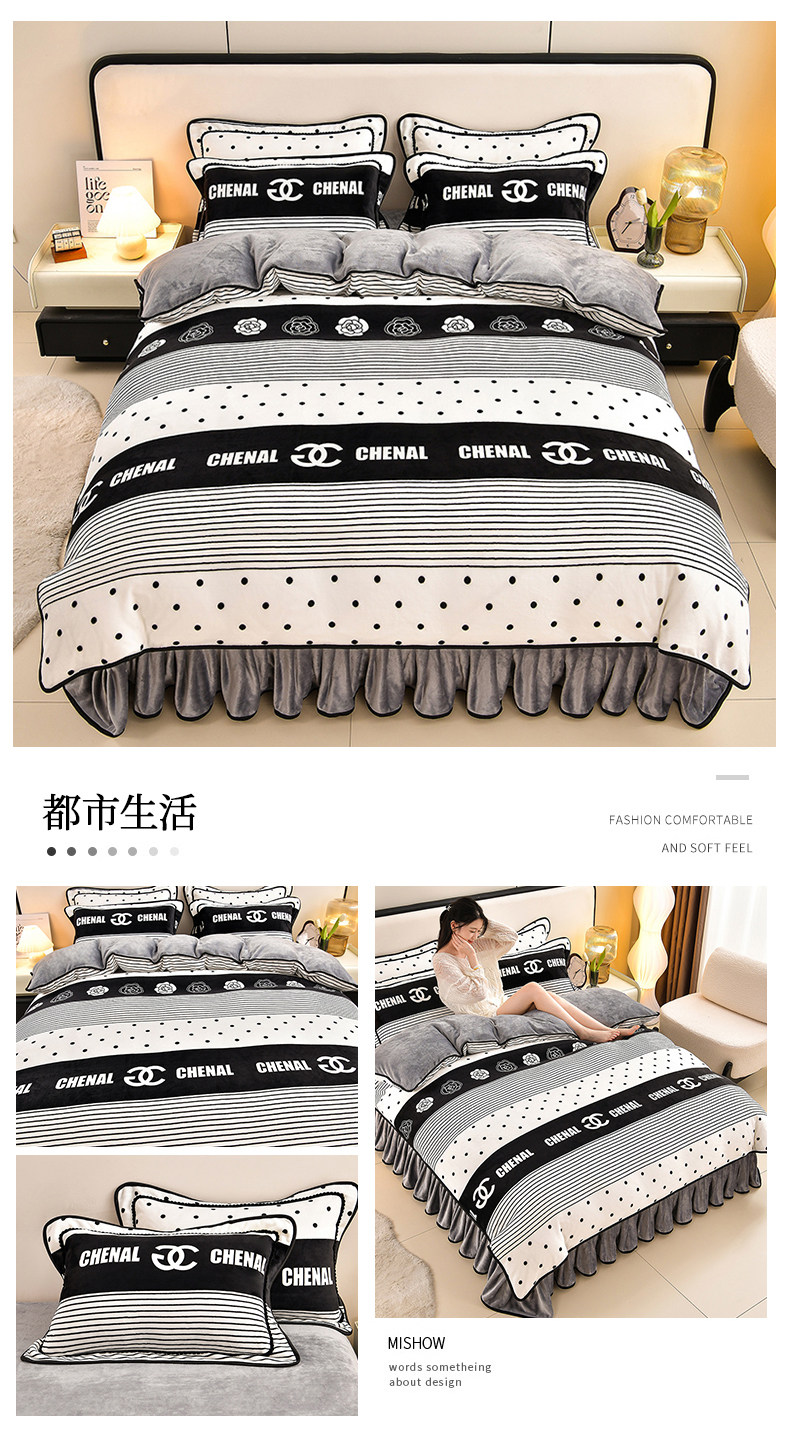 冬季牛奶絨床裙四件套雙面加絨被套加厚法蘭絨床單珊瑚絨床上用品