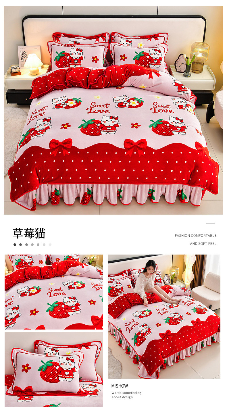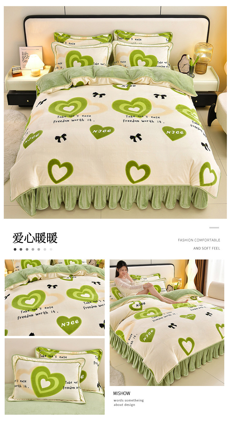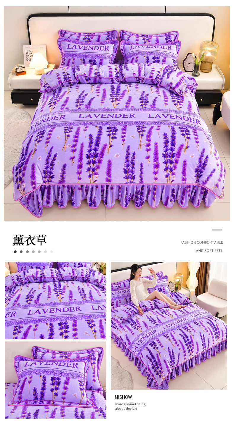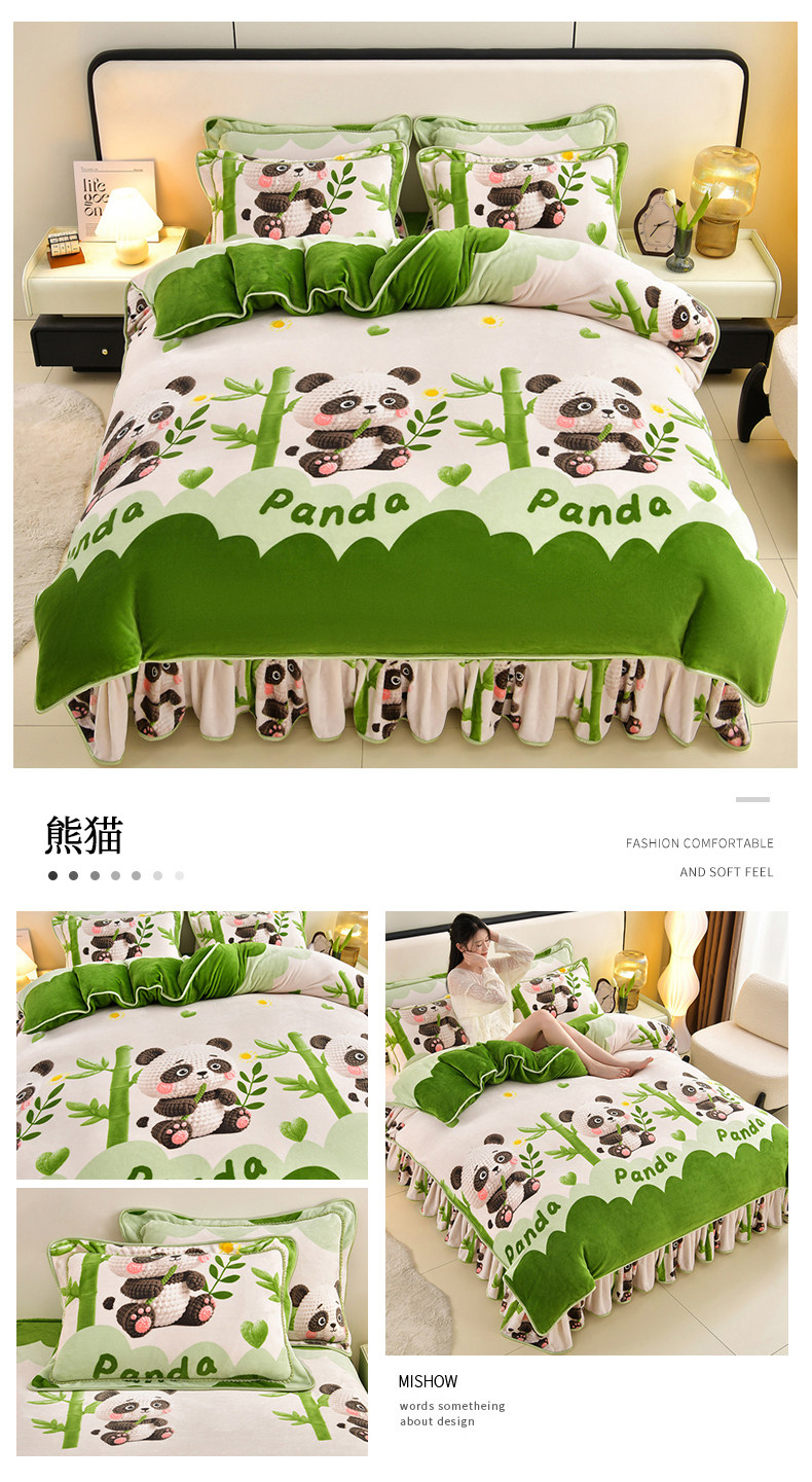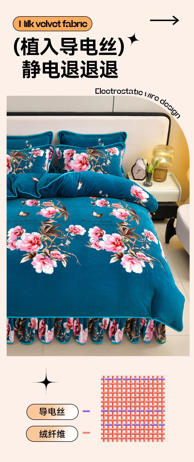 冬季牛奶絨床裙四件套雙面加絨被套加厚法蘭絨床單珊瑚絨床上用品