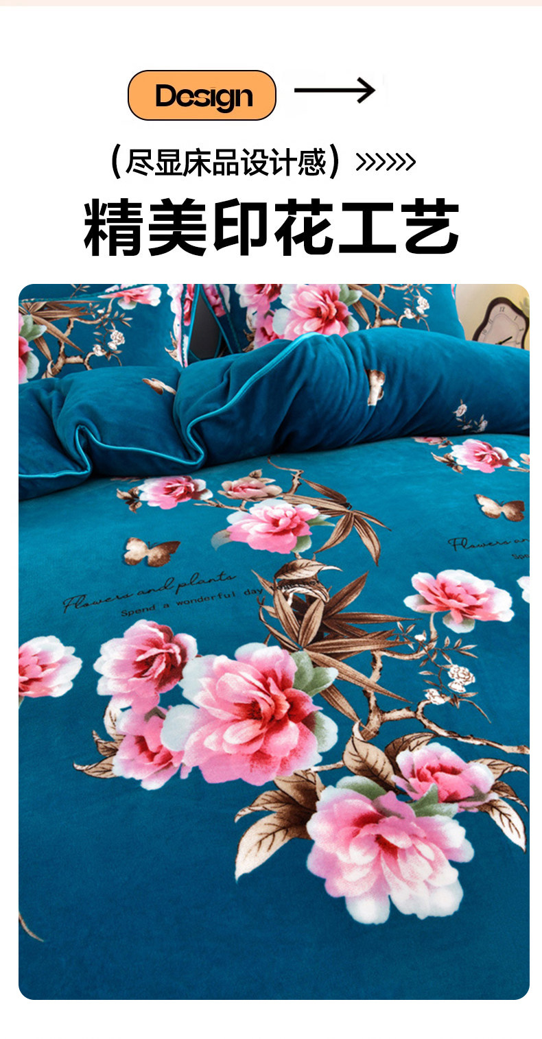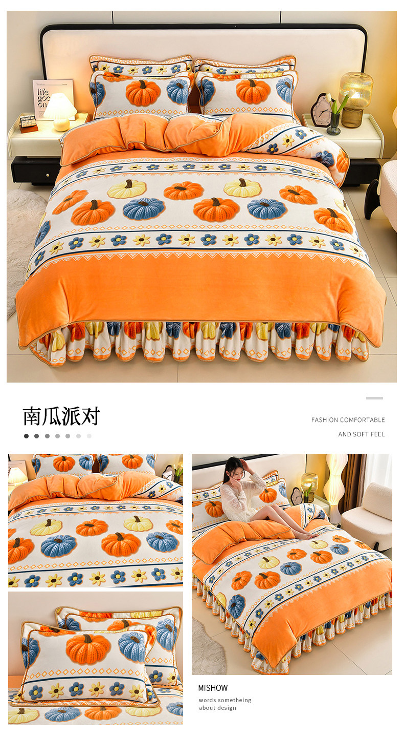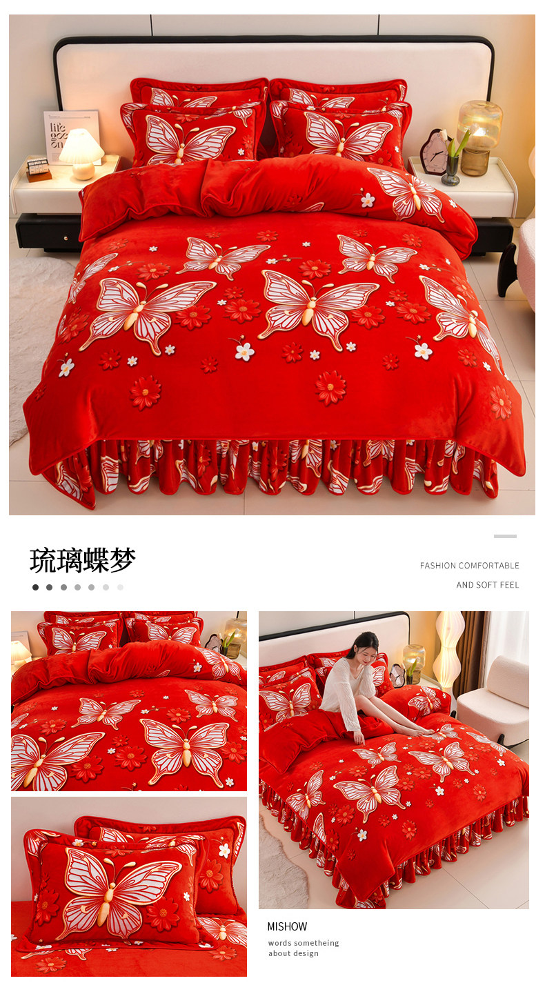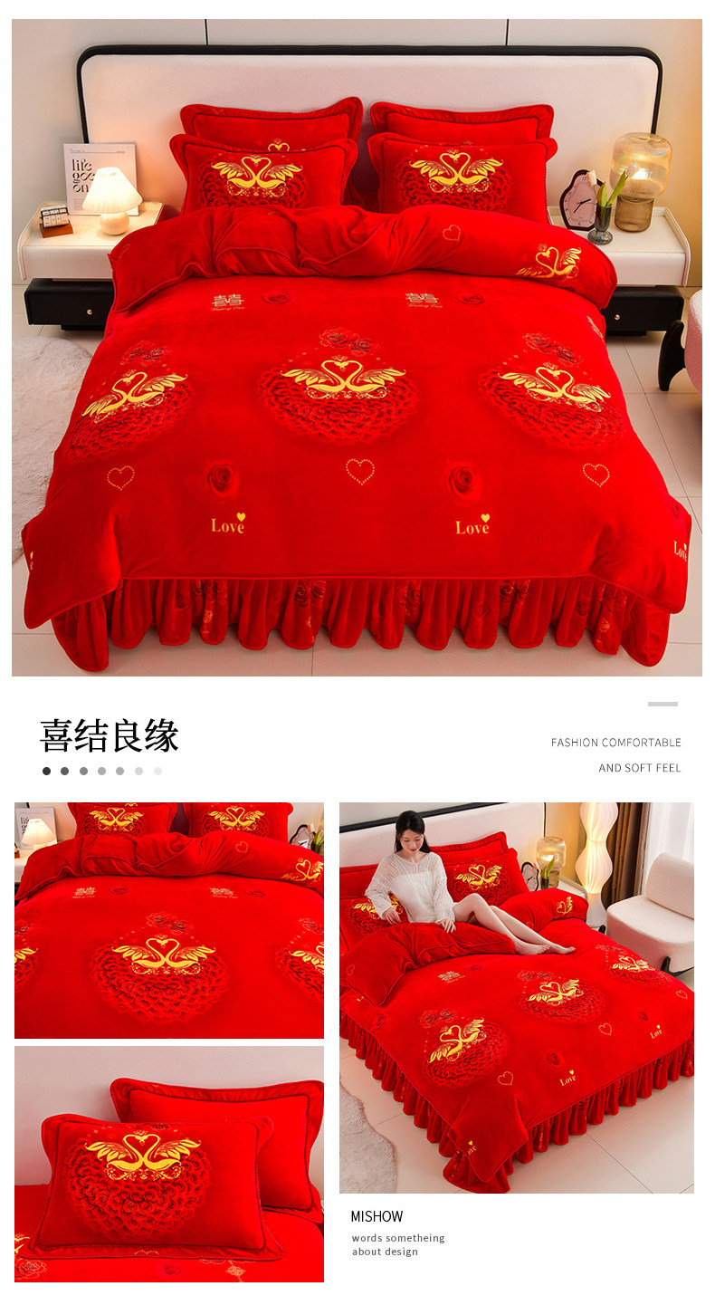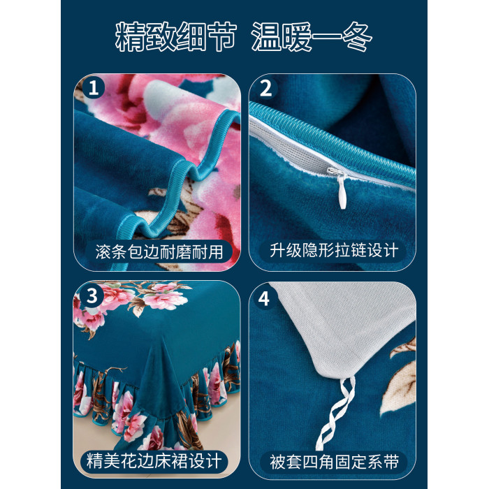 冬季牛奶絨床裙四件套雙面加絨被套加厚法蘭絨床單珊瑚絨床上用品