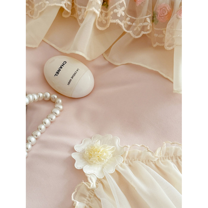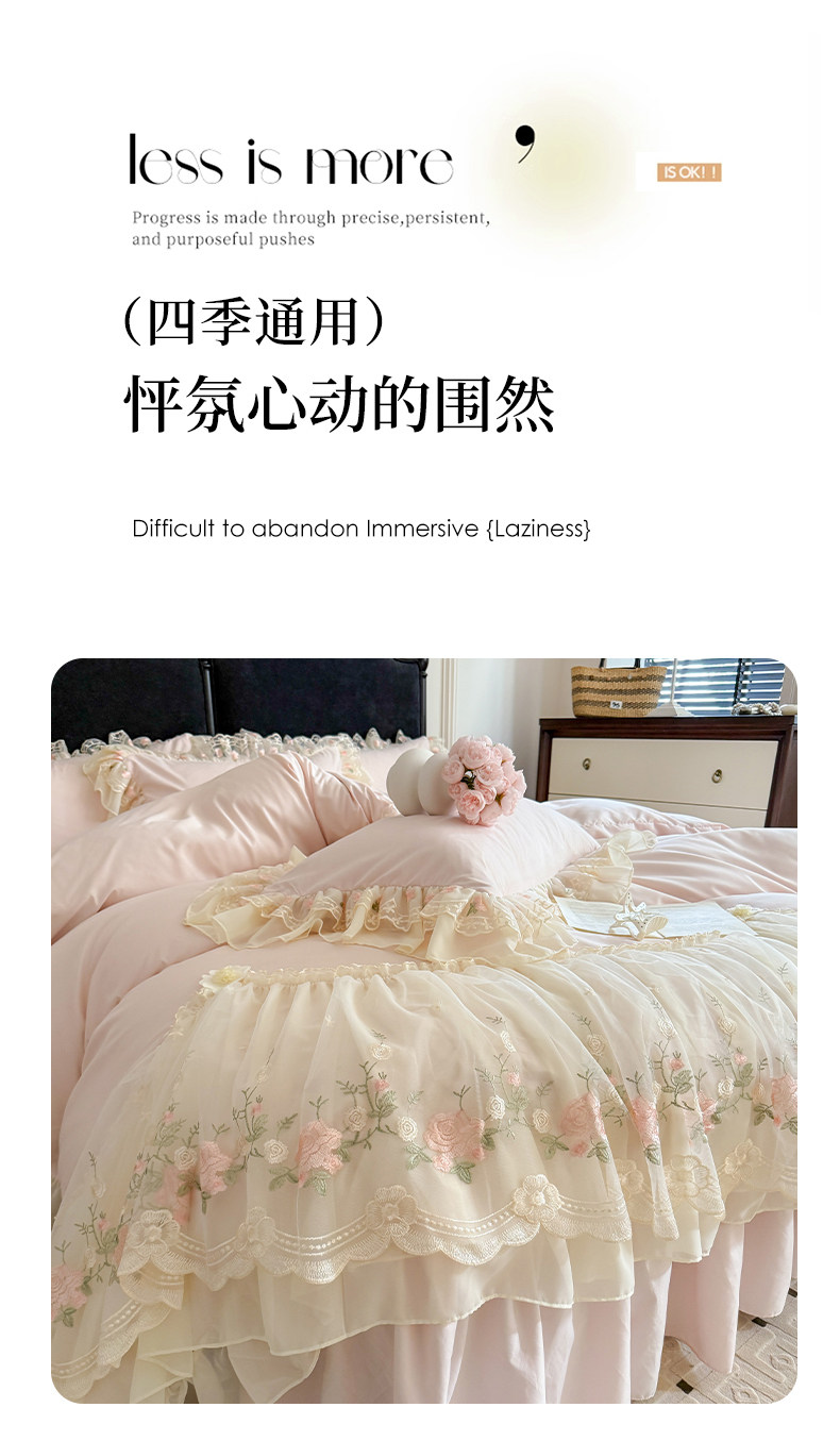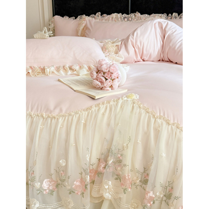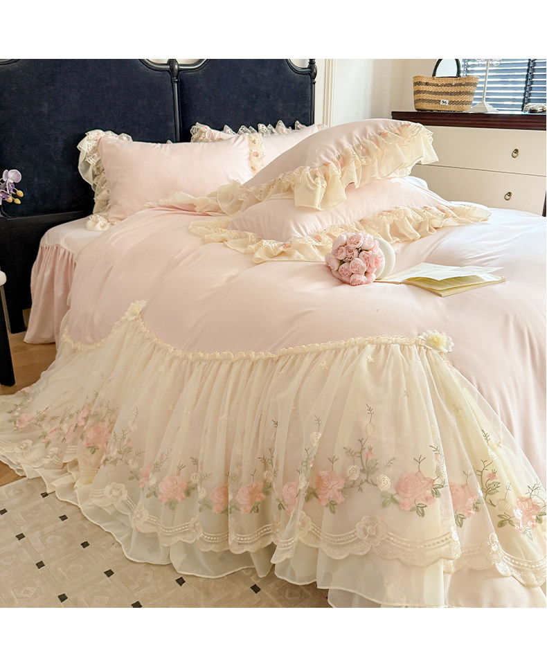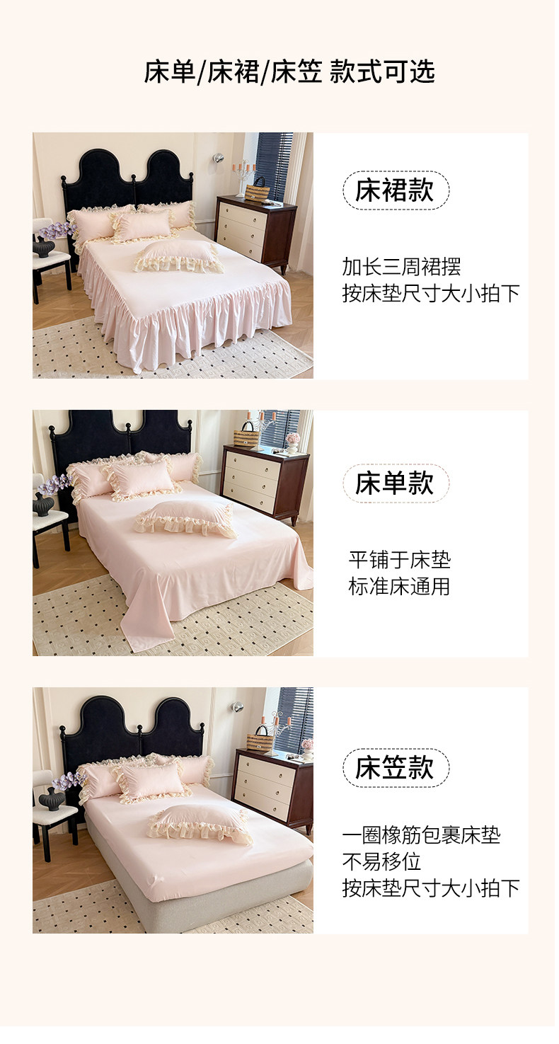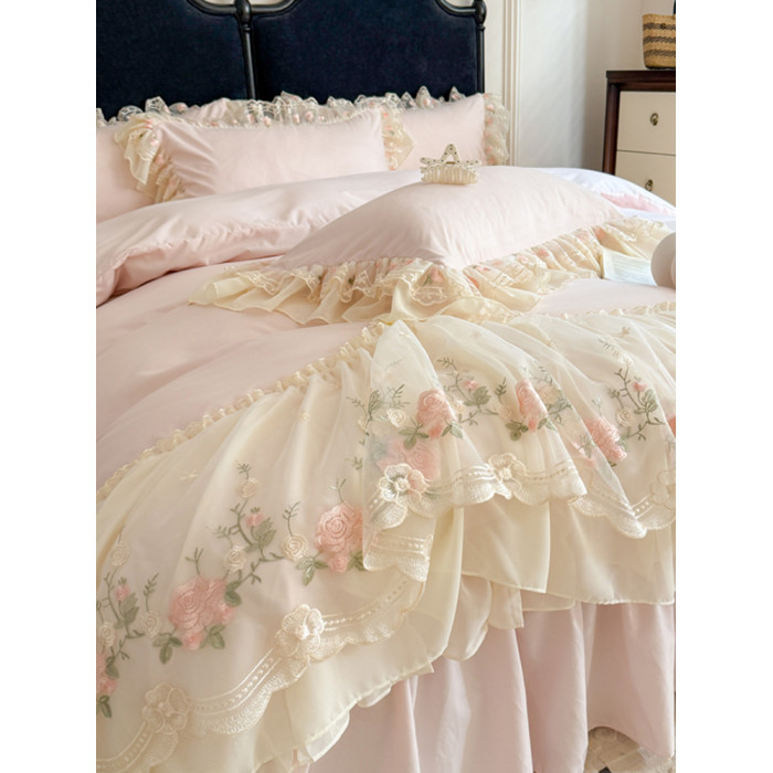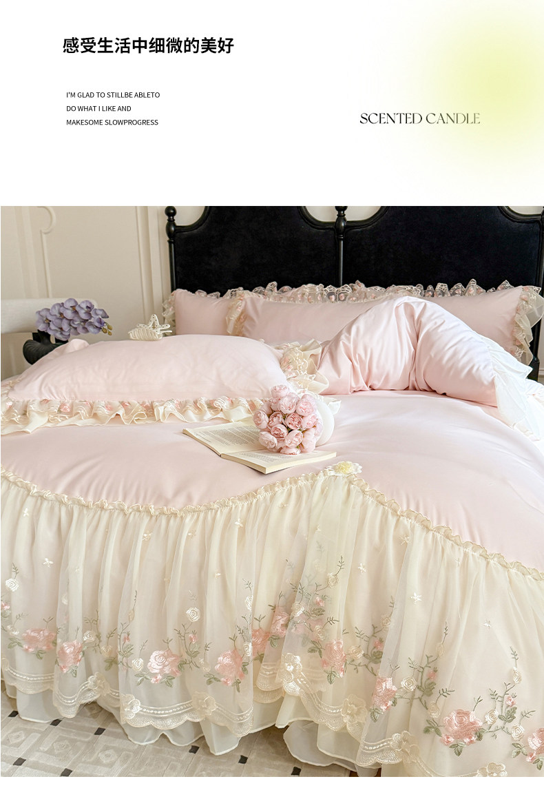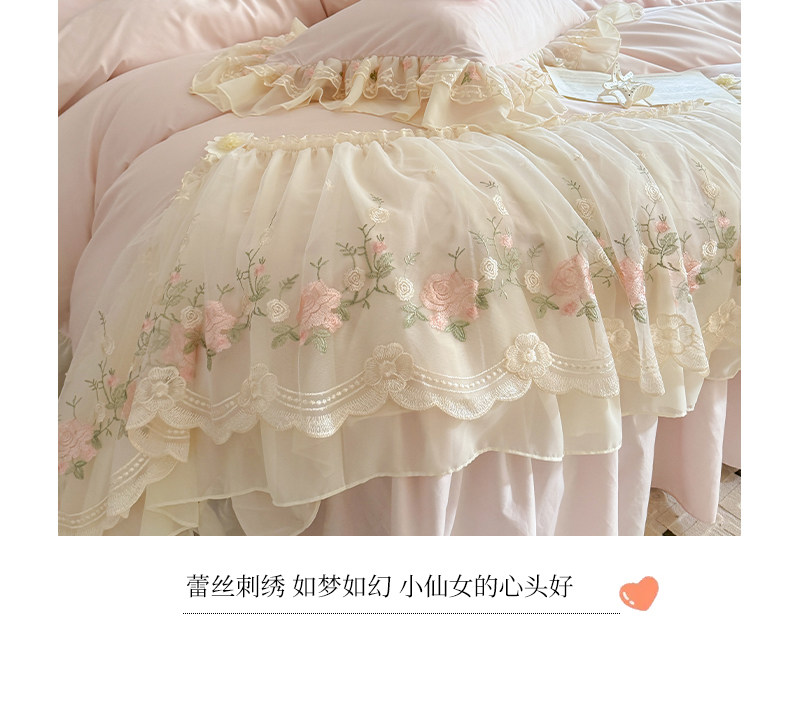 法式輕奢公主風水洗棉四件套2025新款蕾絲刺綉花邊款被套床單床品