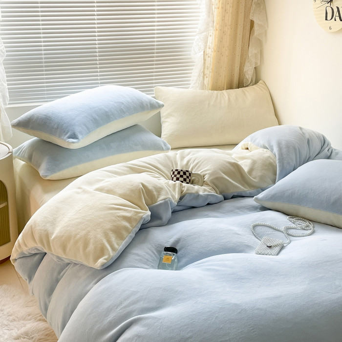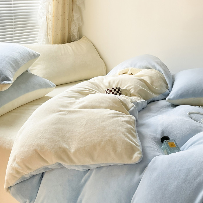 加厚牛奶絨床上四件套珊瑚絨學生宿捨床單被套罩秋冬季加絨三件套
