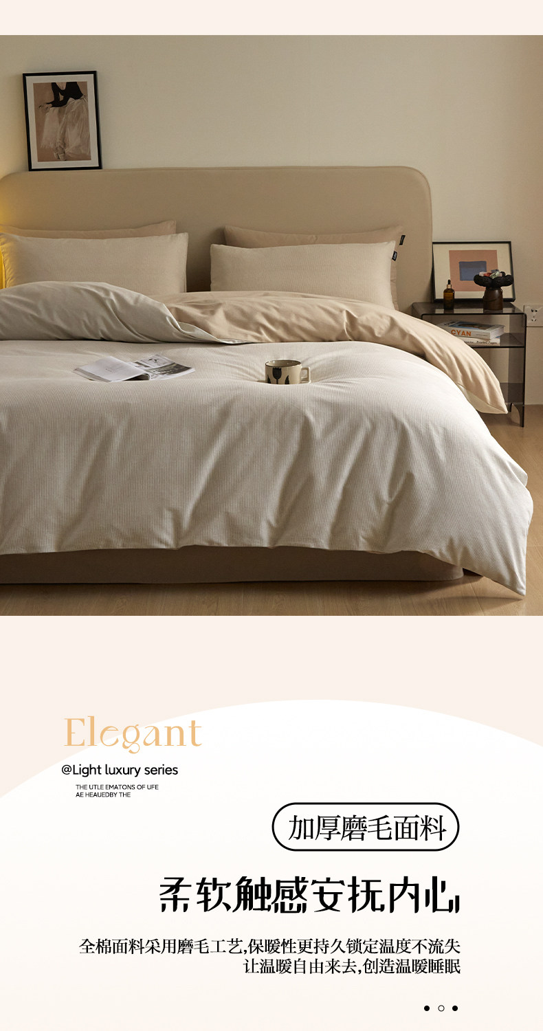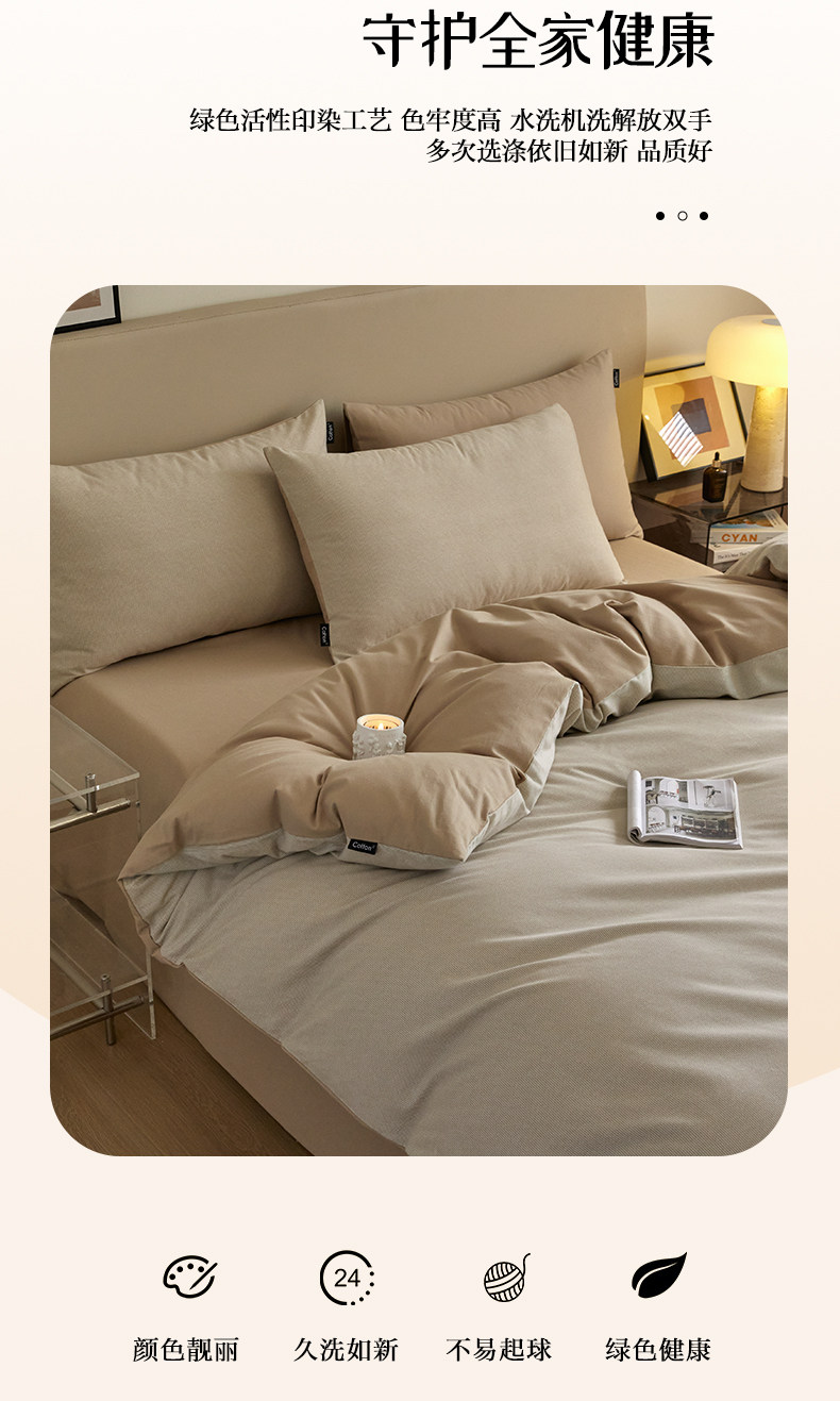 貓人全棉純棉床上四件套簡約磨毛床單被套2025新款宿捨三件套床品