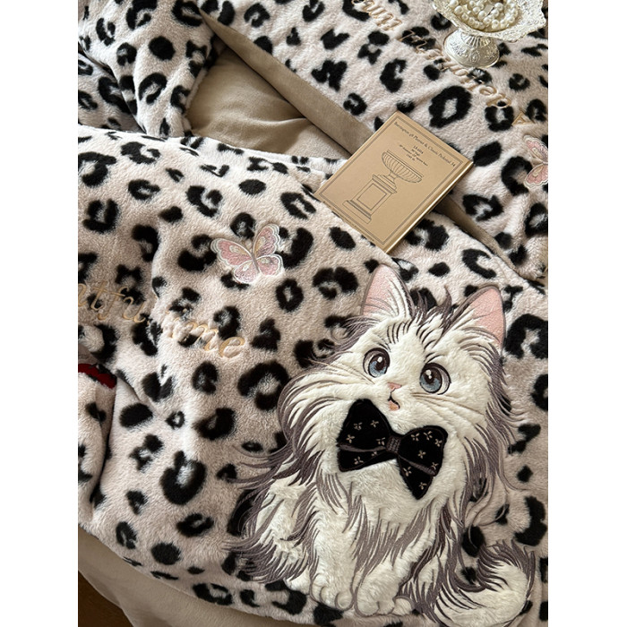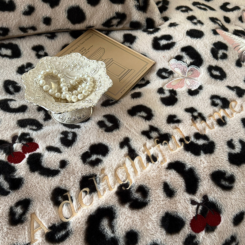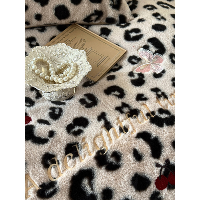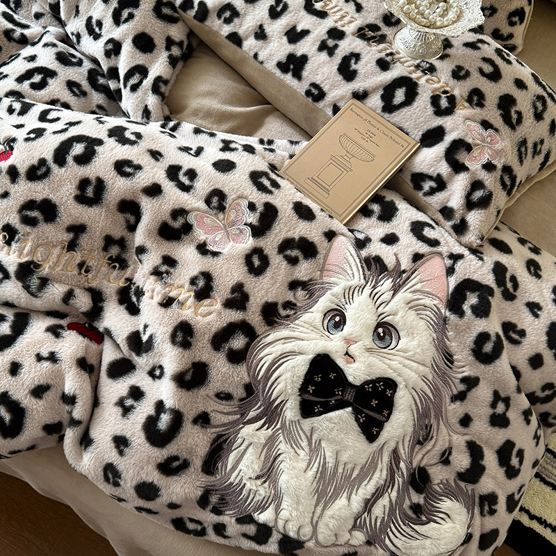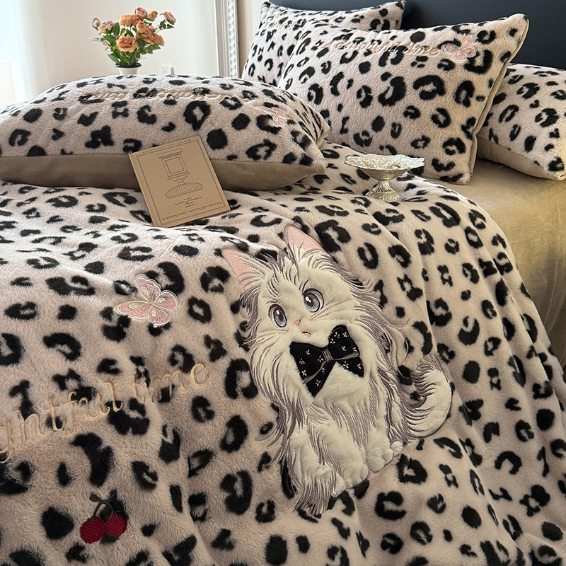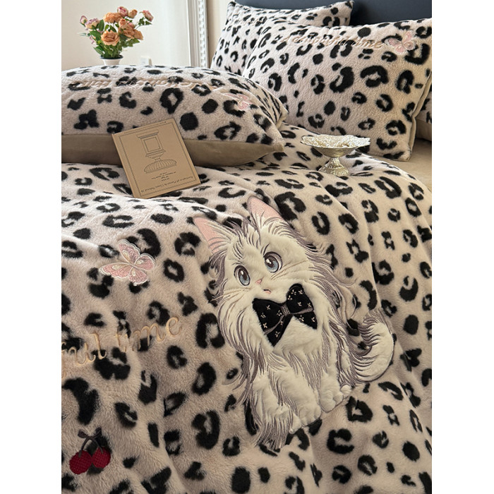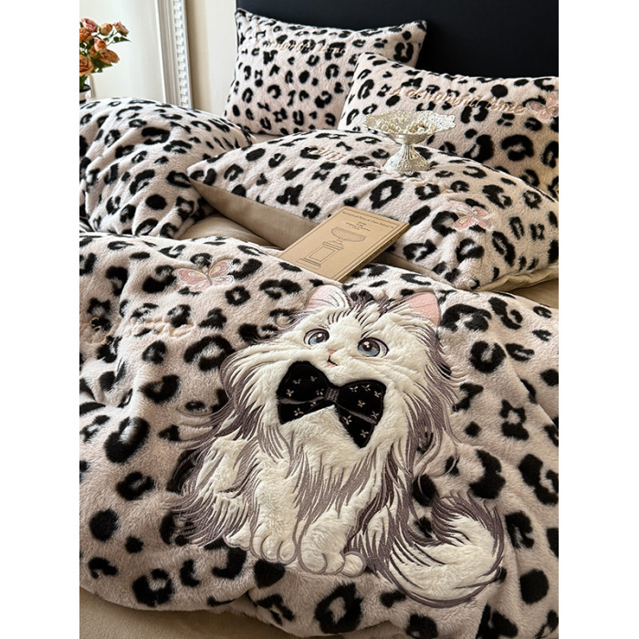 波斯貓豹紋兔毛絨四件套牛奶絨被套床單秋冬保暖珊瑚絨床品三件套