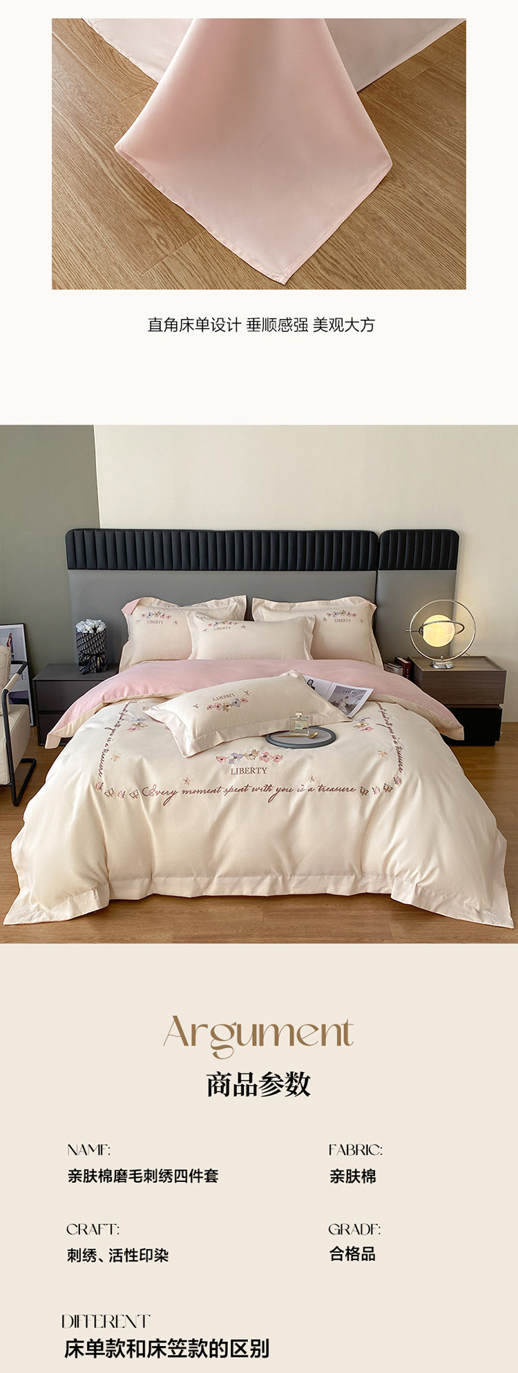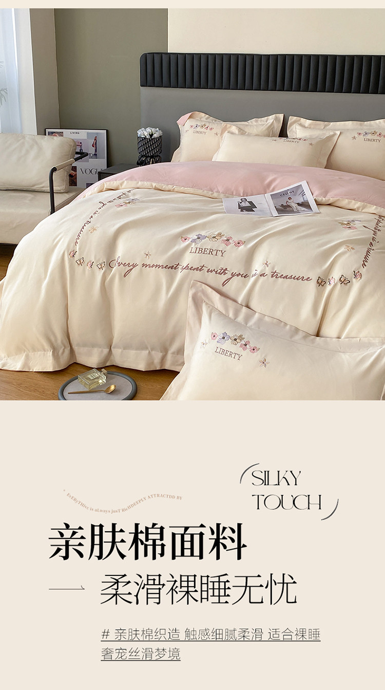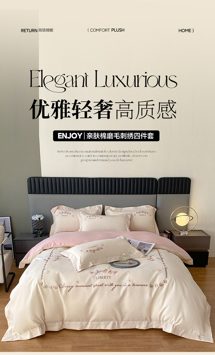 小紅書推薦裸睡磨毛純棉床單被套四件套全棉床上用品刺綉被罩床包