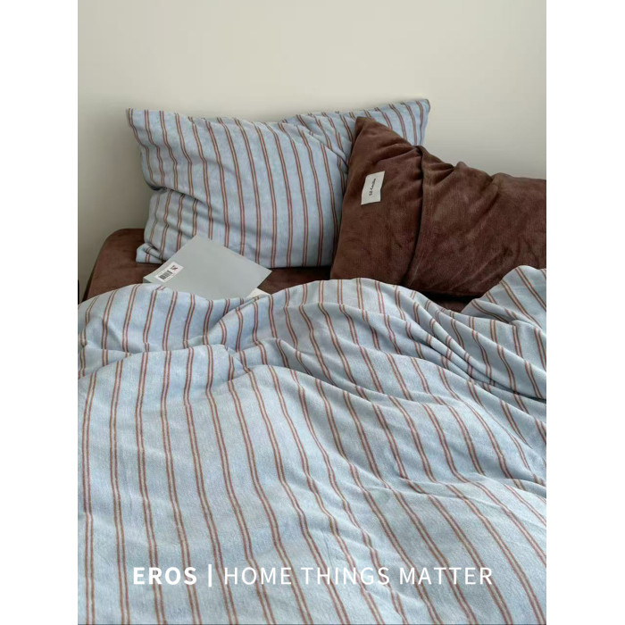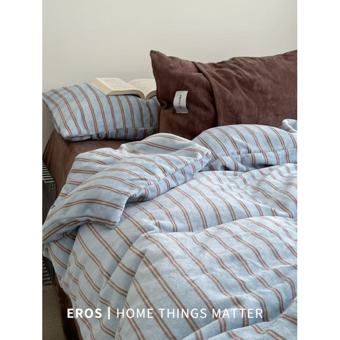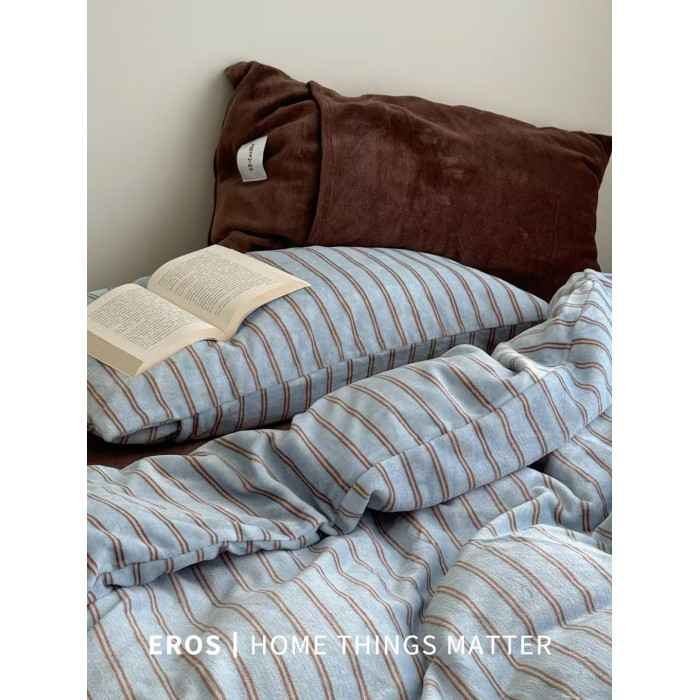 EROS自製︱萊茵旅人復古雙面牛奶絨四件套加厚ins秋冬珊瑚絨被套