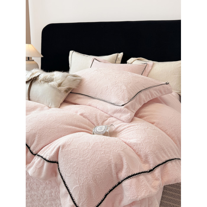 母嬰A類牛奶絨保暖四件套防靜電保暖珊瑚絨被套加厚床蓋床上用品4