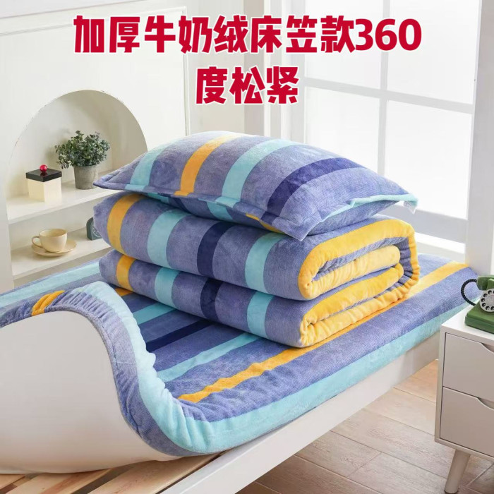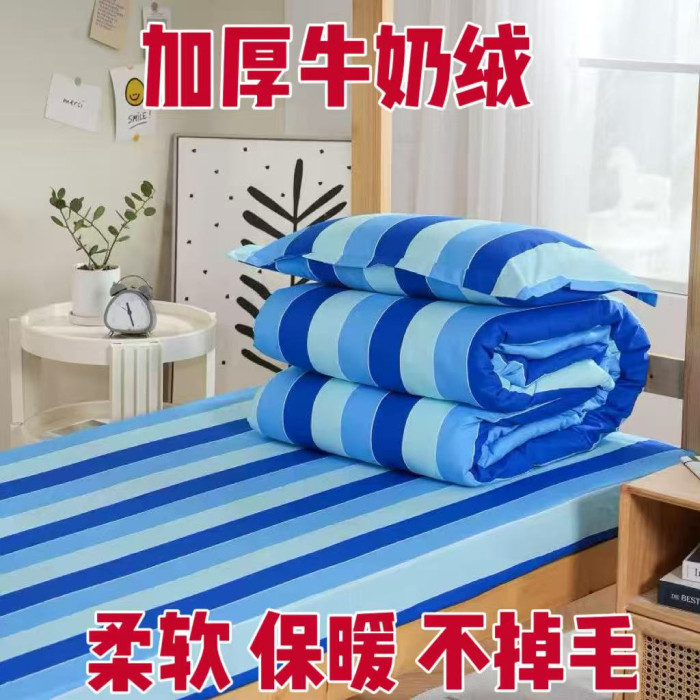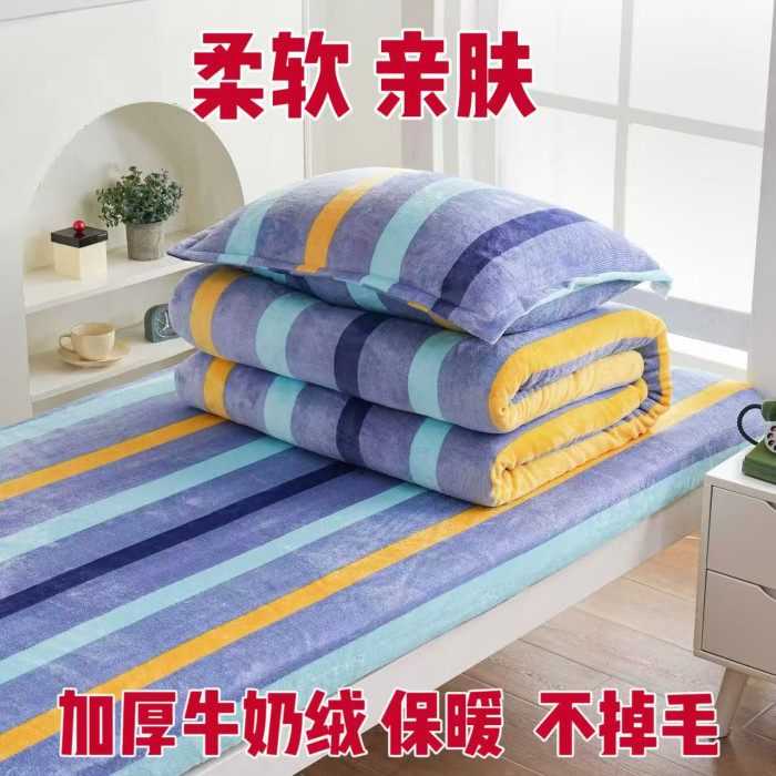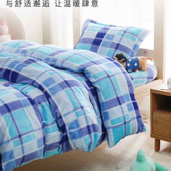 學生加絨被罩床單枕套三件套不起靜電不掉毛加厚牛奶絨被套珊瑚絨