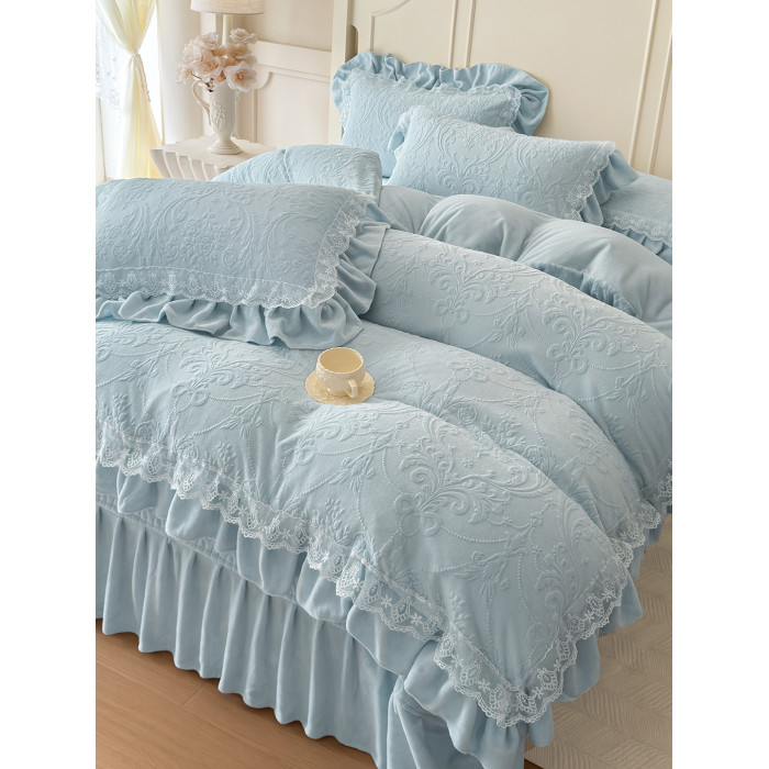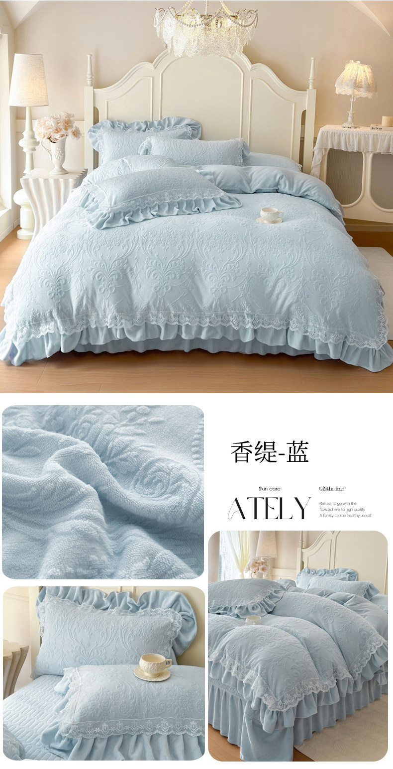 澳洲A類牛奶絨四件套床蓋款冬季加厚加絨床單被套雙面珊瑚絨床包