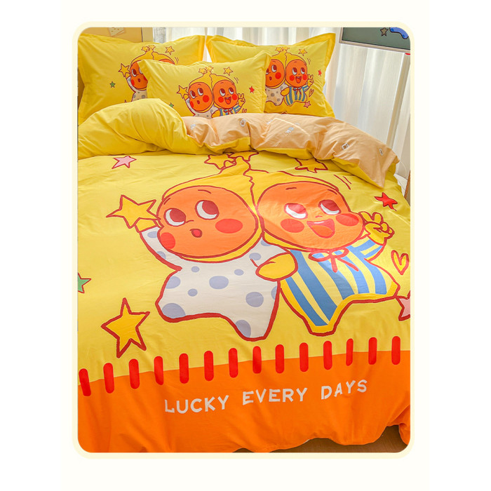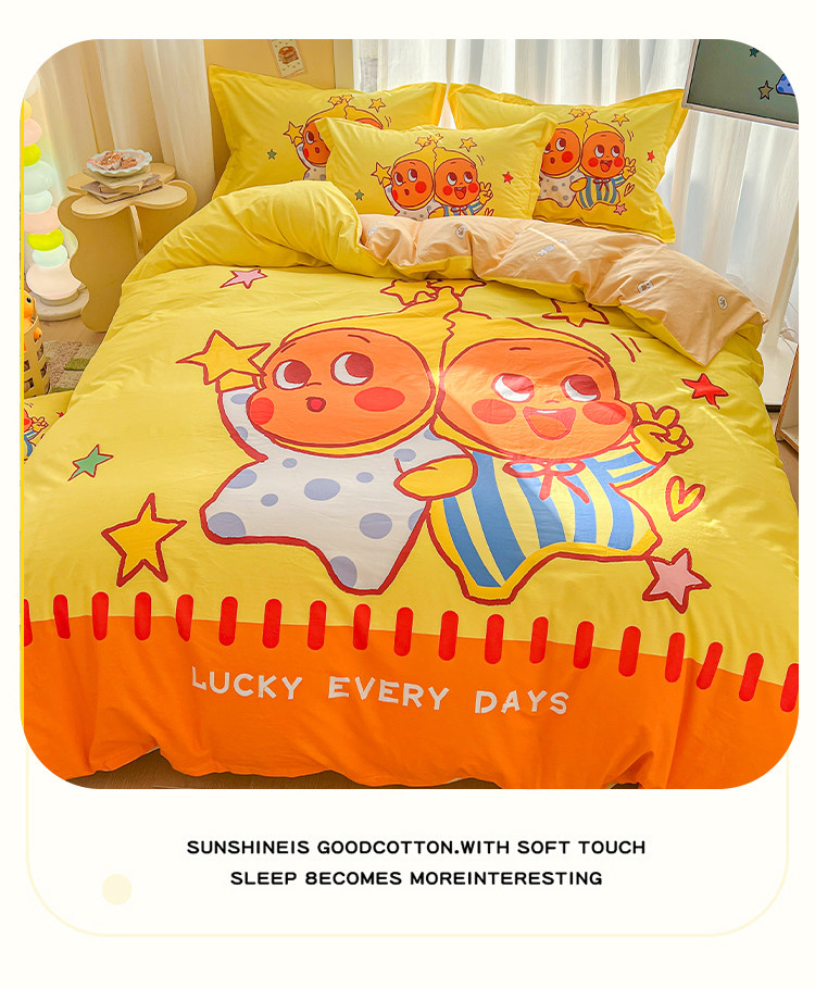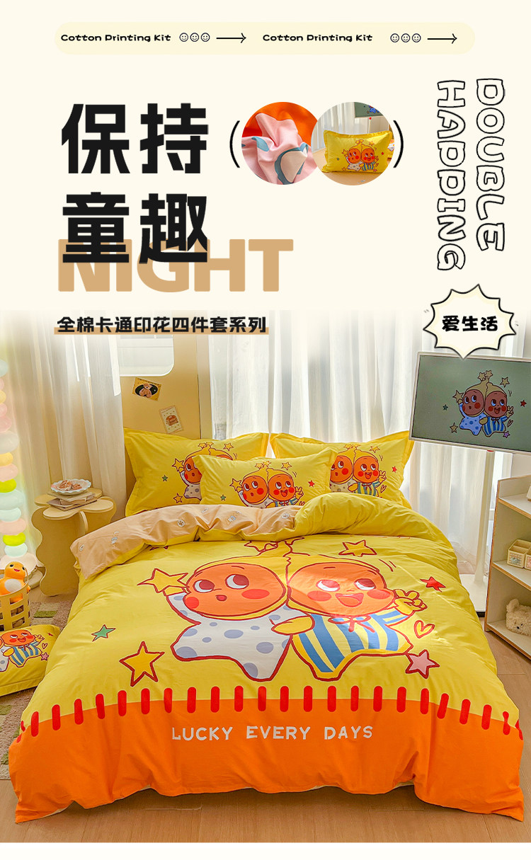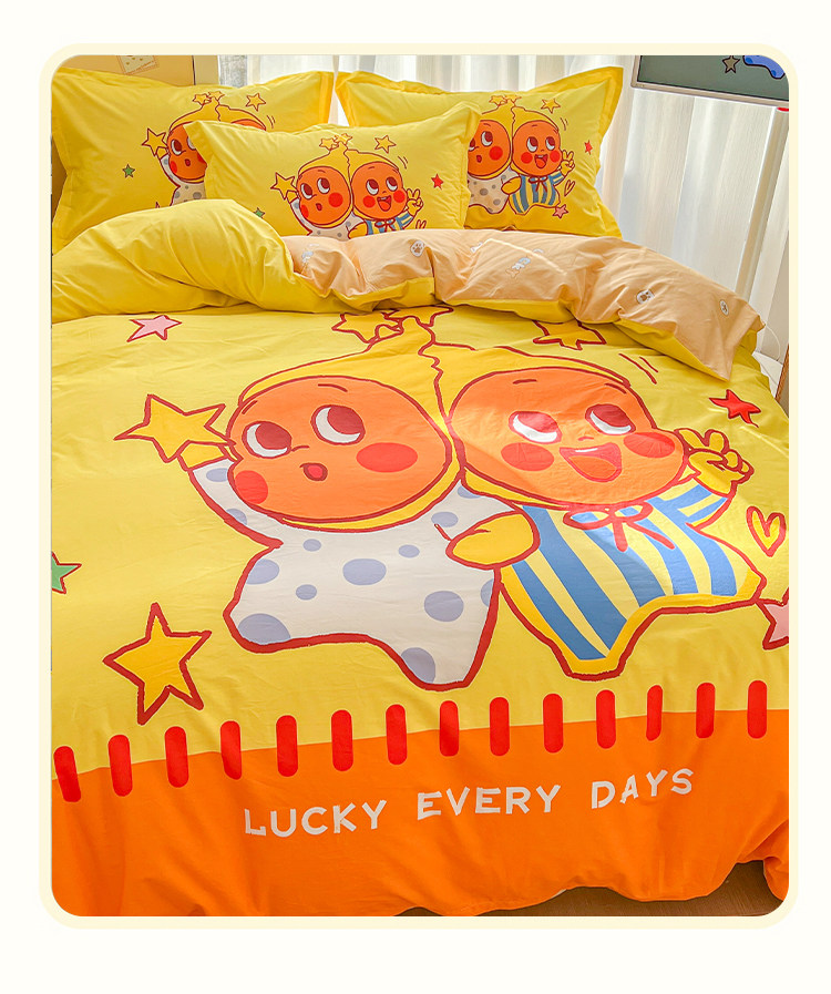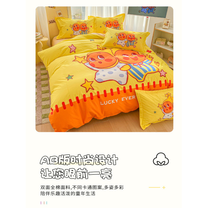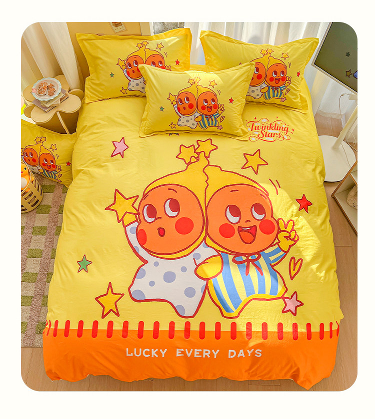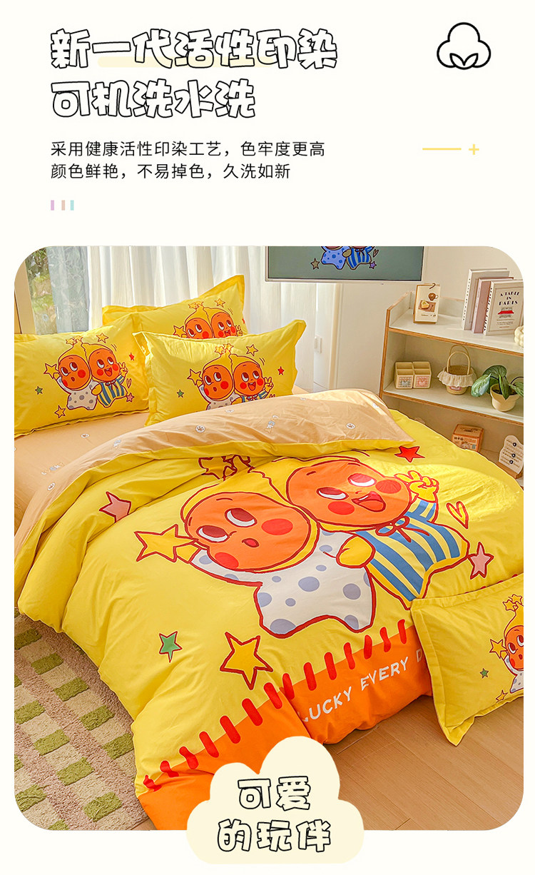 100全棉兒童四件套星星人卡通純棉被套床單人學生宿捨三件套床品4