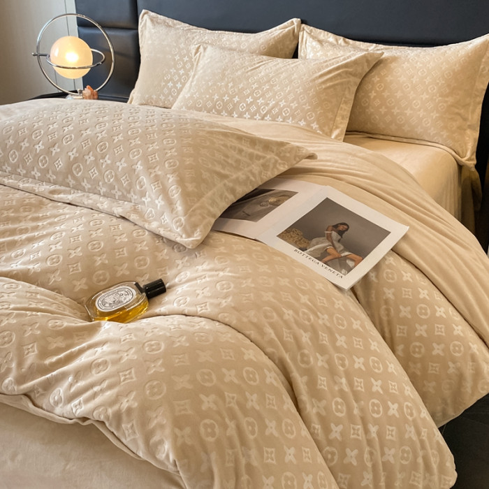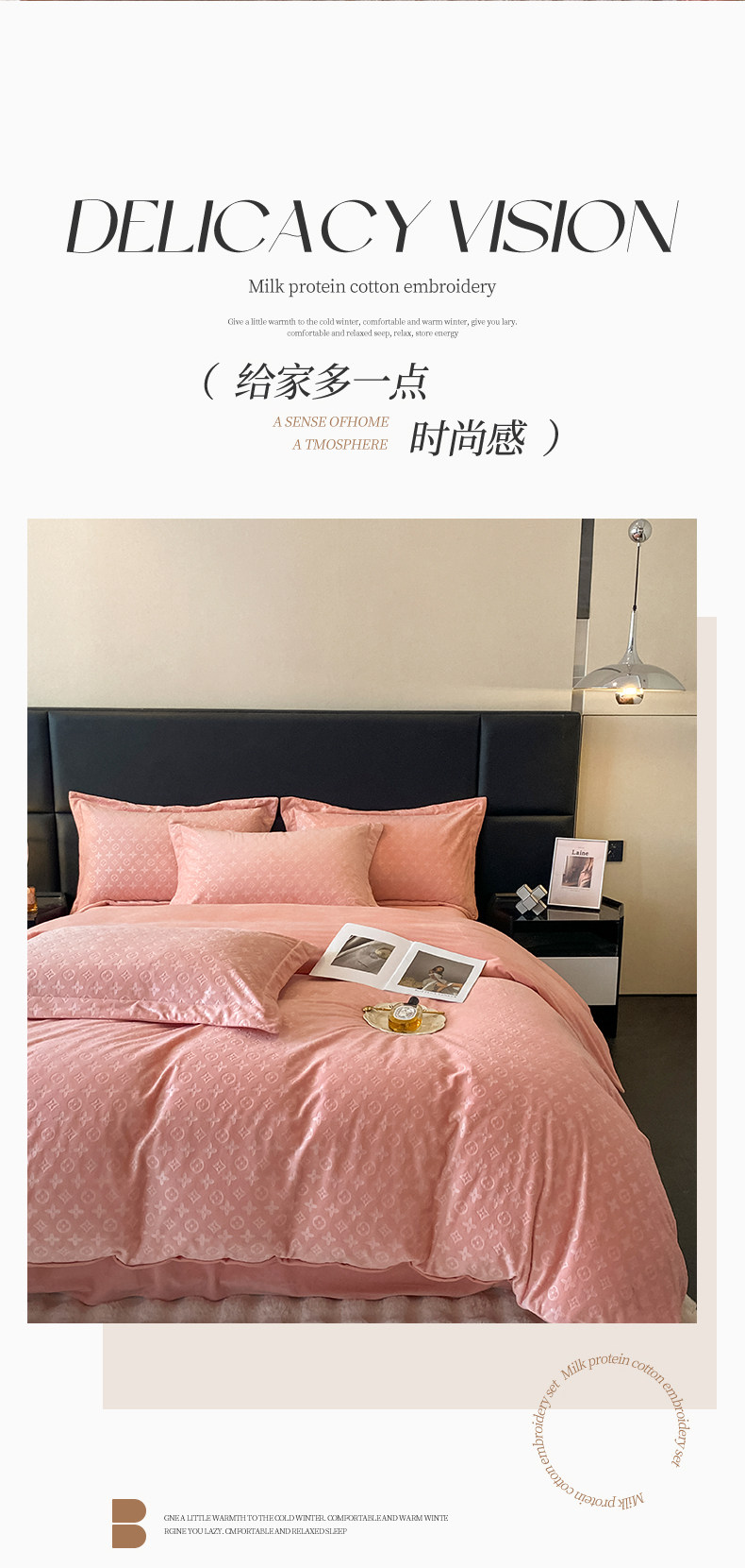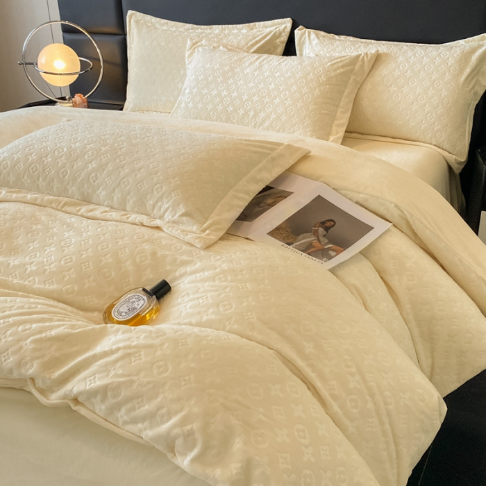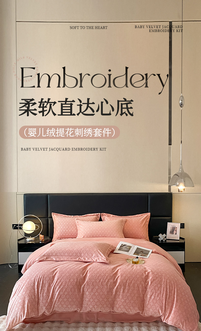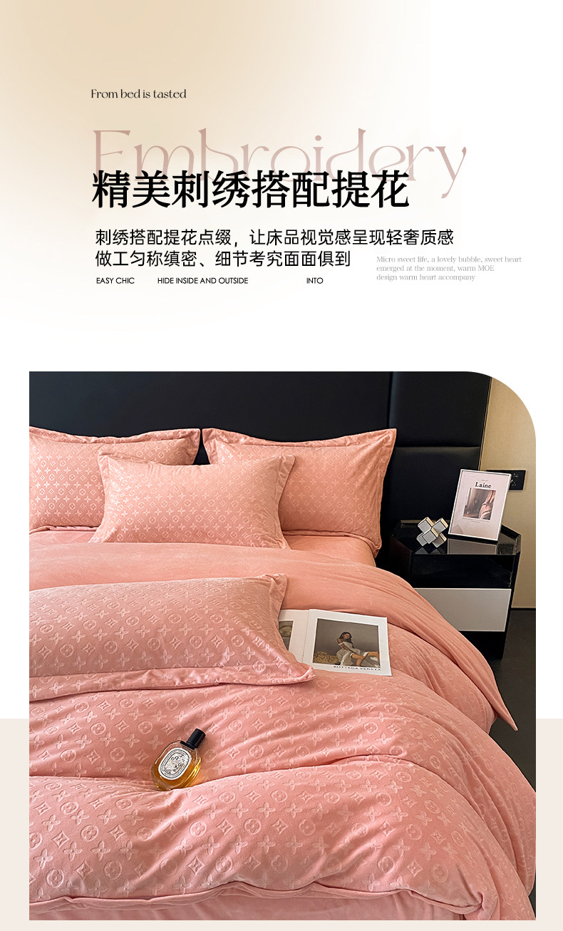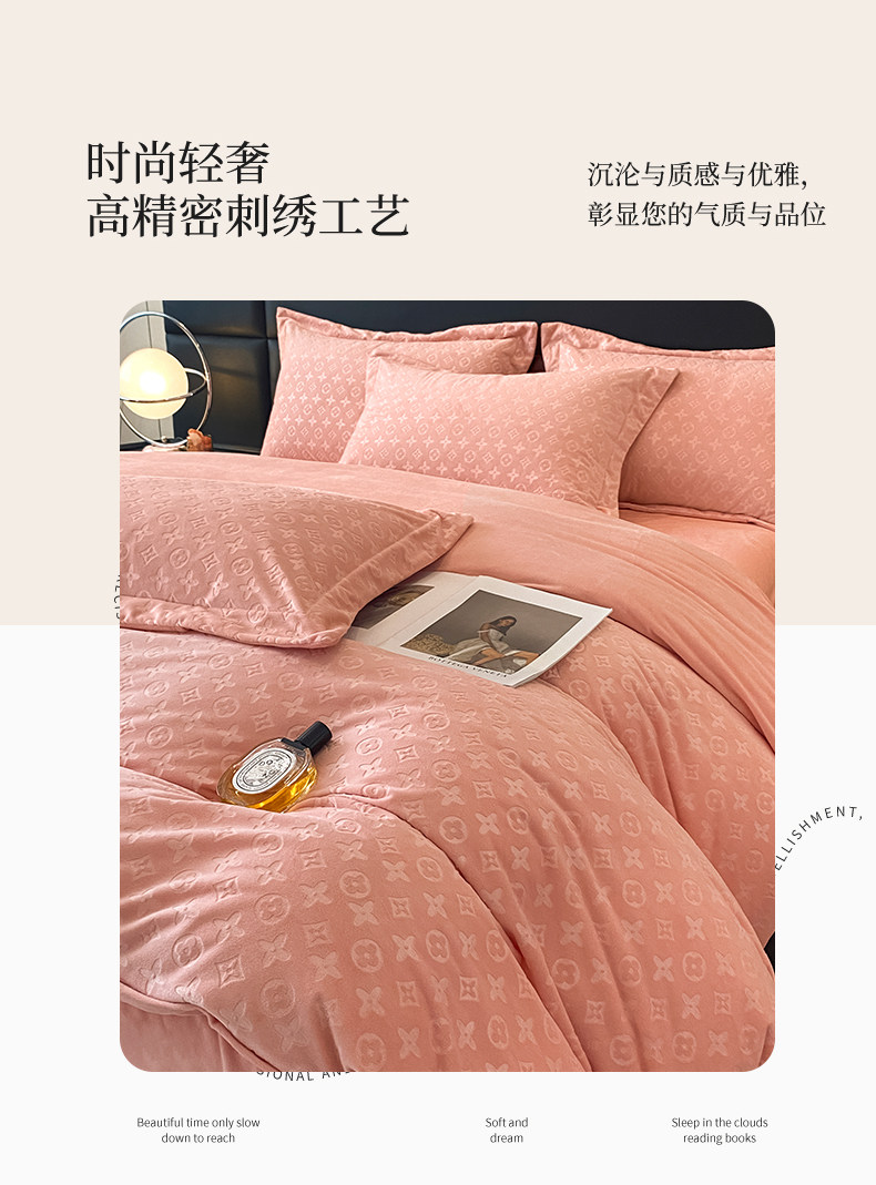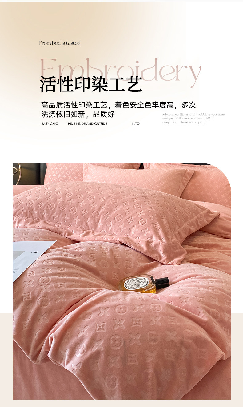 2025新款冬季四件套雕花絨保暖被罩牛奶絨裸睡雙面加絨寶寶絨床罩