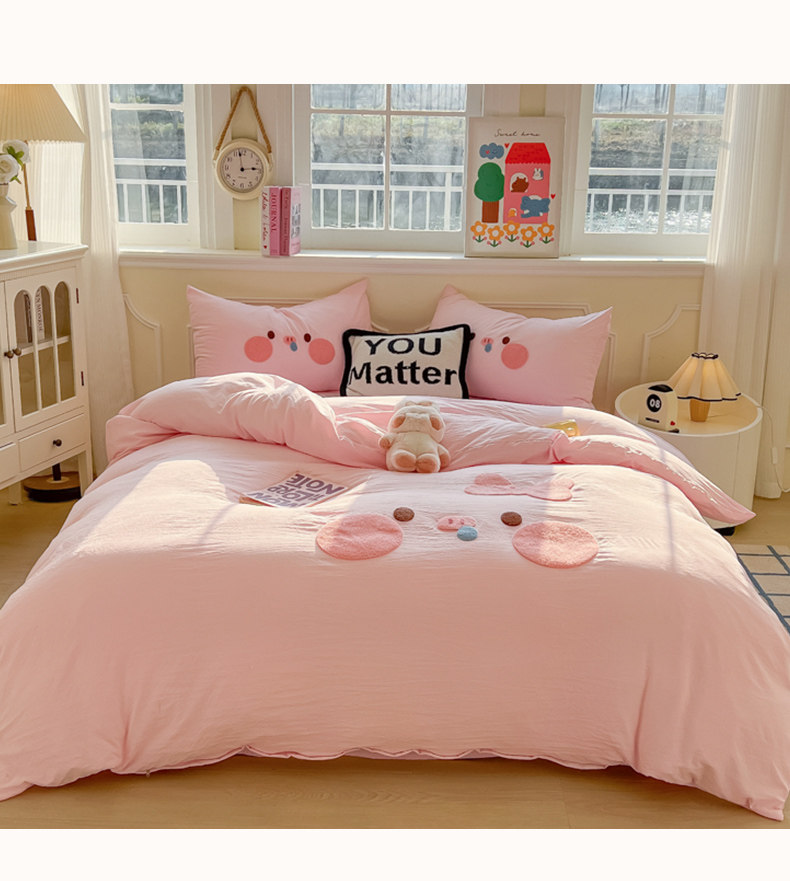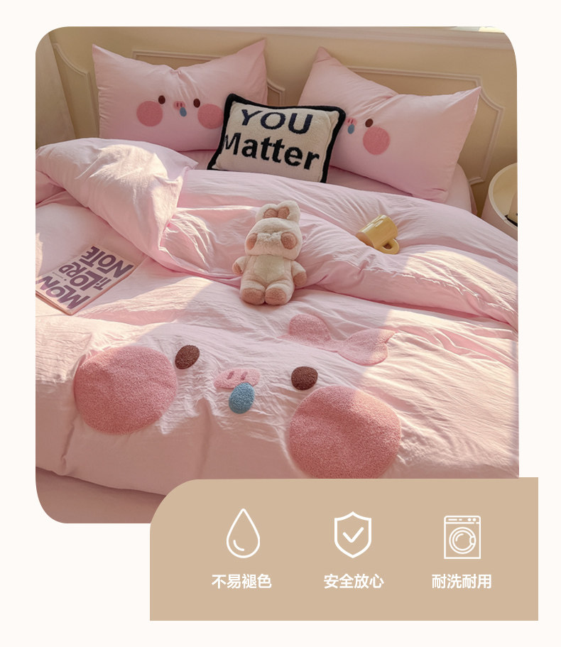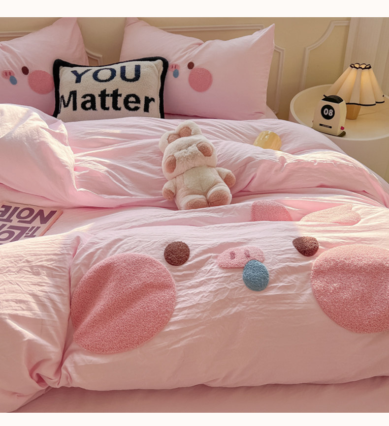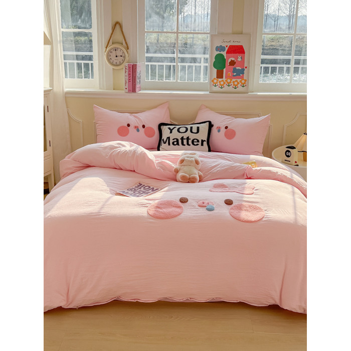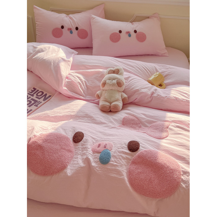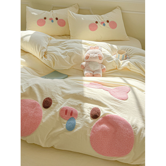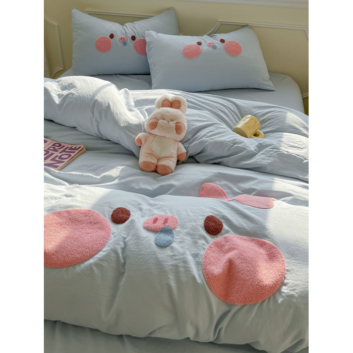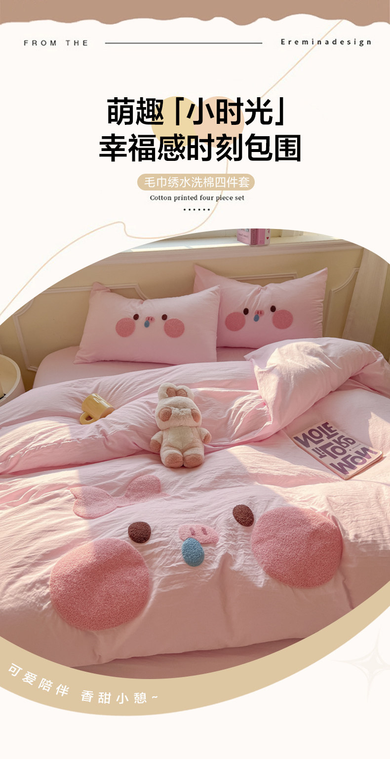 純棉水洗棉毛巾綉四件套全棉可愛小豬被套床單全包圍床包罩兒童房
