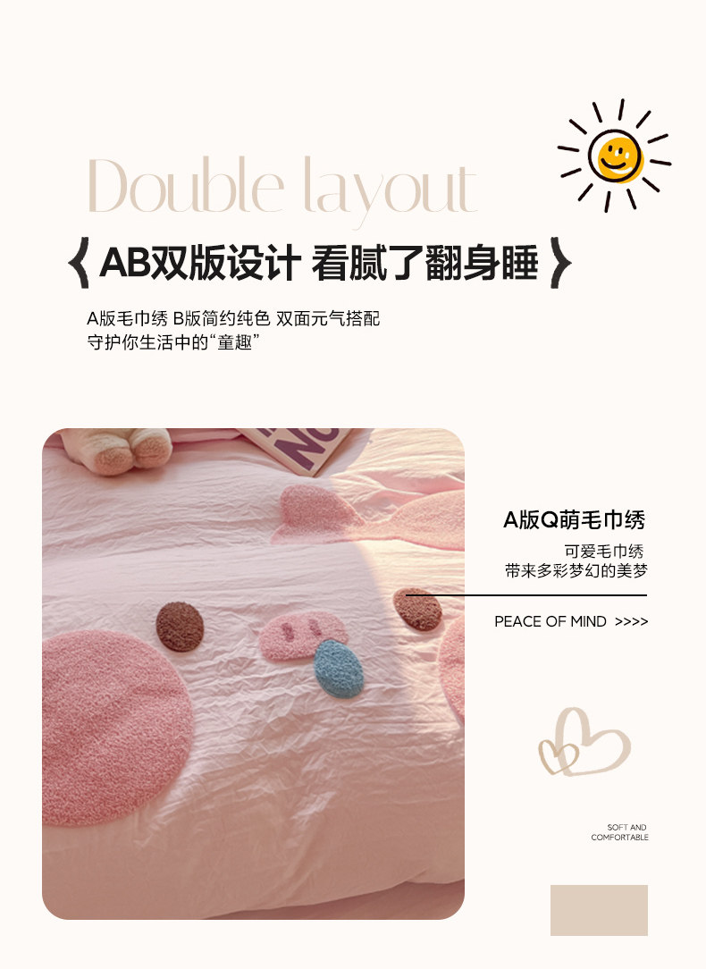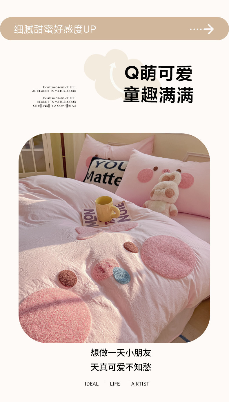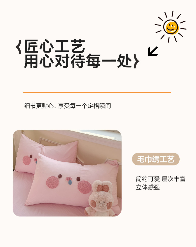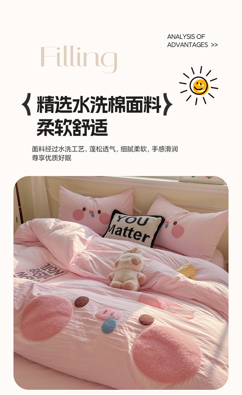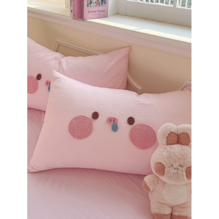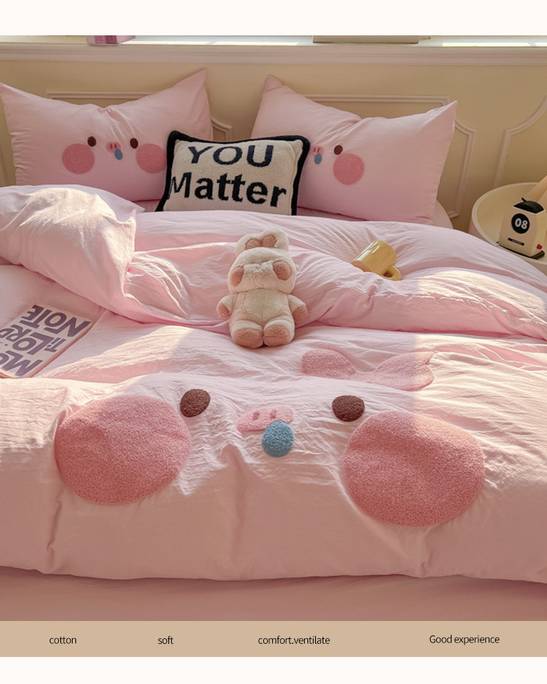 純棉水洗棉毛巾綉四件套全棉可愛小豬被套床單全包圍床包罩兒童房