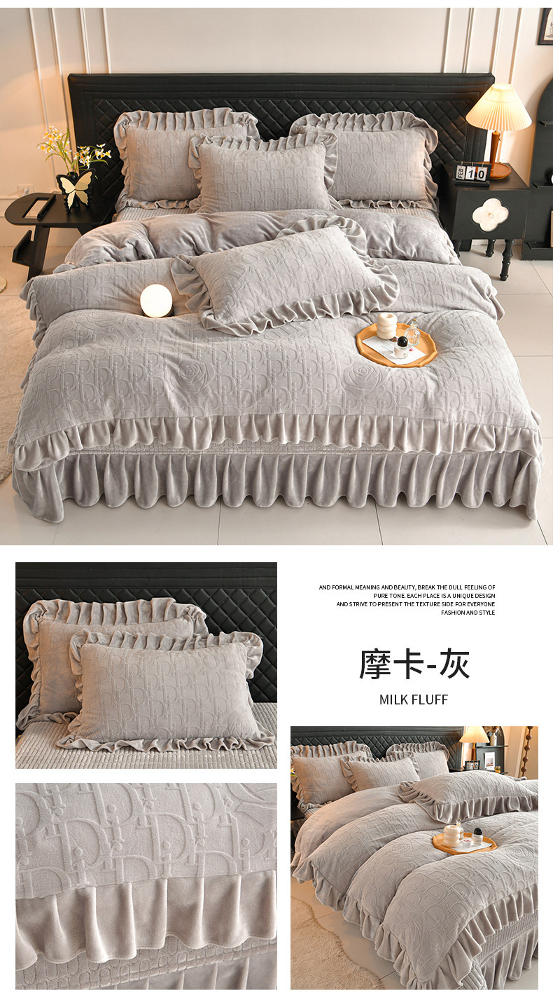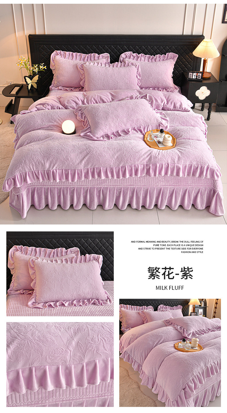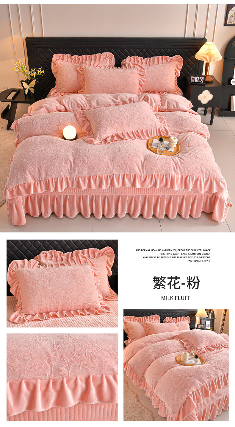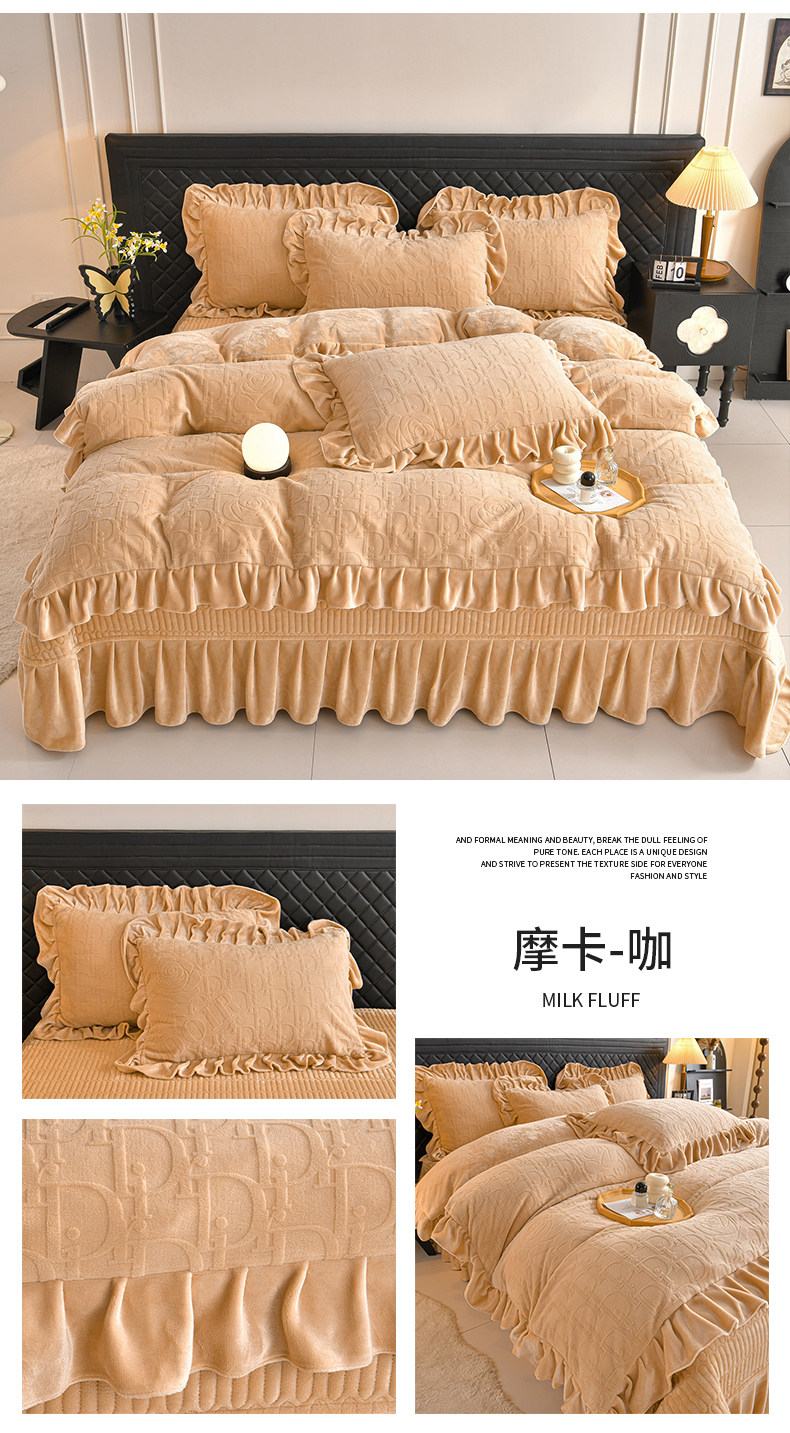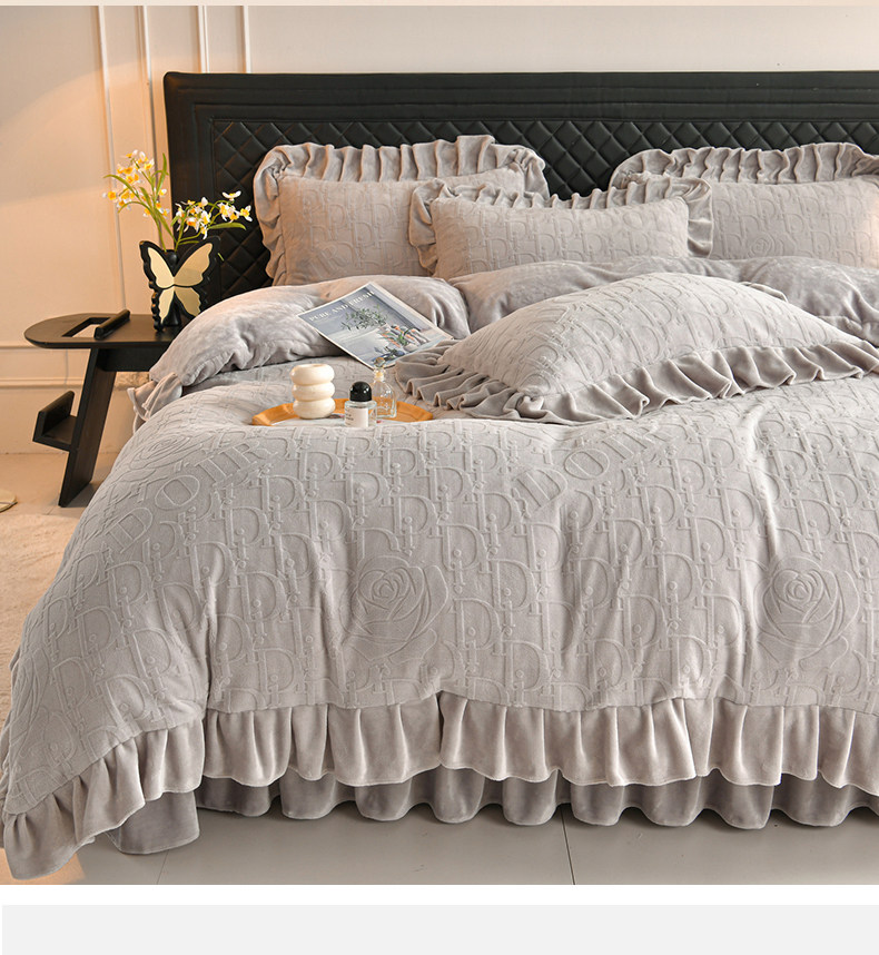 秋冬季床蓋牛奶絨四件套雙面加絨被套珊瑚絨被罩夾棉加厚床單防滑
