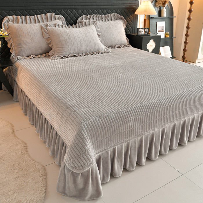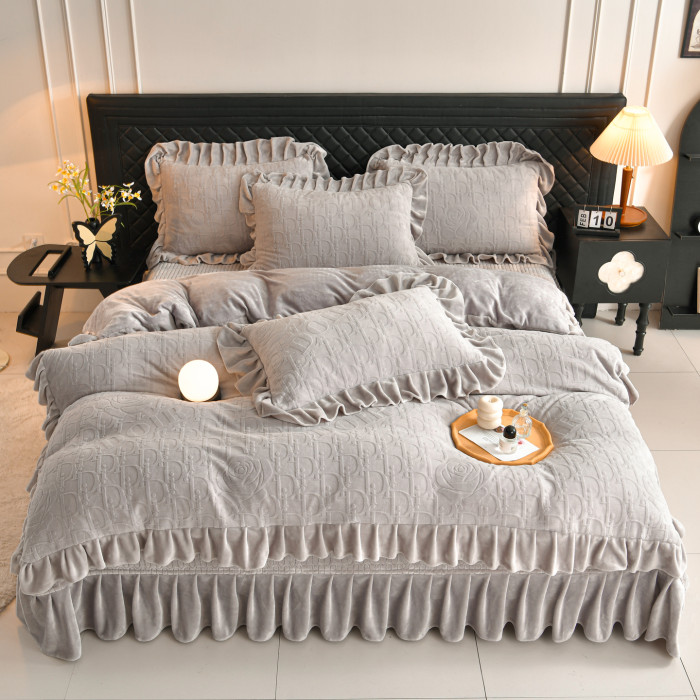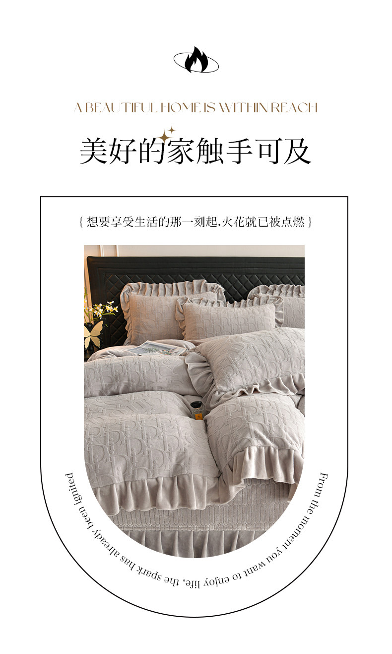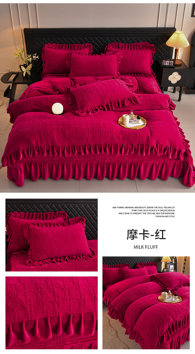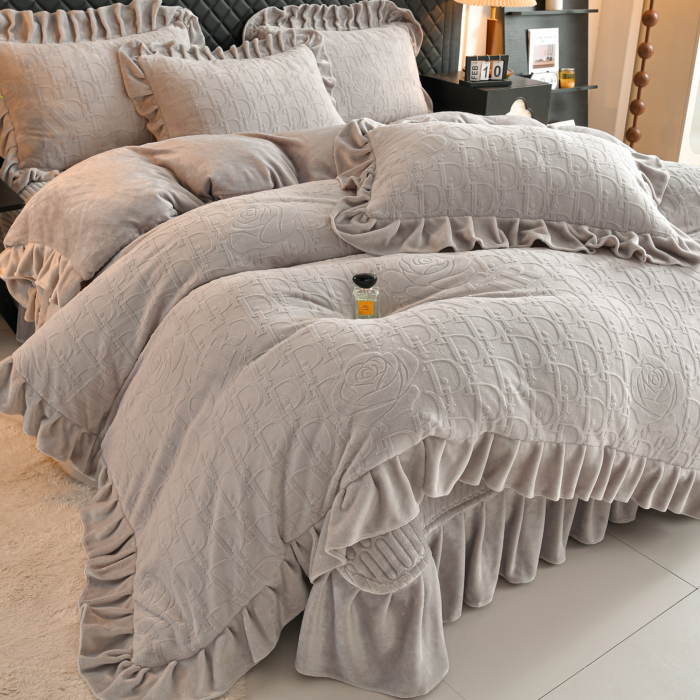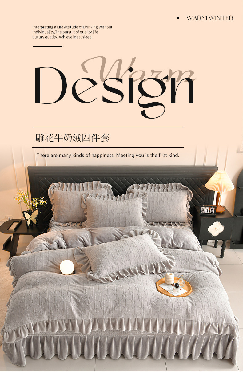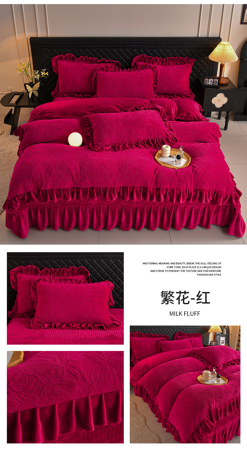 秋冬季床蓋牛奶絨四件套雙面加絨被套珊瑚絨被罩夾棉加厚床單防滑