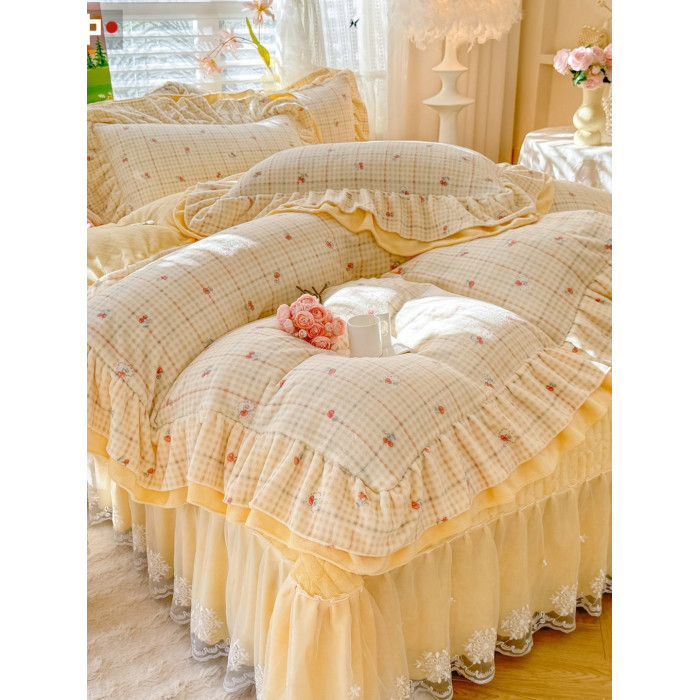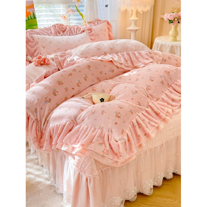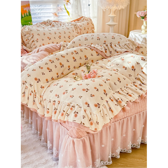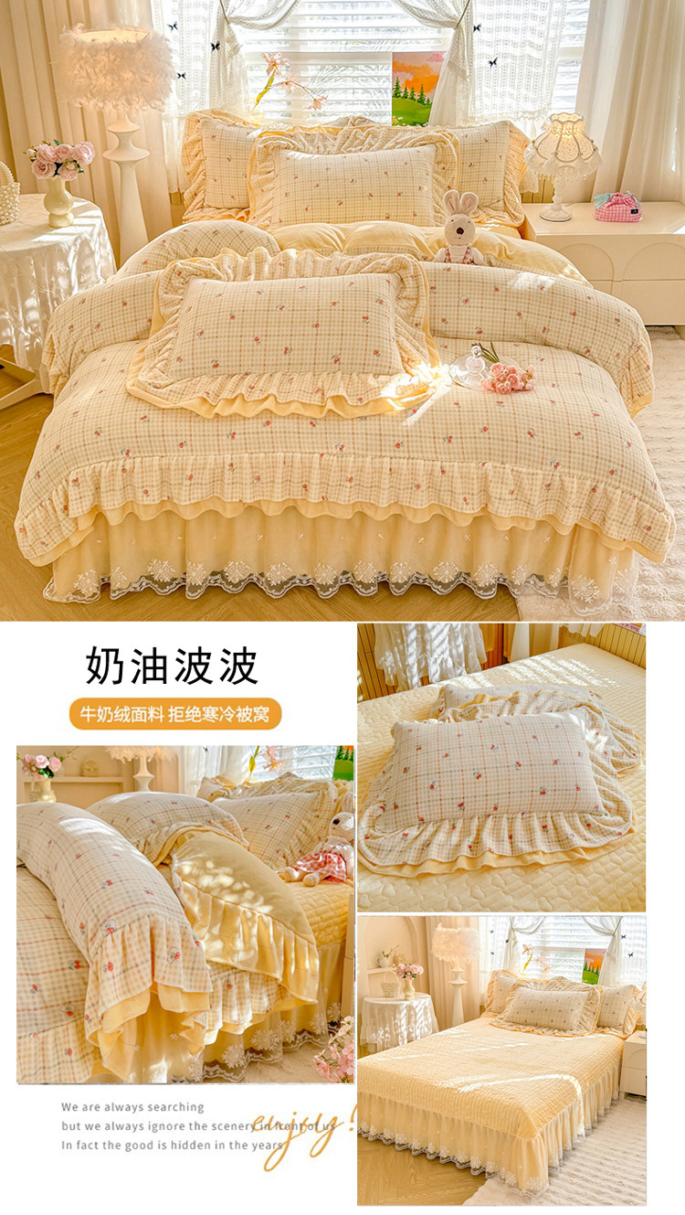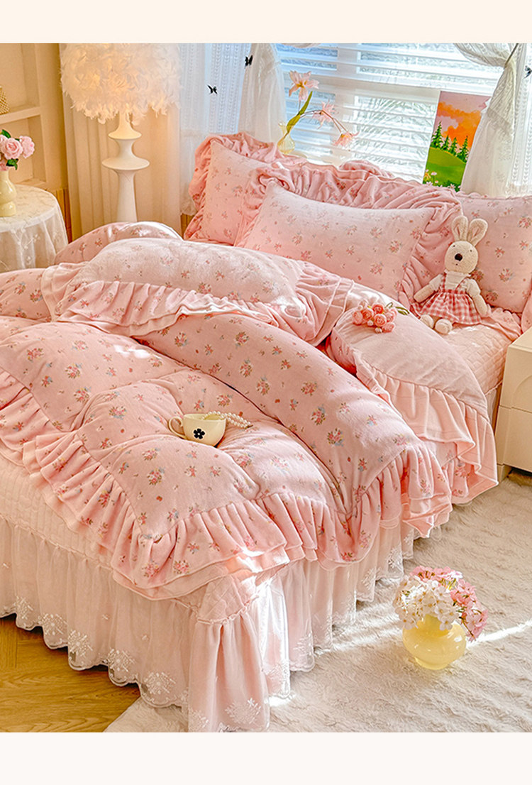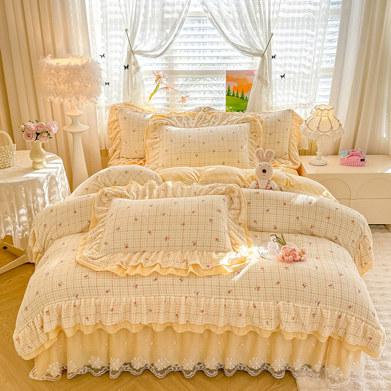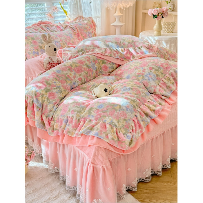 小紅書推薦冬季公主風雙面牛奶絨床蓋四件套A類加厚保暖花邊被套