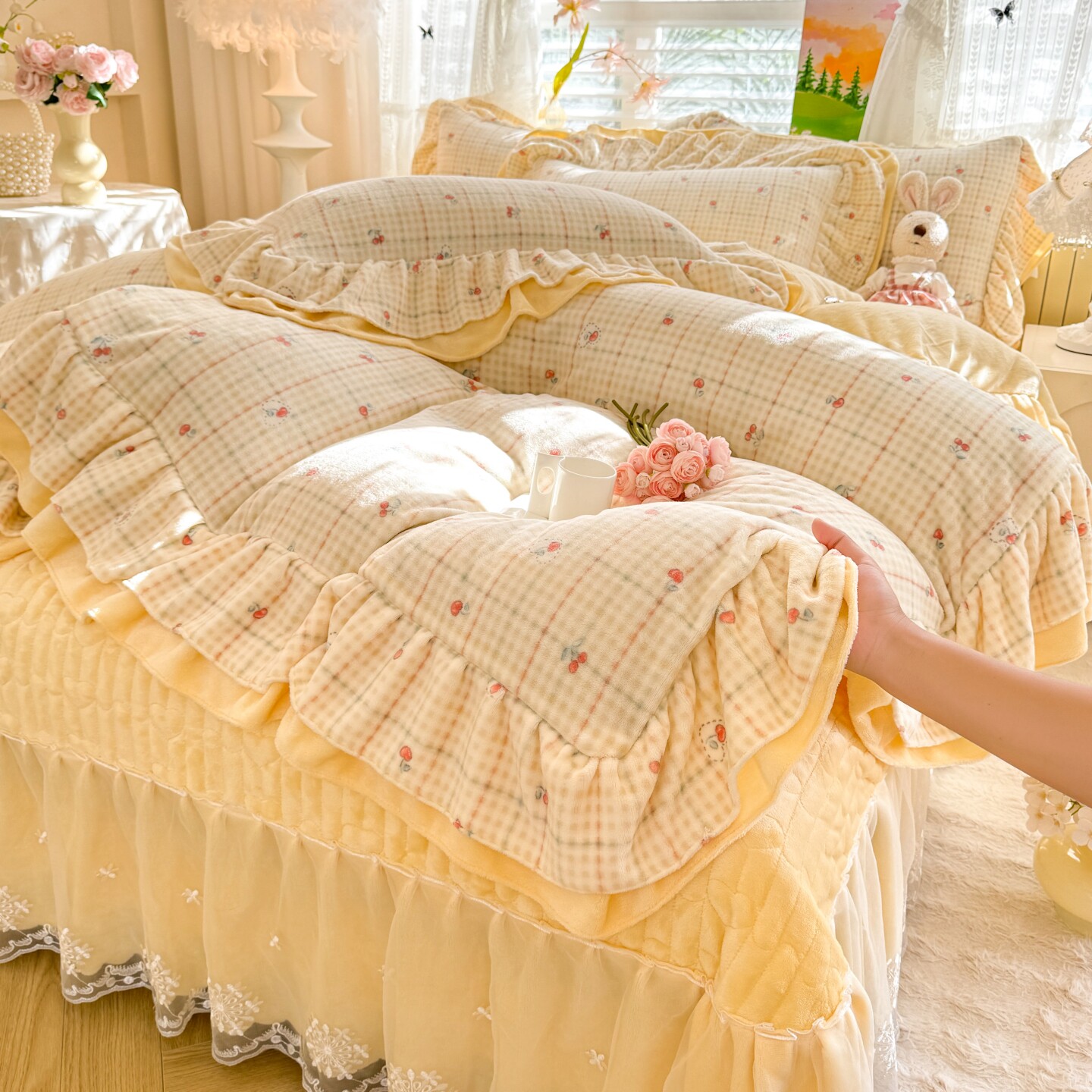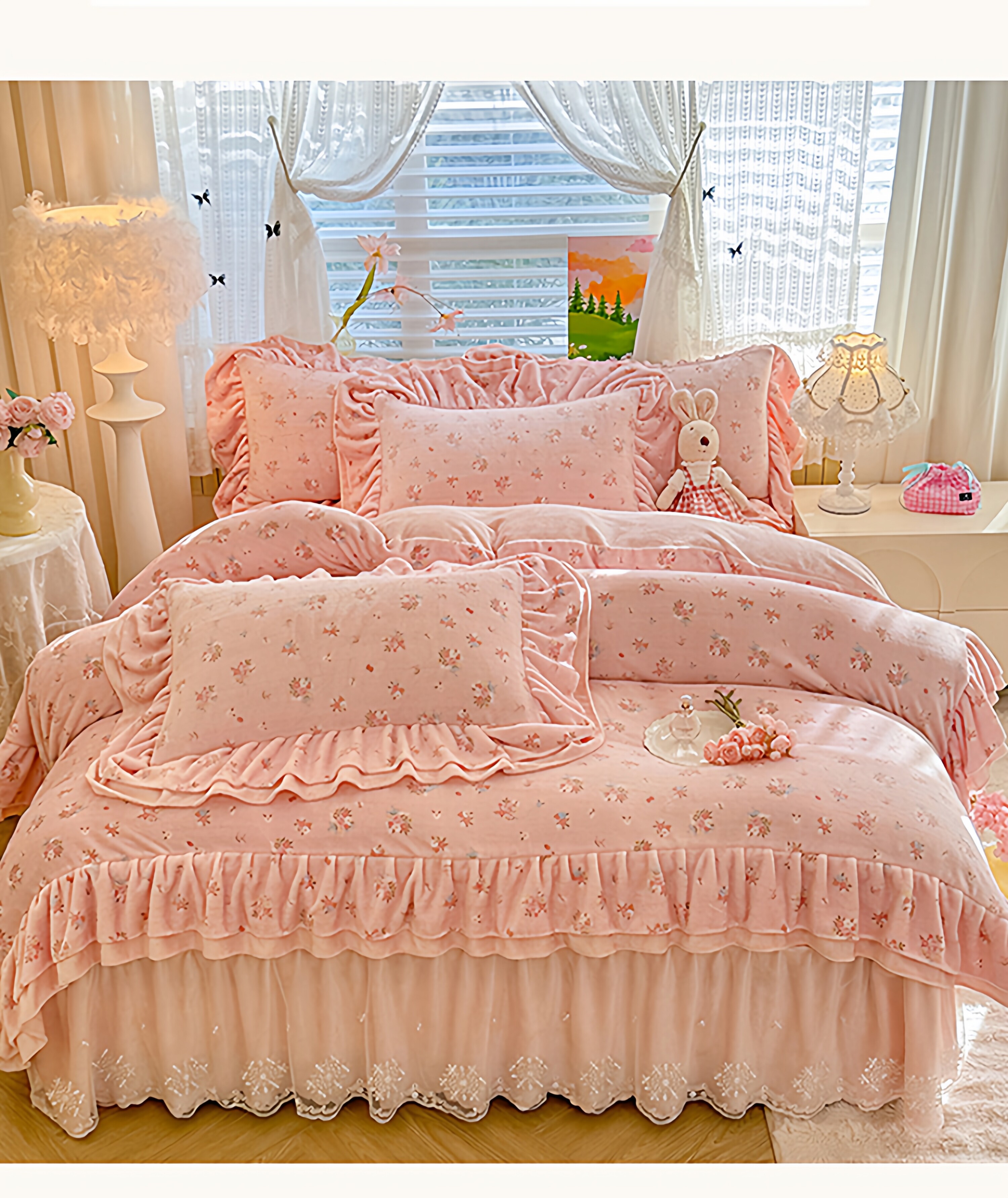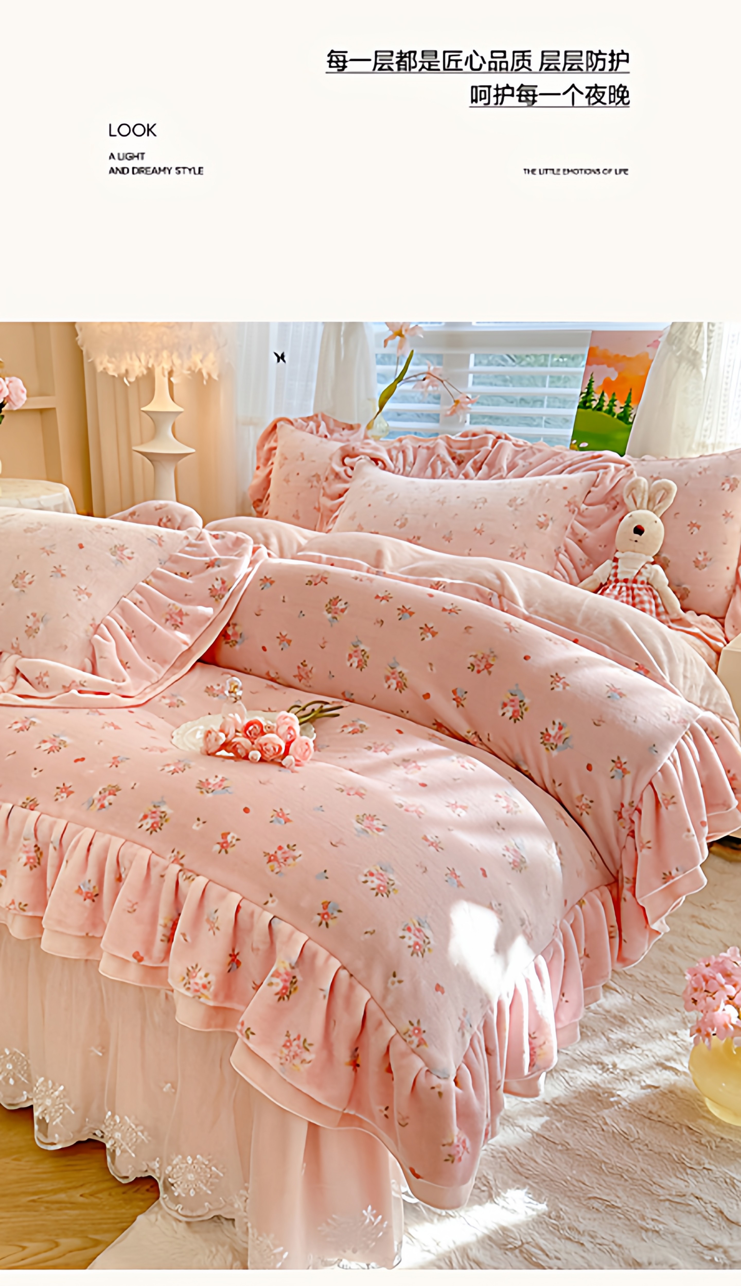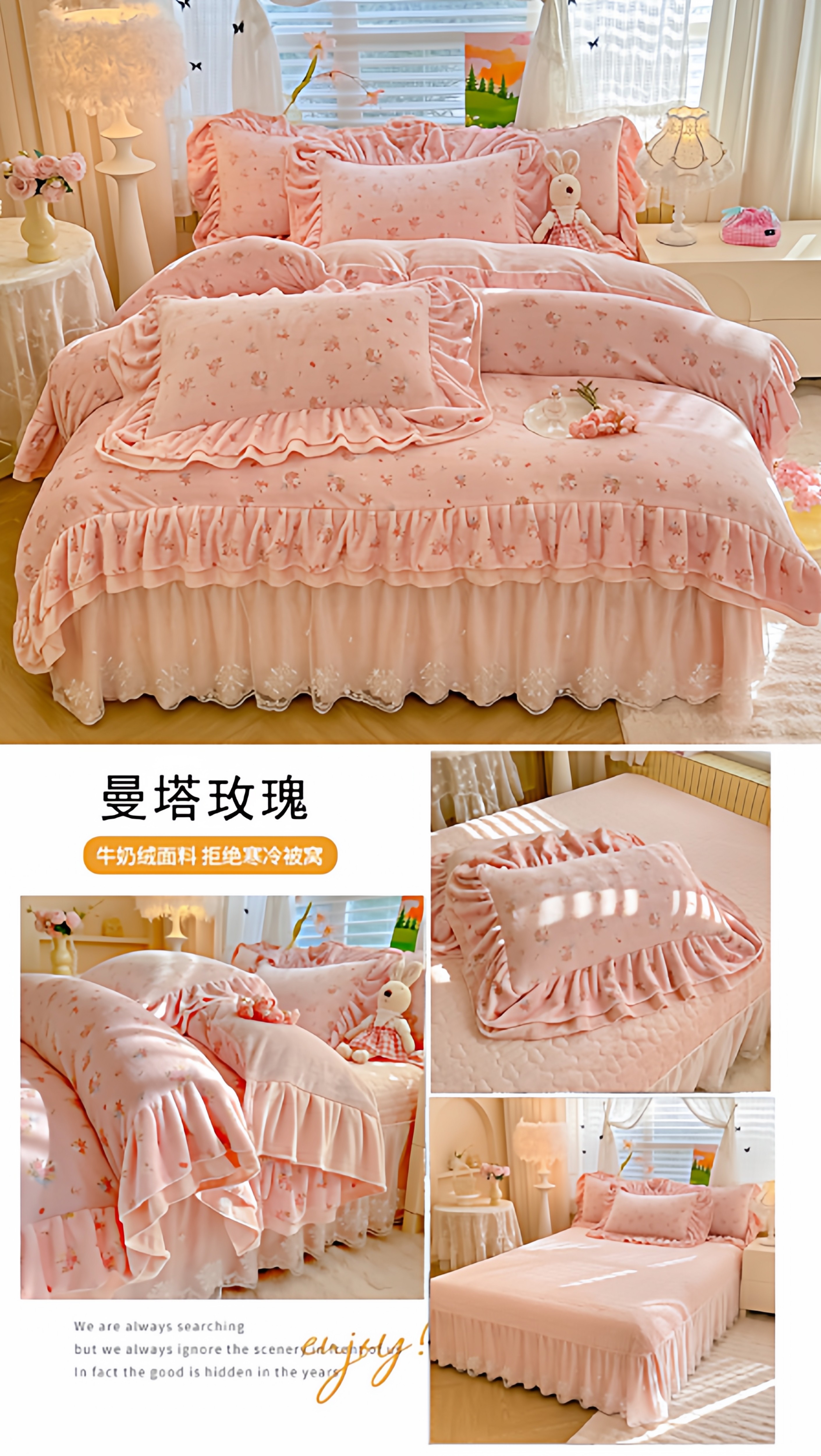 小紅書推薦冬季公主風雙面牛奶絨床蓋四件套A類加厚保暖花邊被套