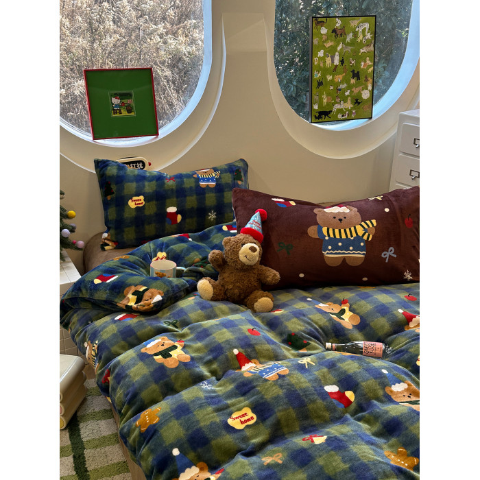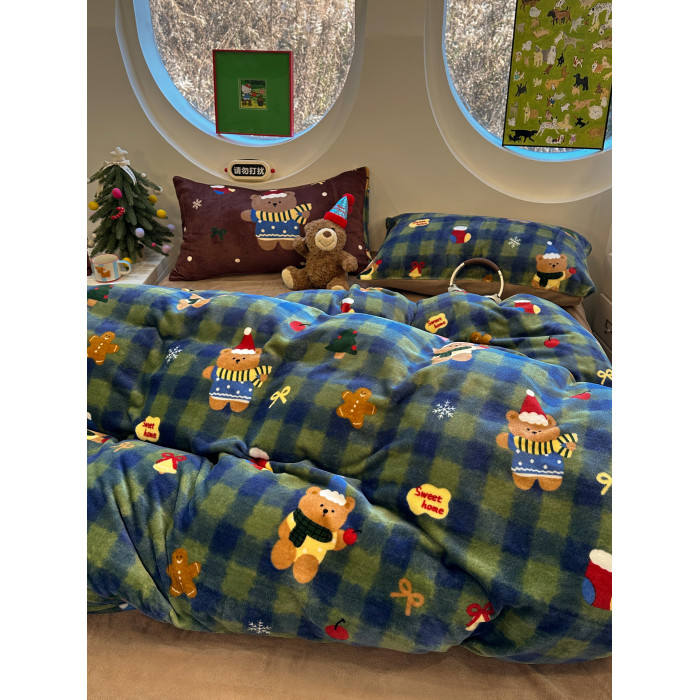 聖誕ins牛奶絨床上四件套冬季加厚毛絨被套床單人三件套保暖床品4