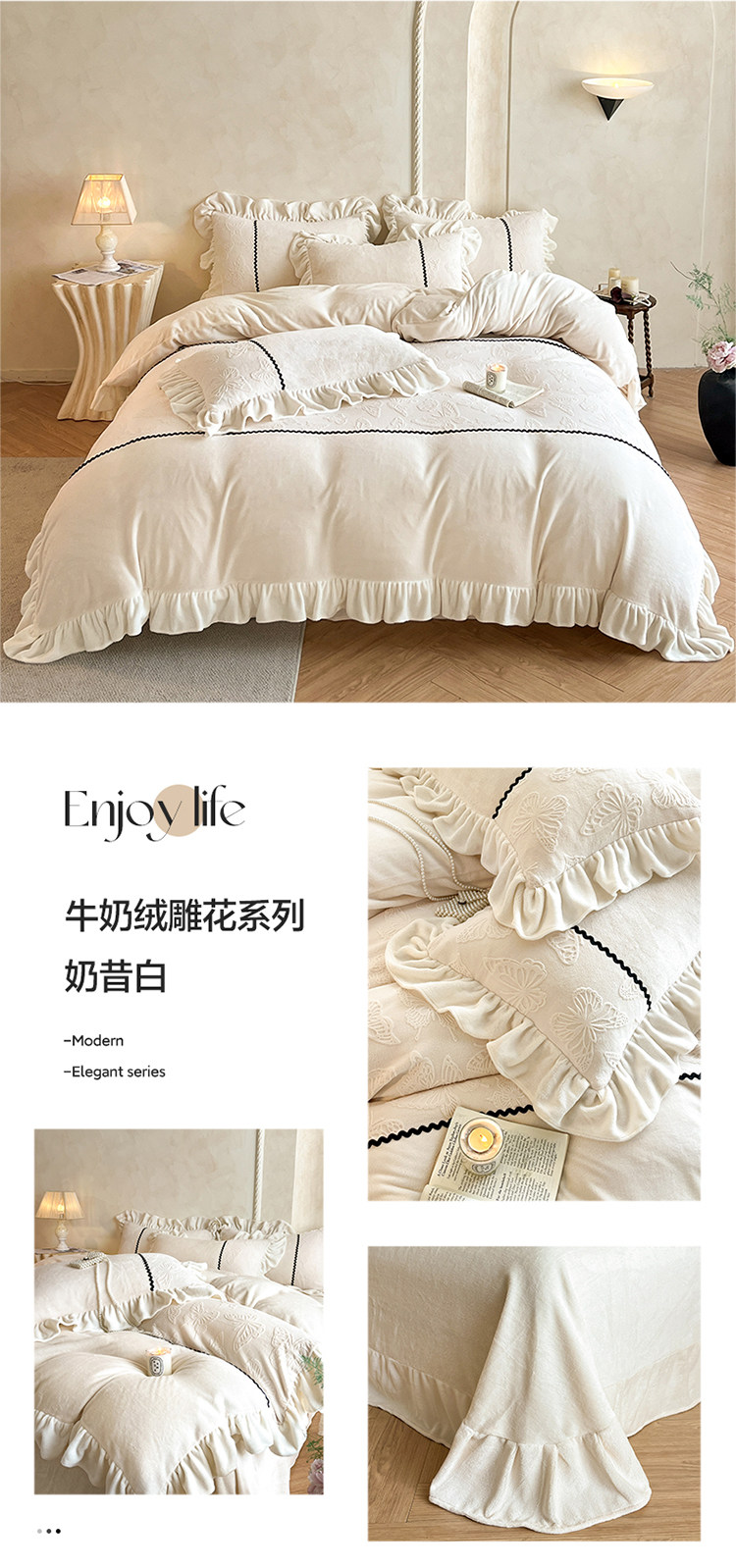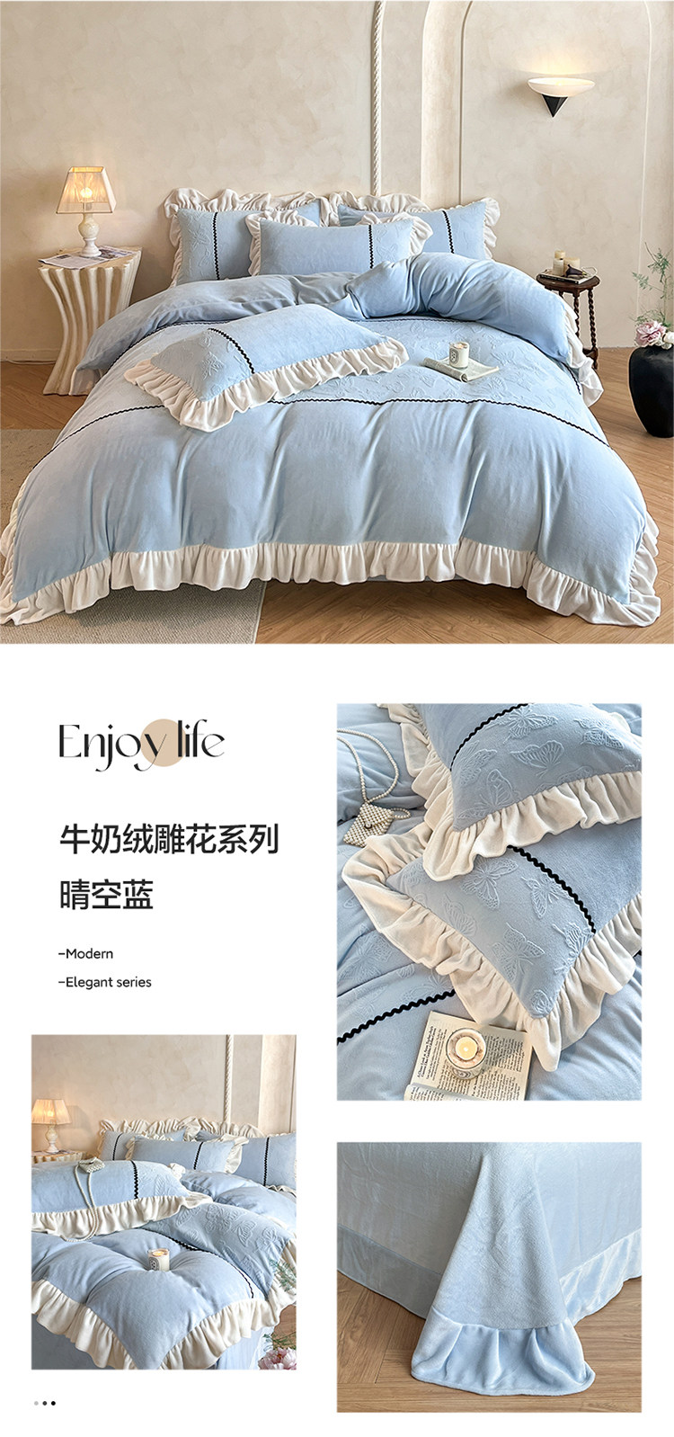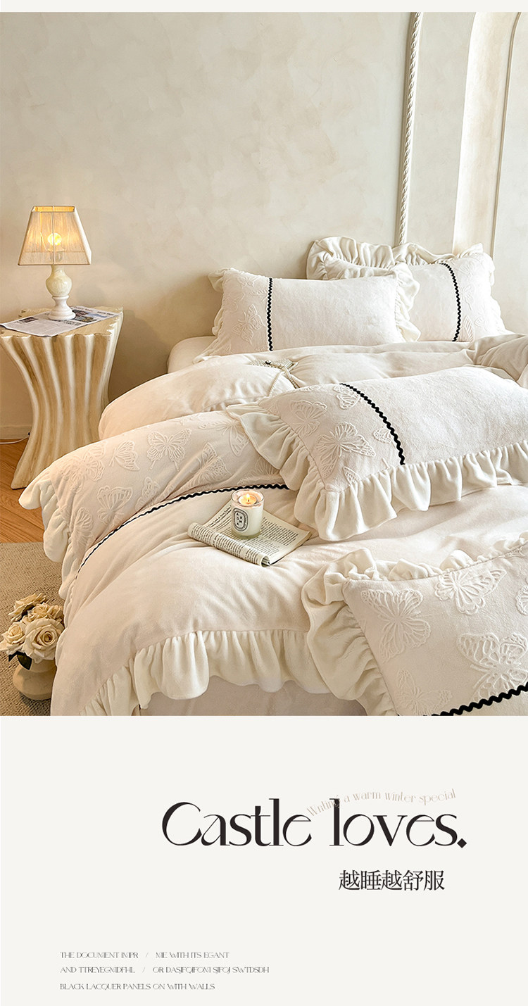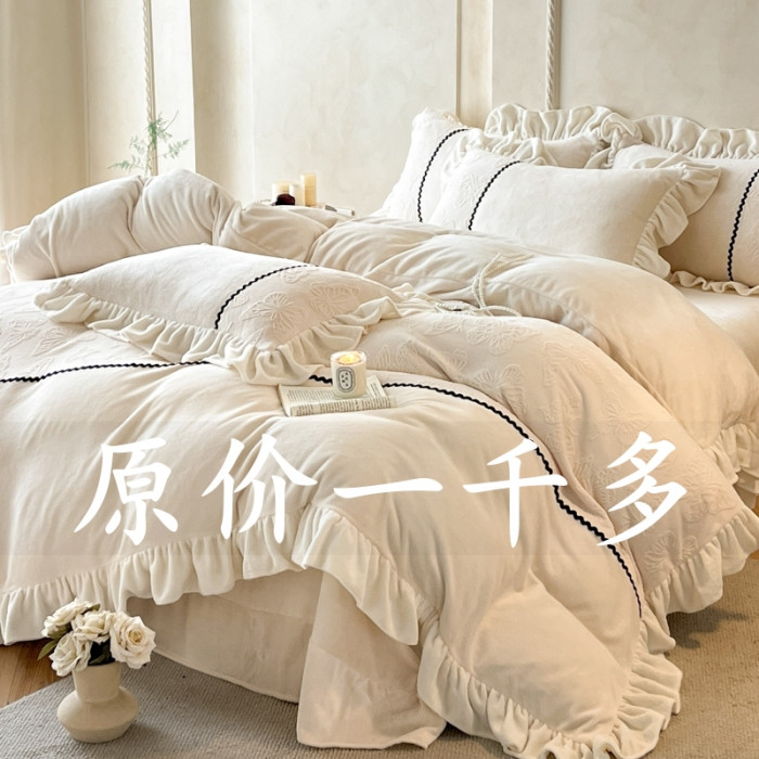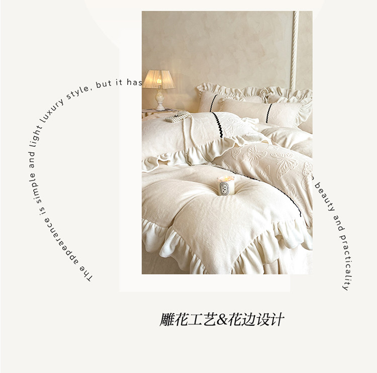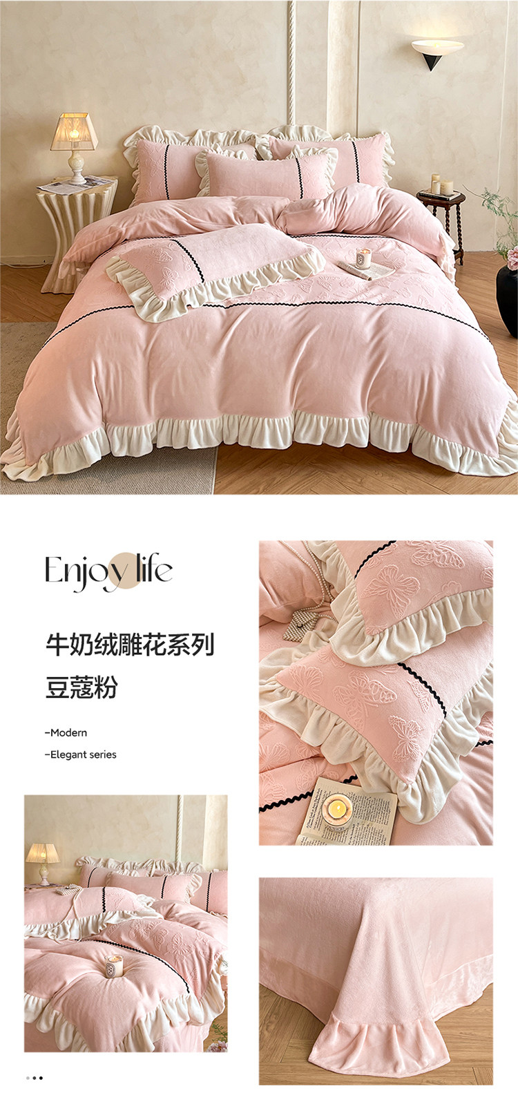 款冬季公主風牛奶絨床上四件套加絨加厚珊瑚絨保暖床單被套冬
