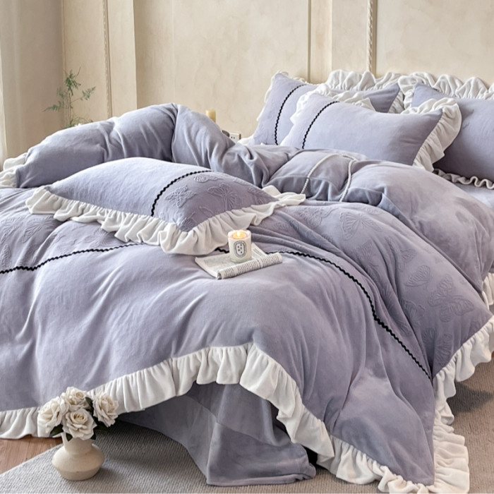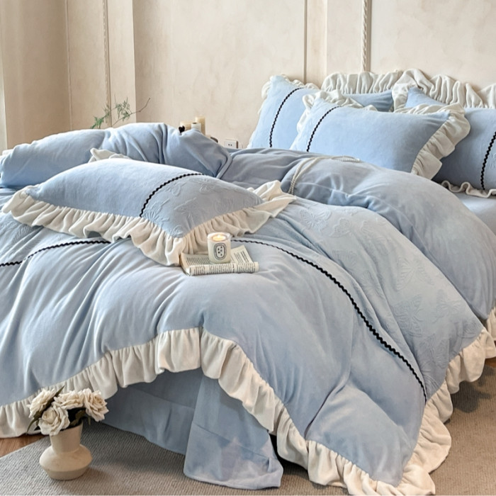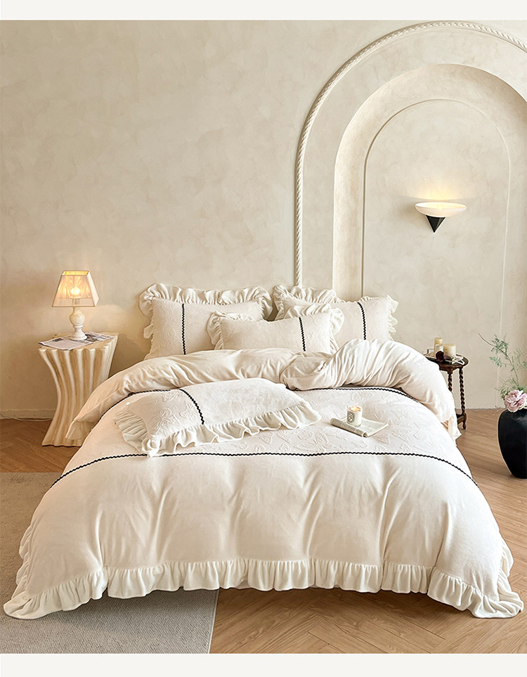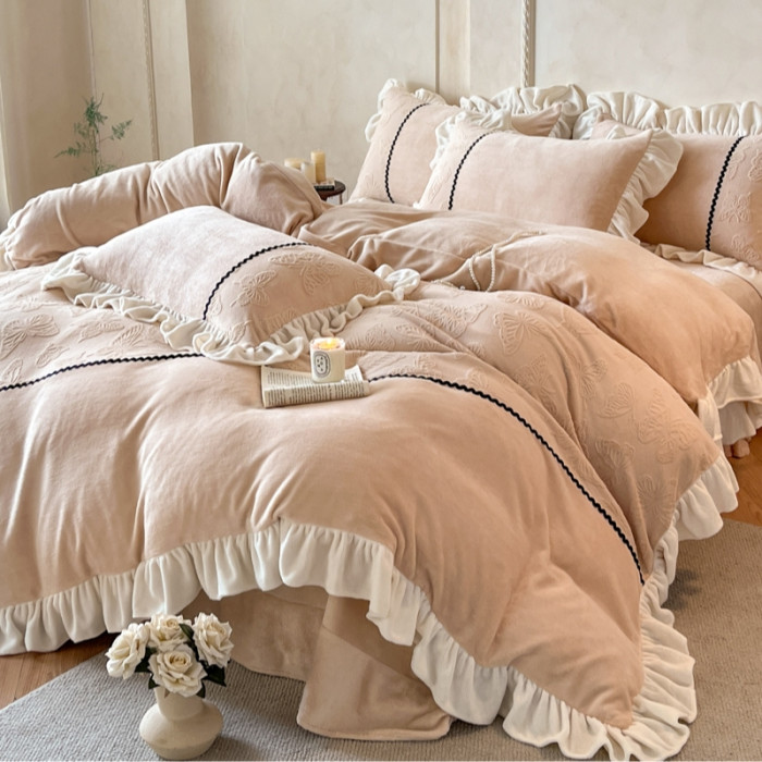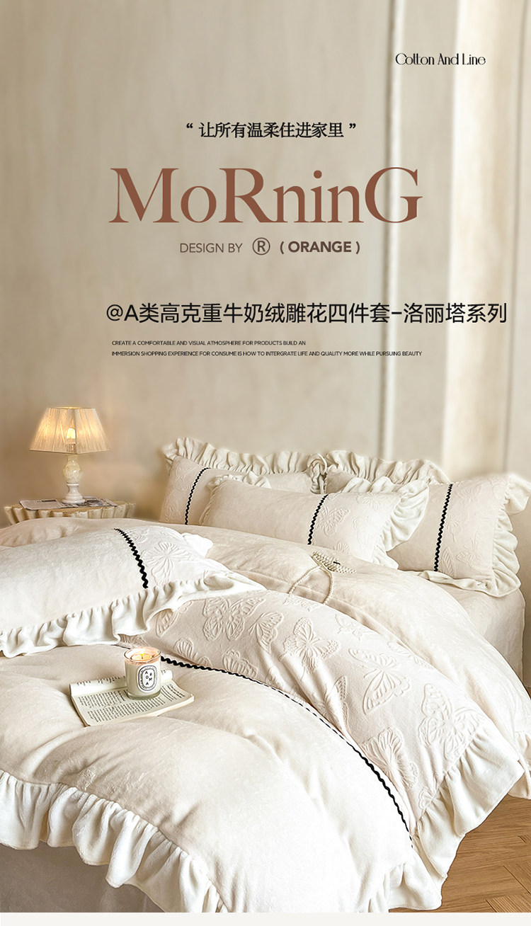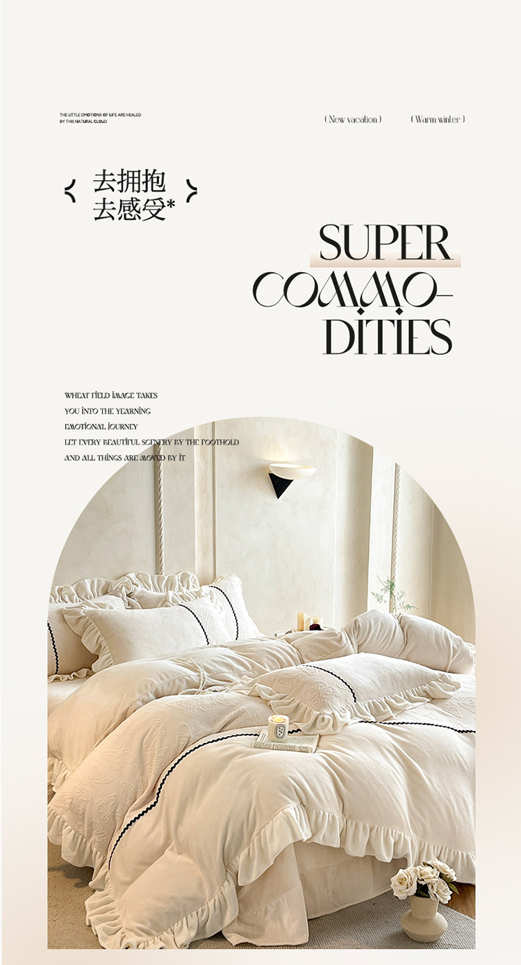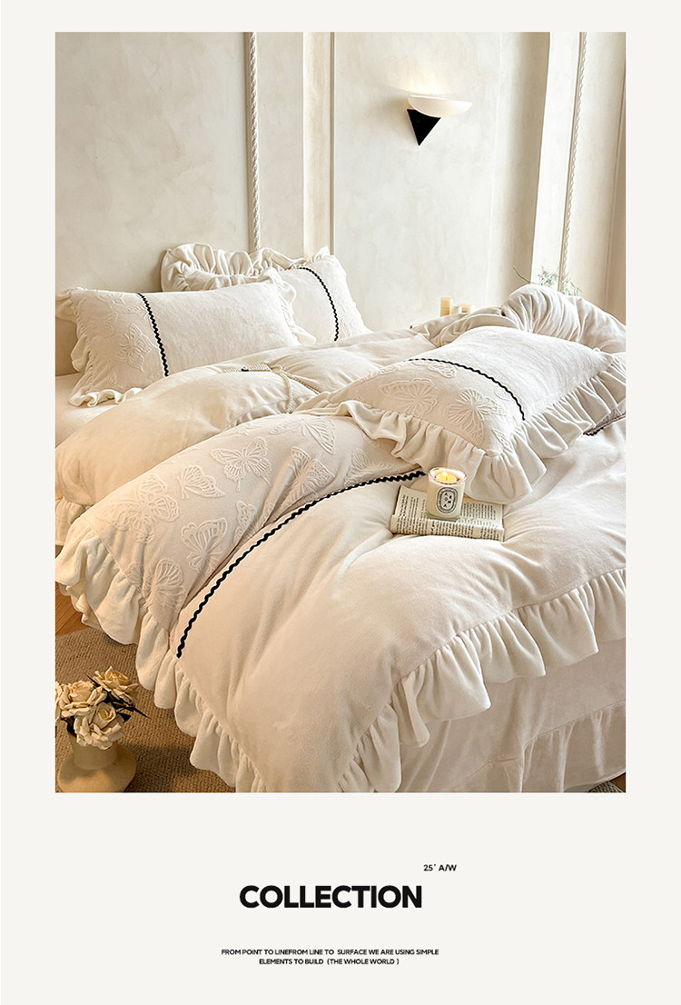 款冬季公主風牛奶絨床上四件套加絨加厚珊瑚絨保暖床單被套冬