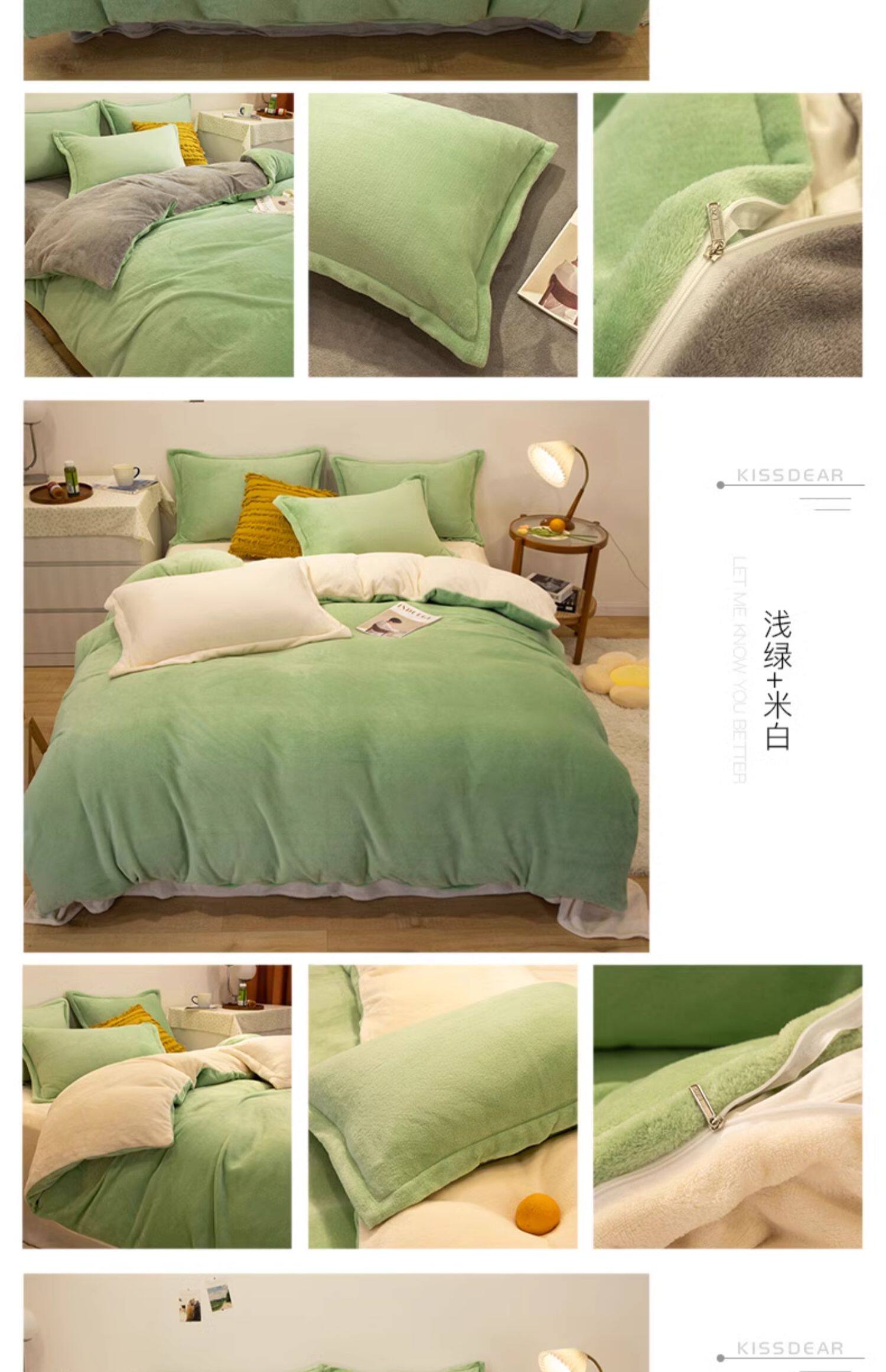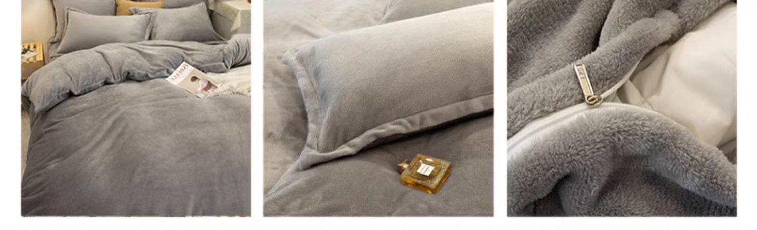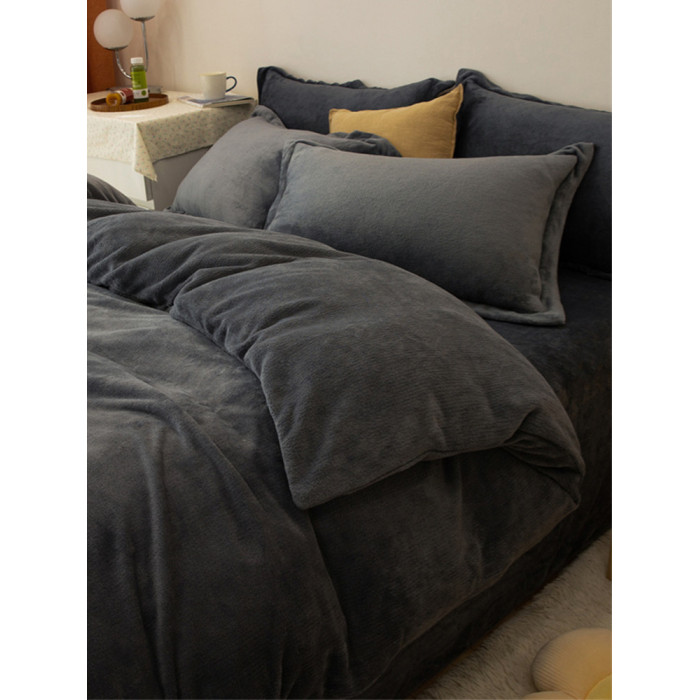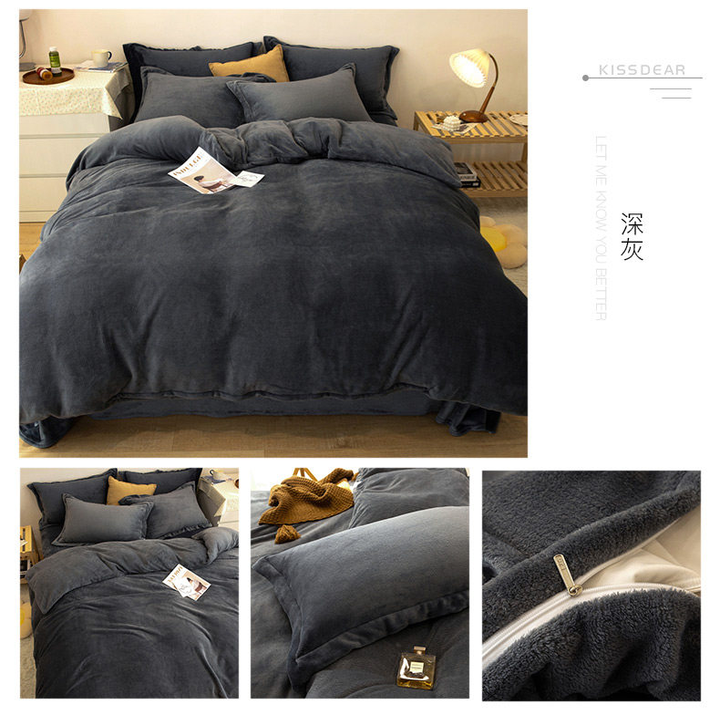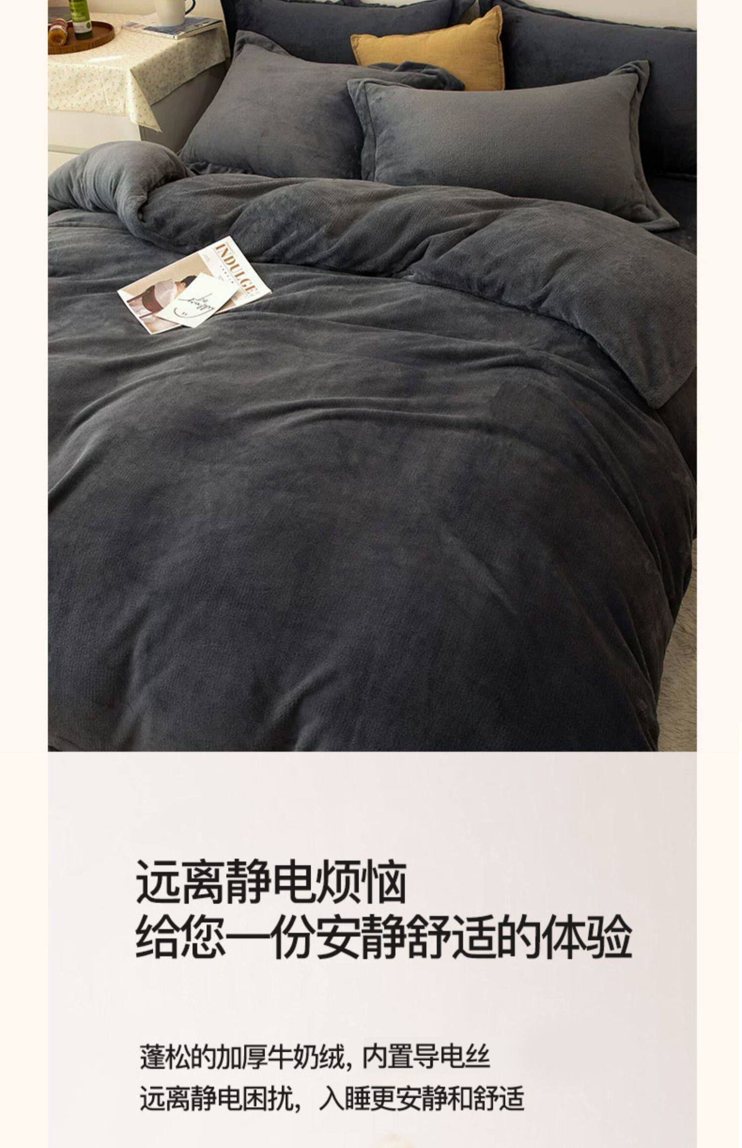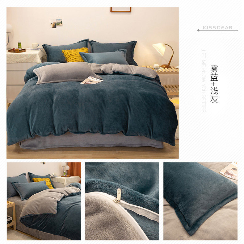 加厚牛奶絨床上四件套秋冬季珊瑚絨法蘭加絨床單被套罩簡約三件套