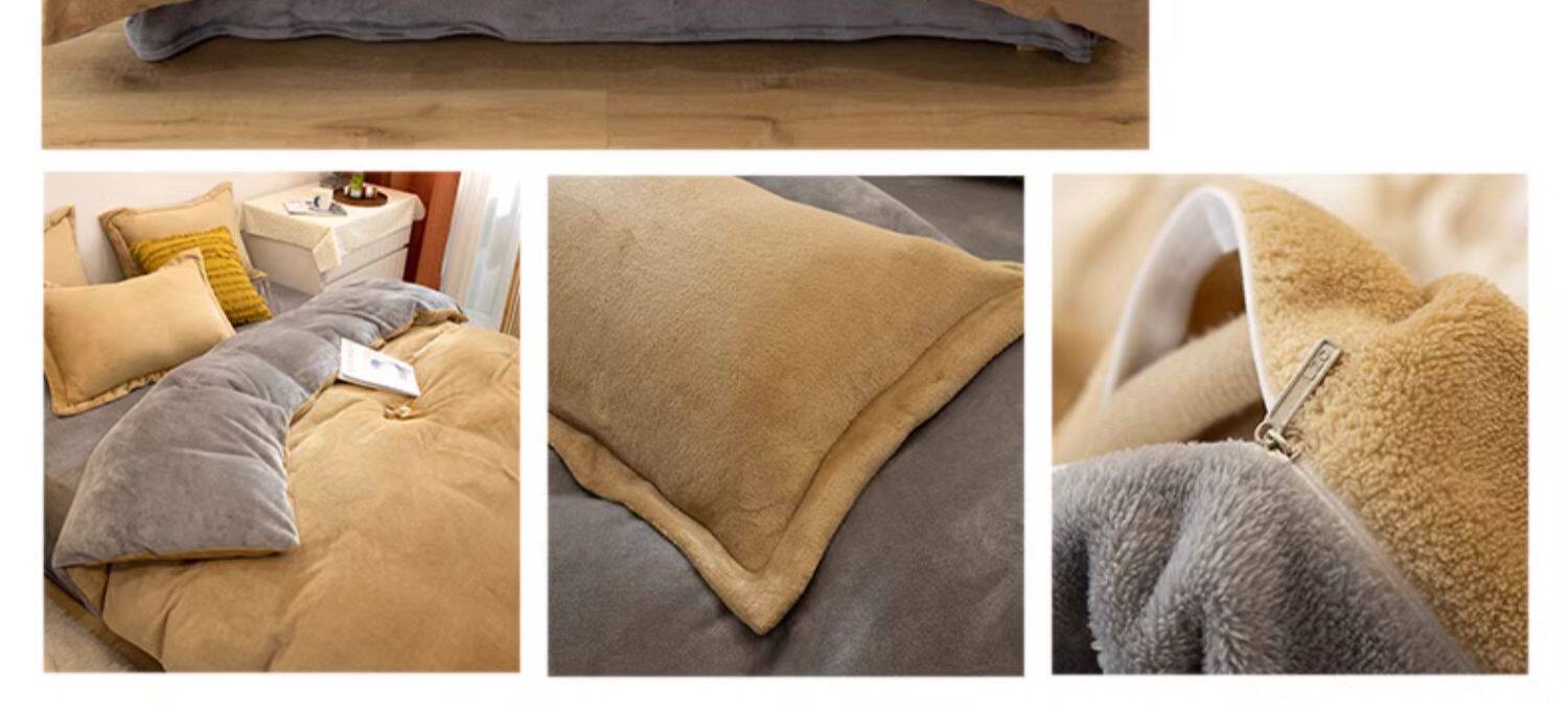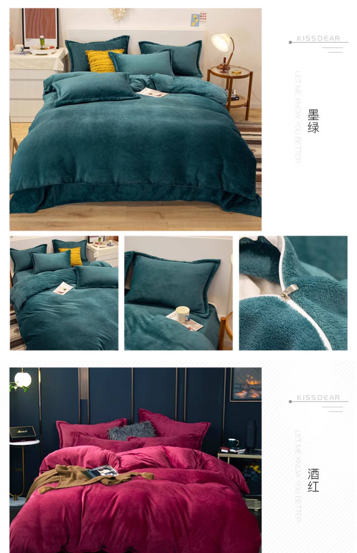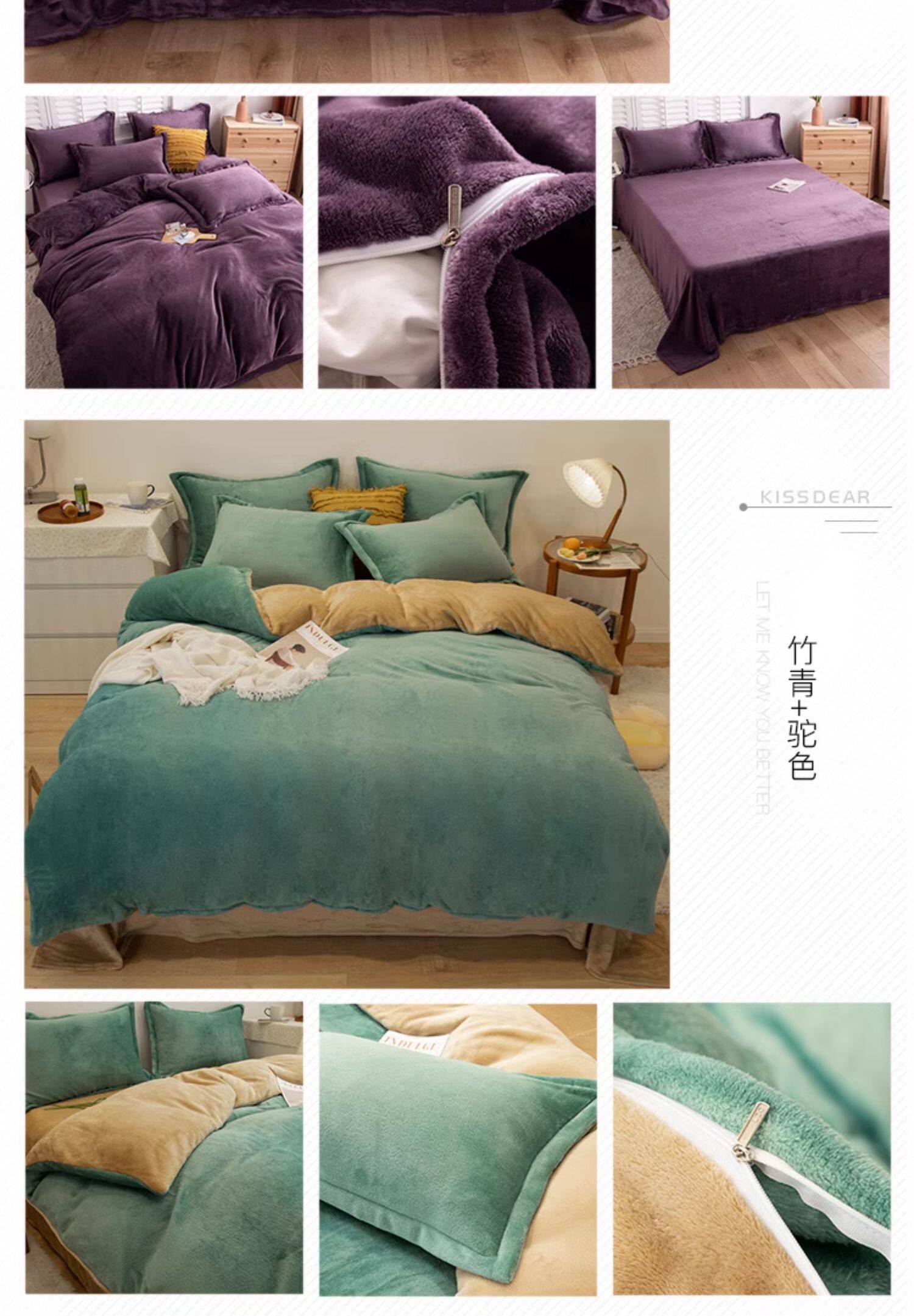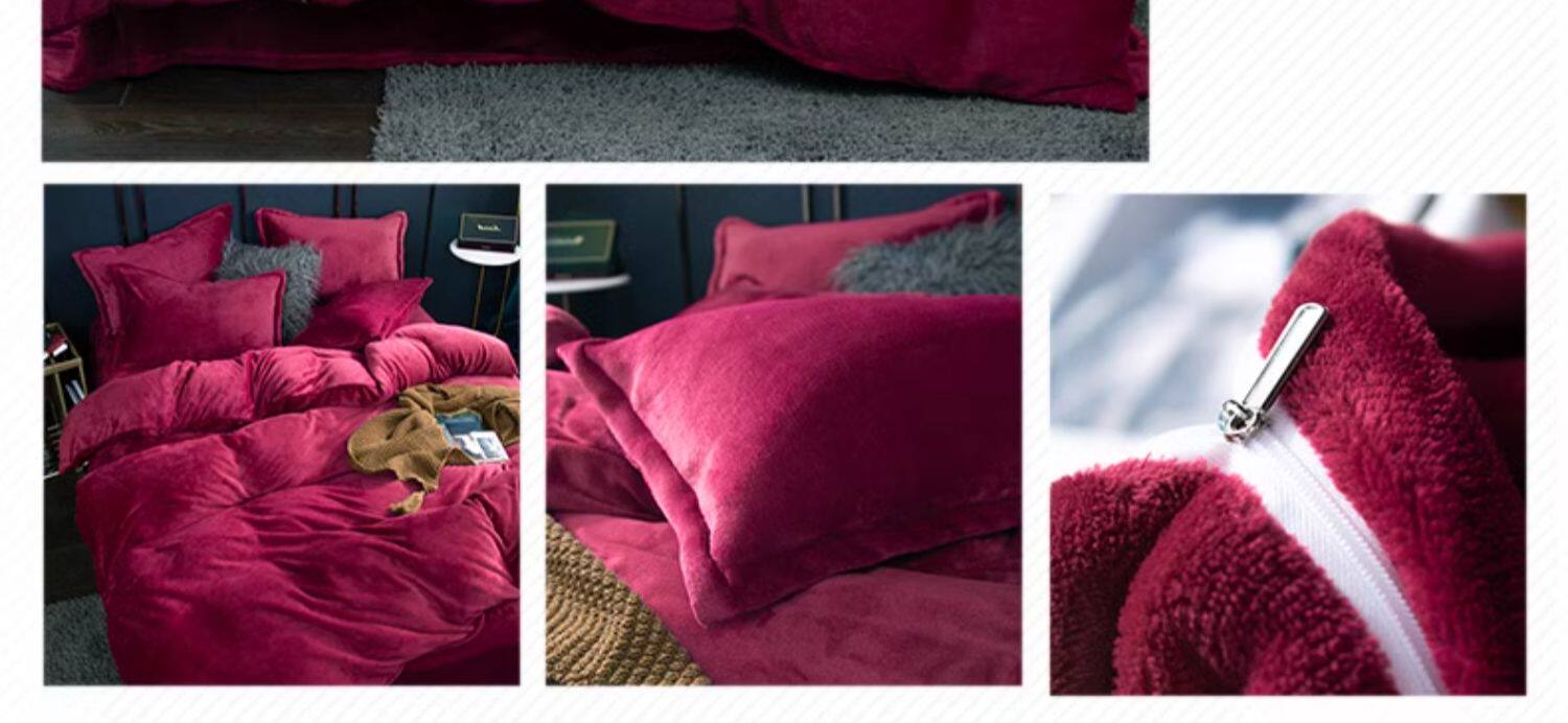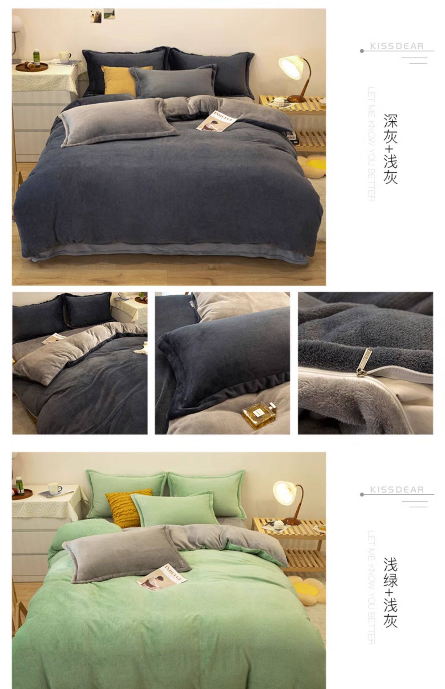 加厚牛奶絨床上四件套秋冬季珊瑚絨法蘭加絨床單被套罩簡約三件套