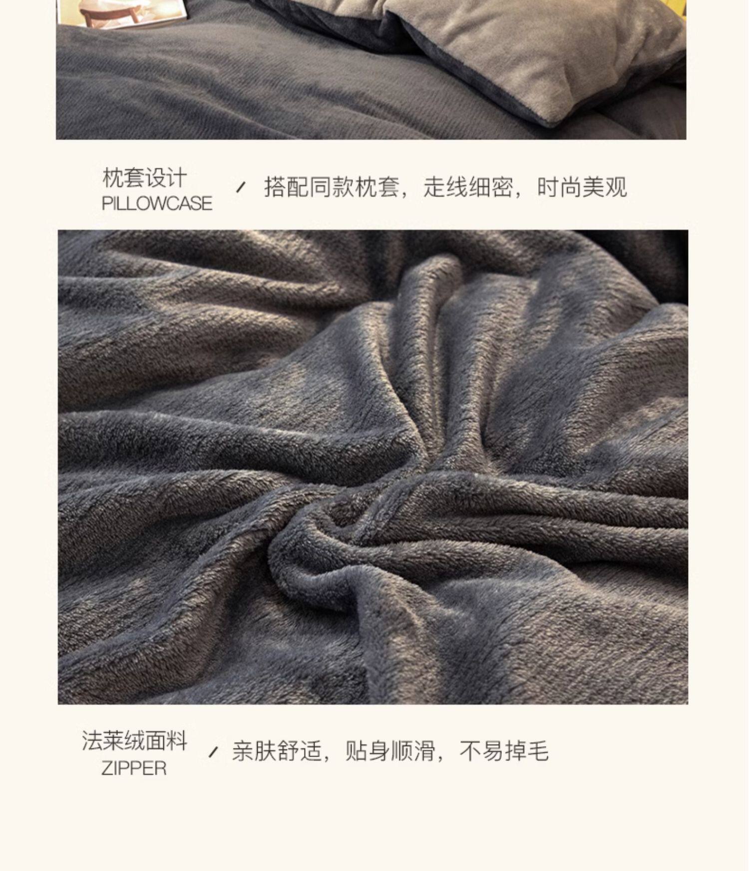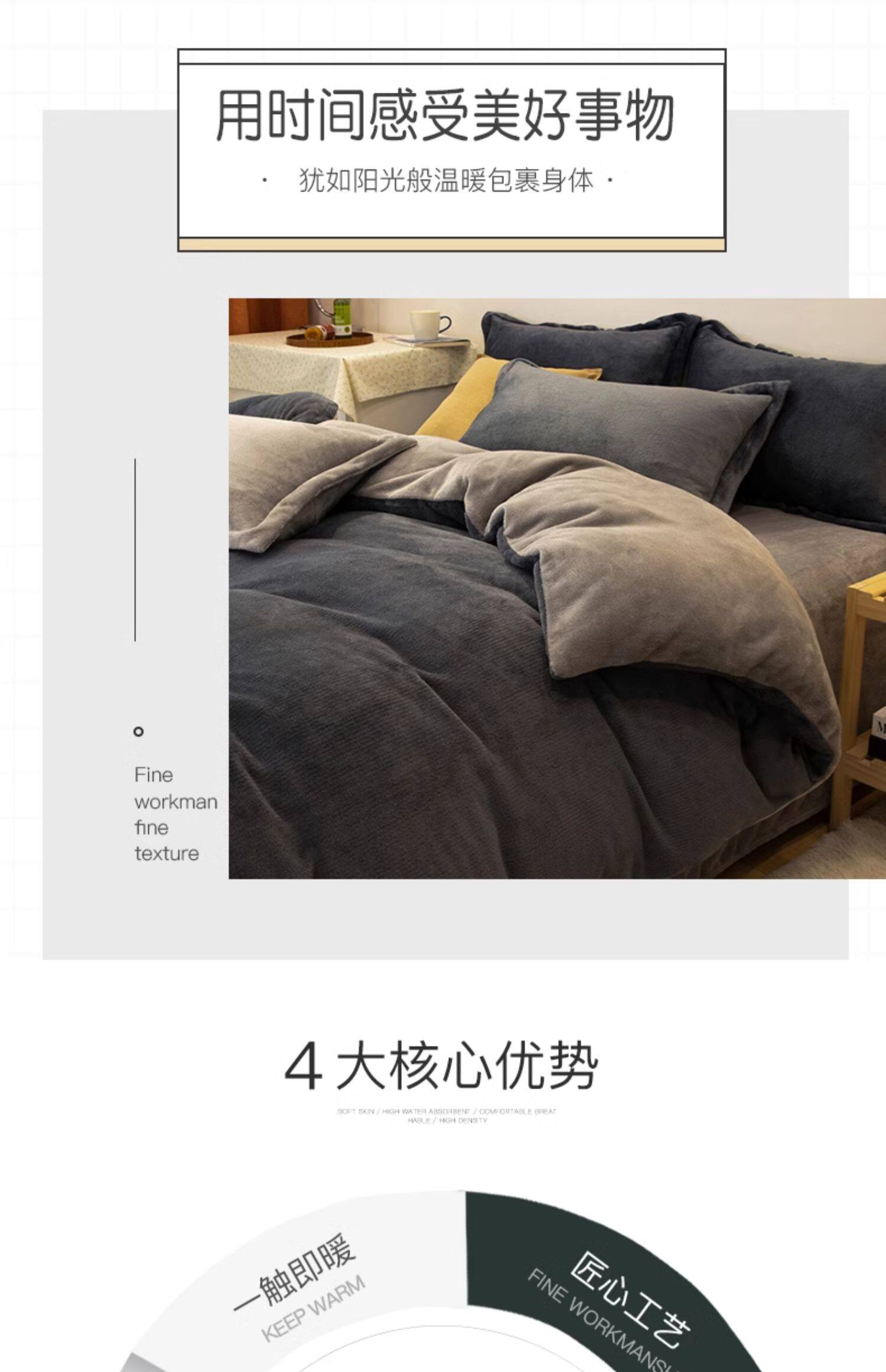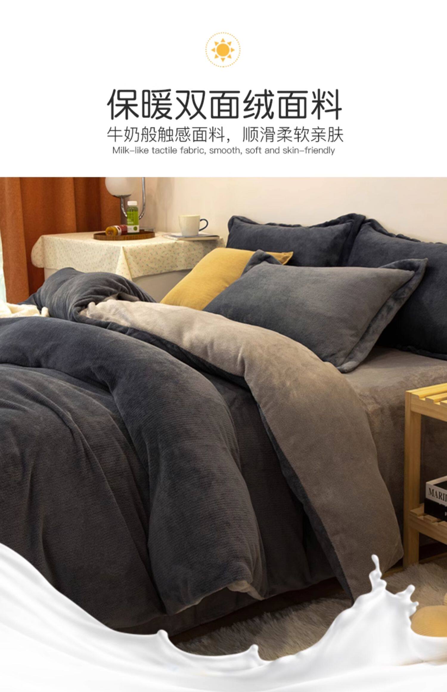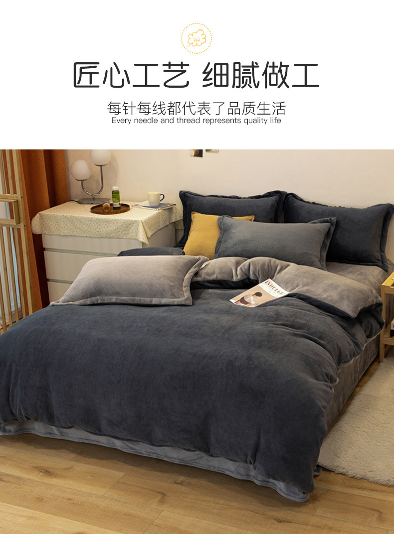 冬季輕奢牛奶絨床上四件套珊瑚絨加絨被套法蘭雙面絨床單三件套4