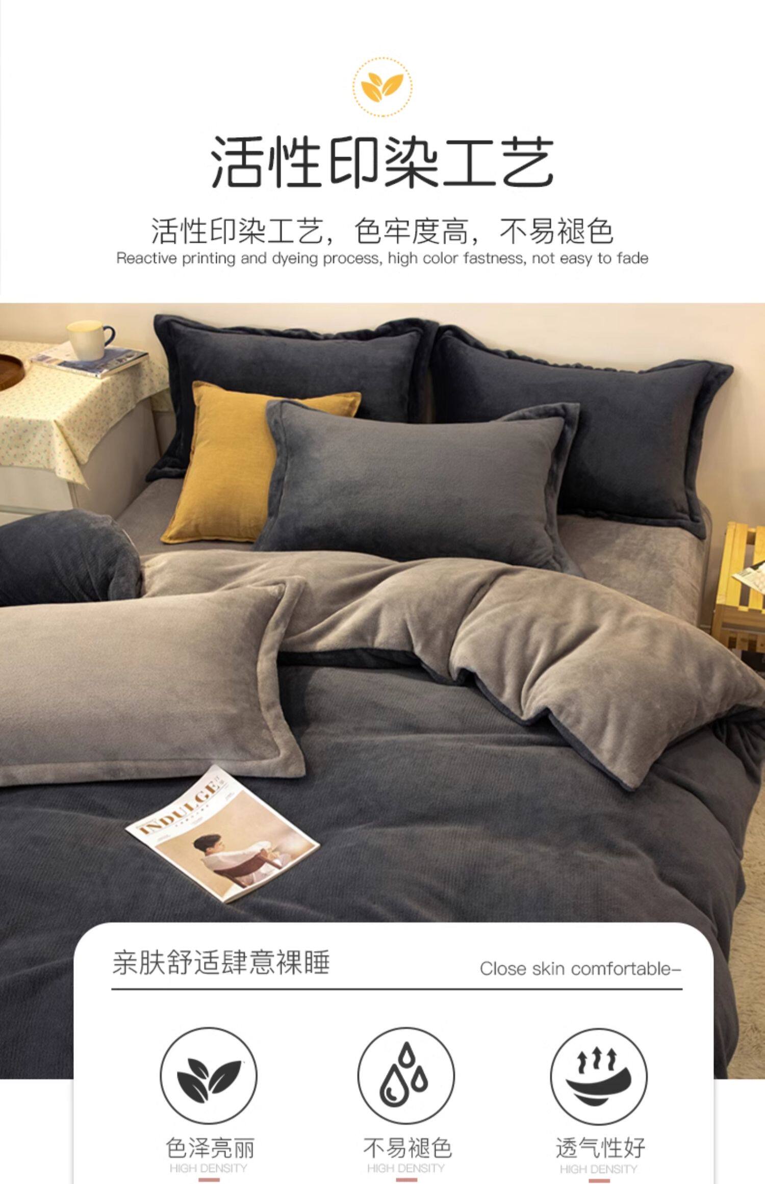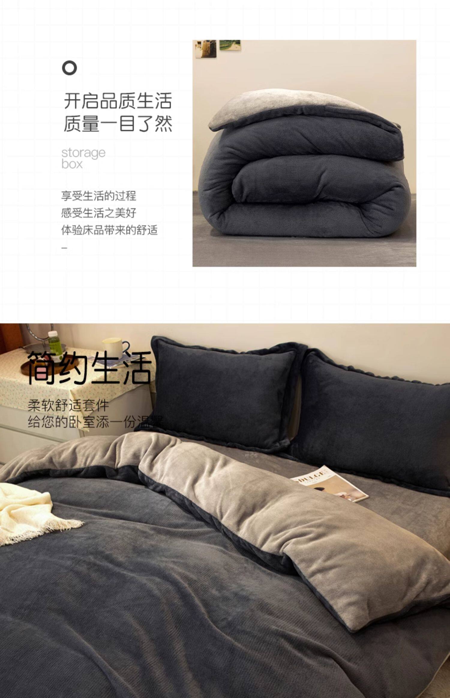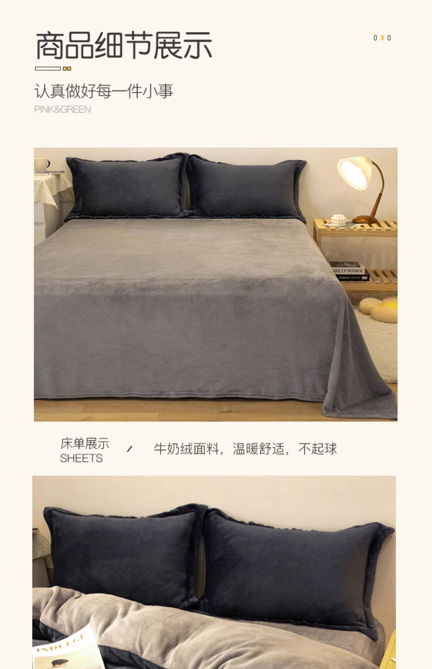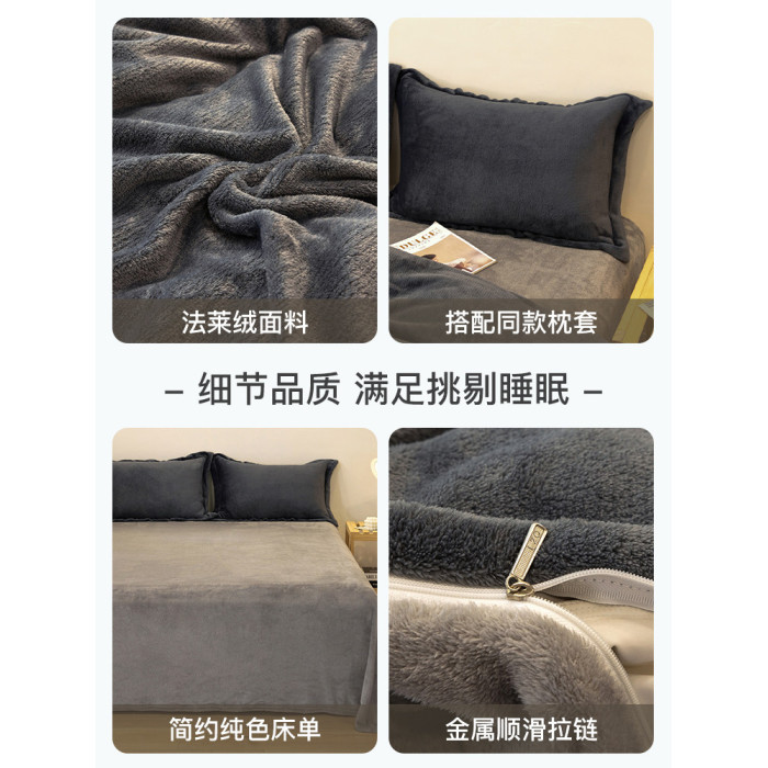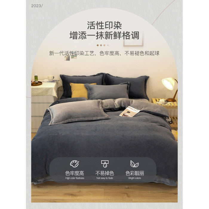 冬季輕奢牛奶絨床上四件套珊瑚絨加絨被套法蘭雙面絨床單三件套4