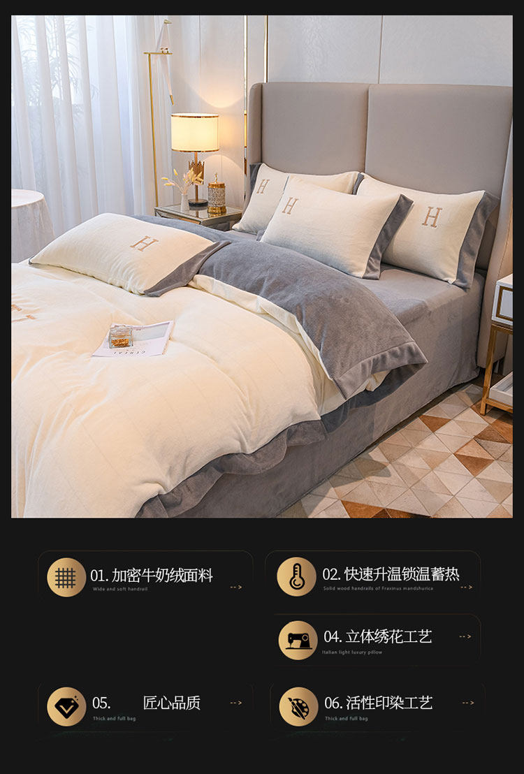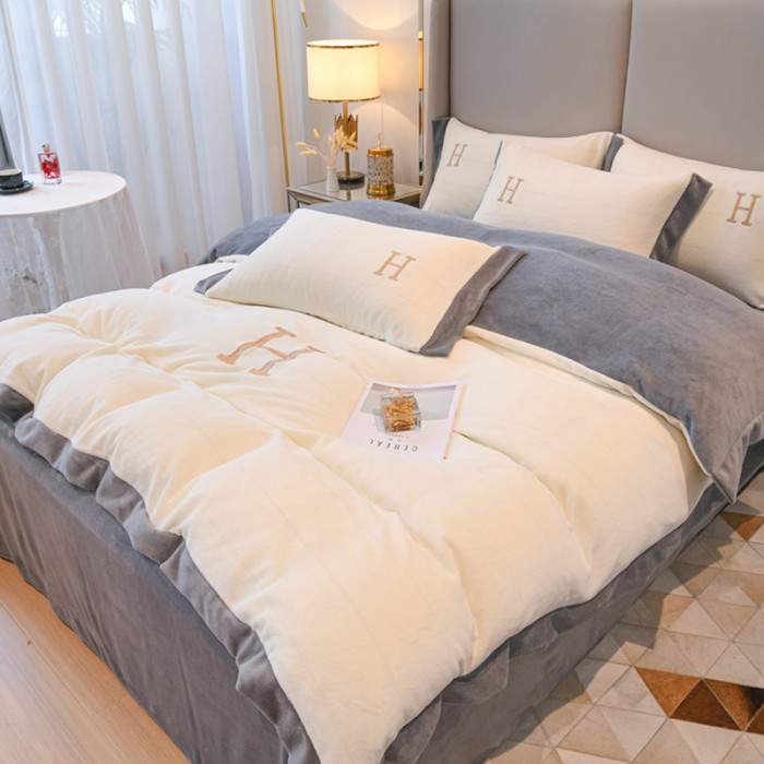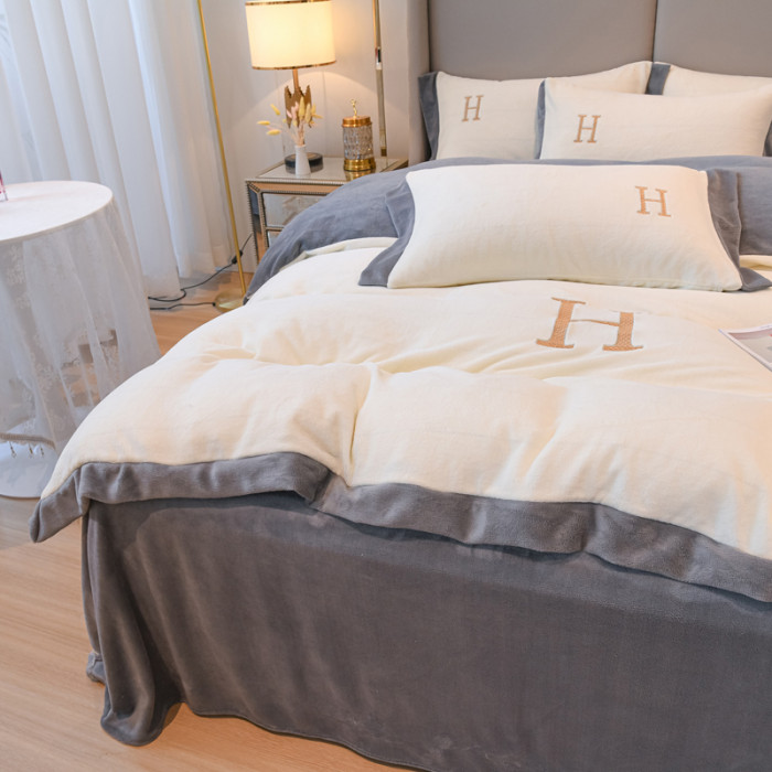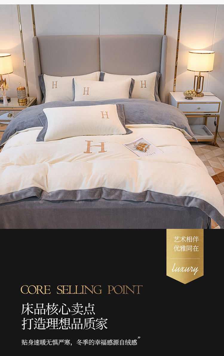 出口歐洲A類母嬰級牛奶絨床上四件套加厚珊瑚絨保暖被套加絨冬季