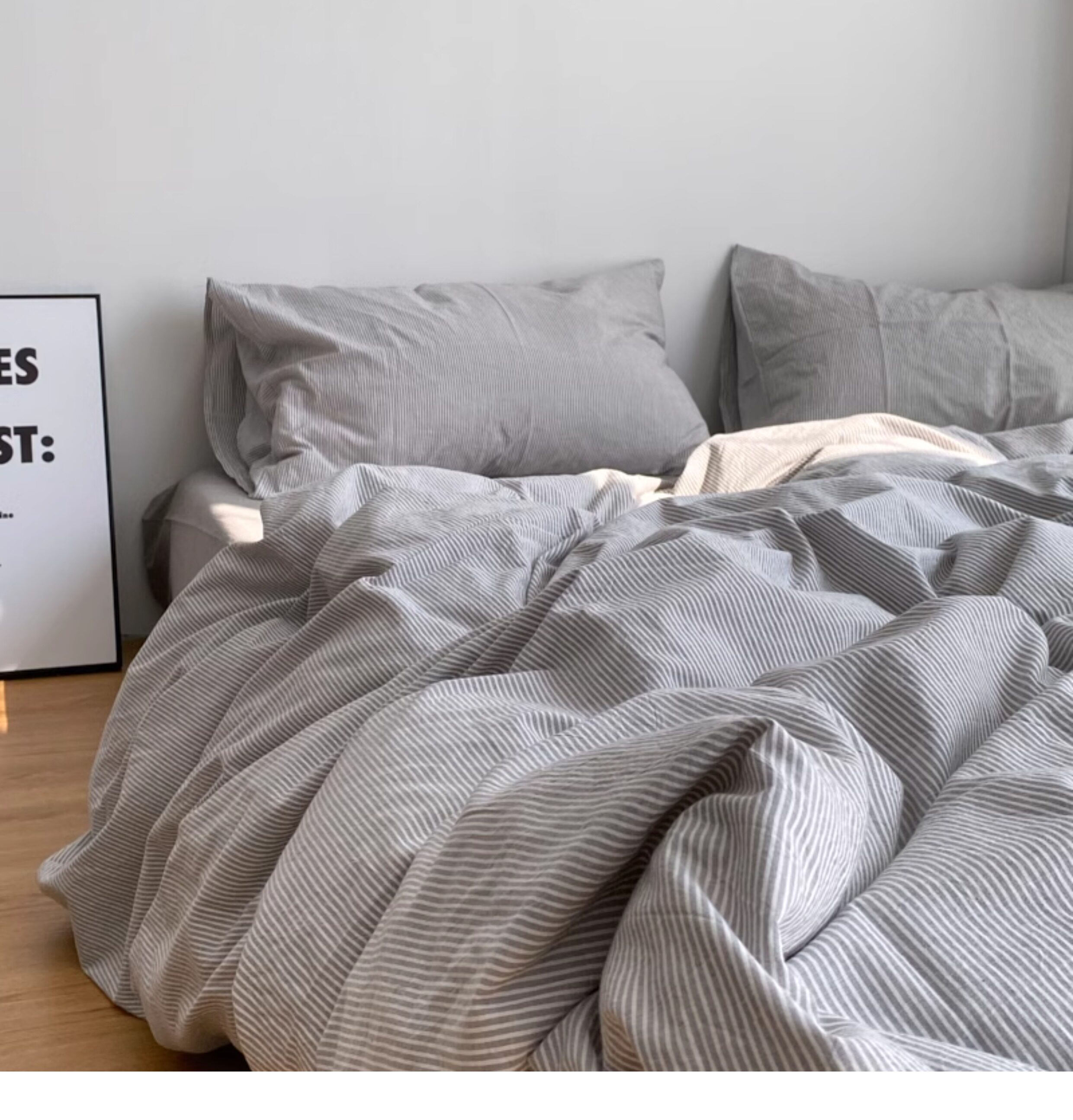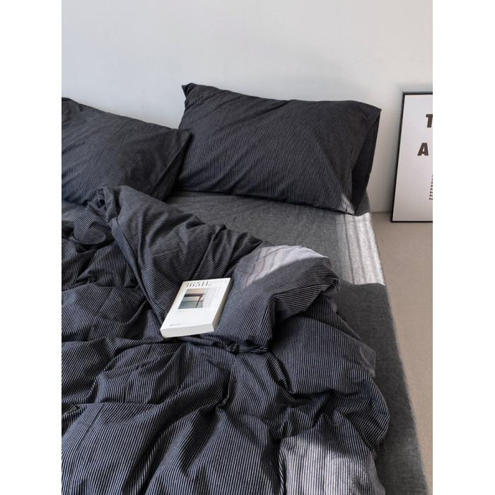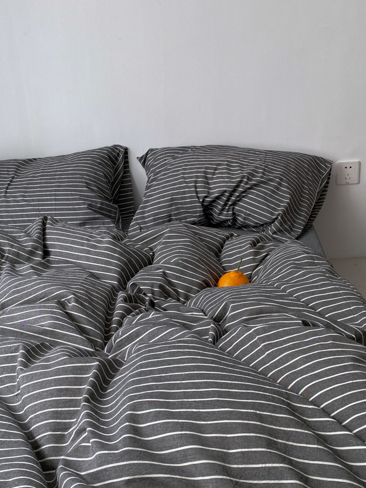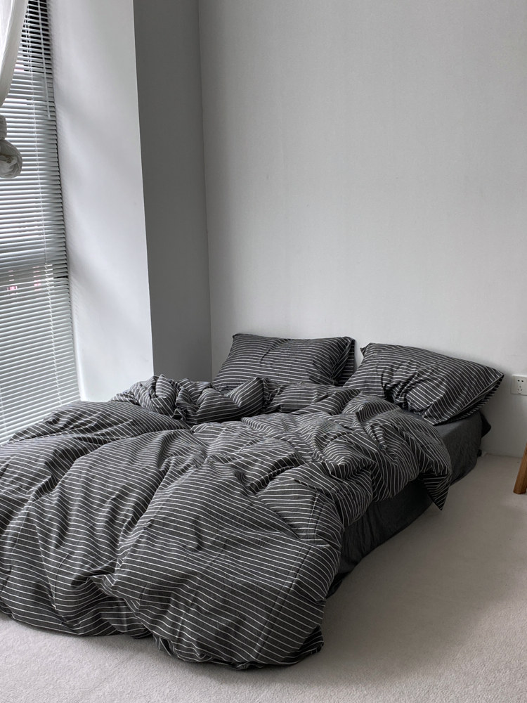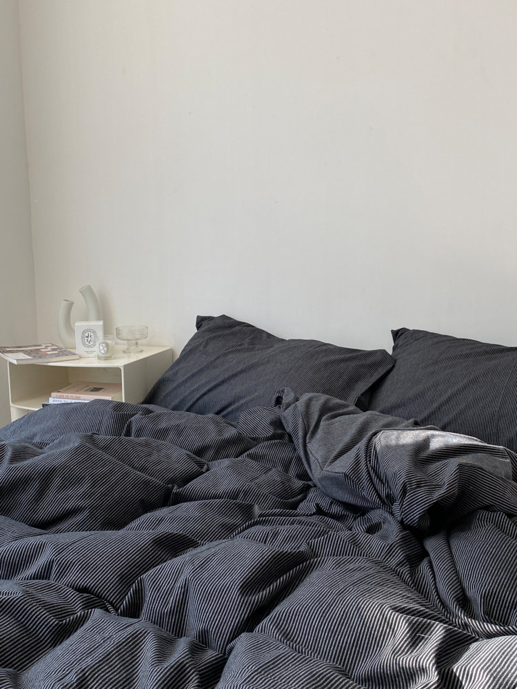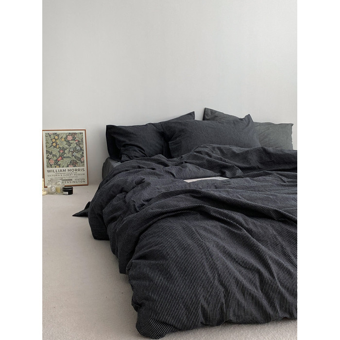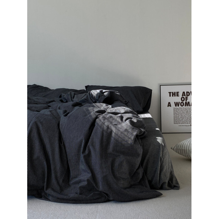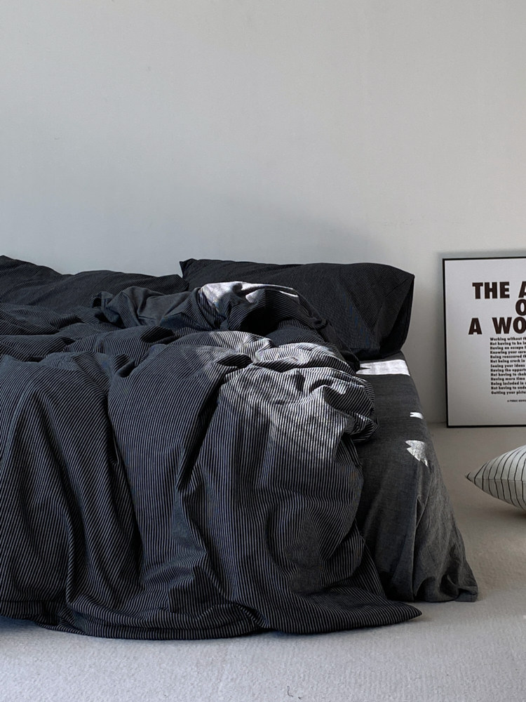 VEINSTUDIO高級冷淡風黑色條紋四件套純棉全棉床單被套床上用品