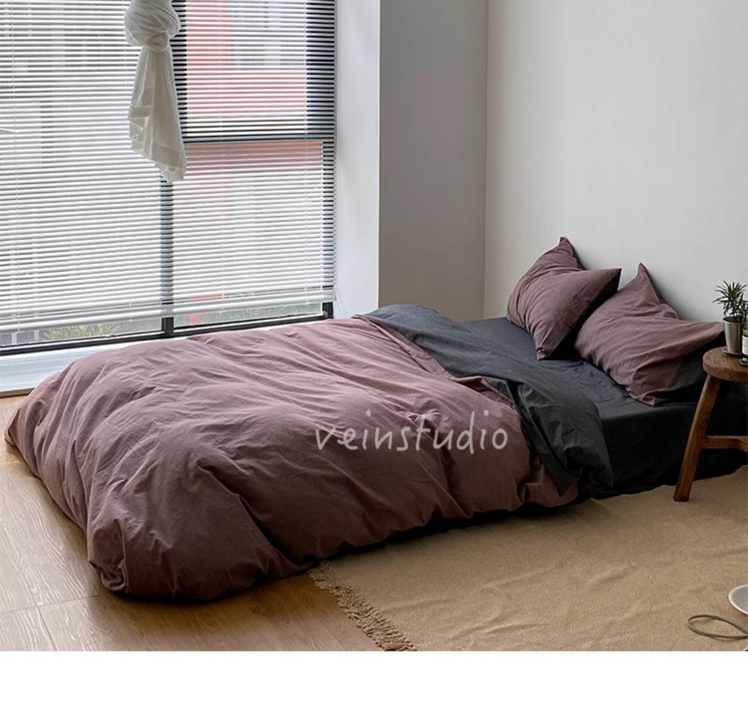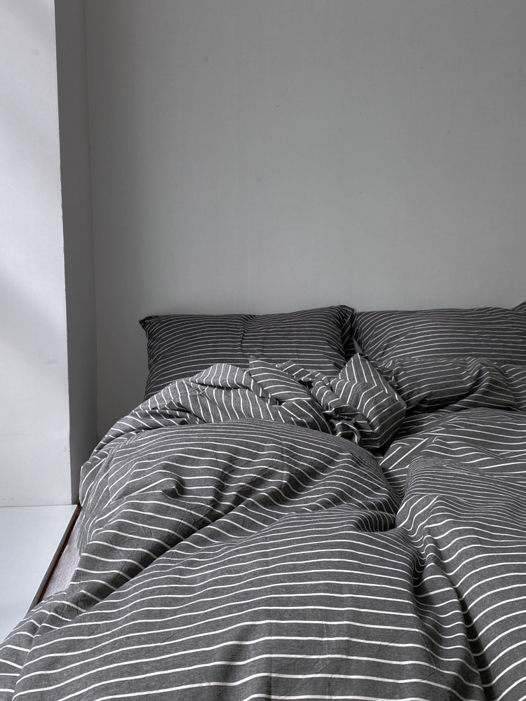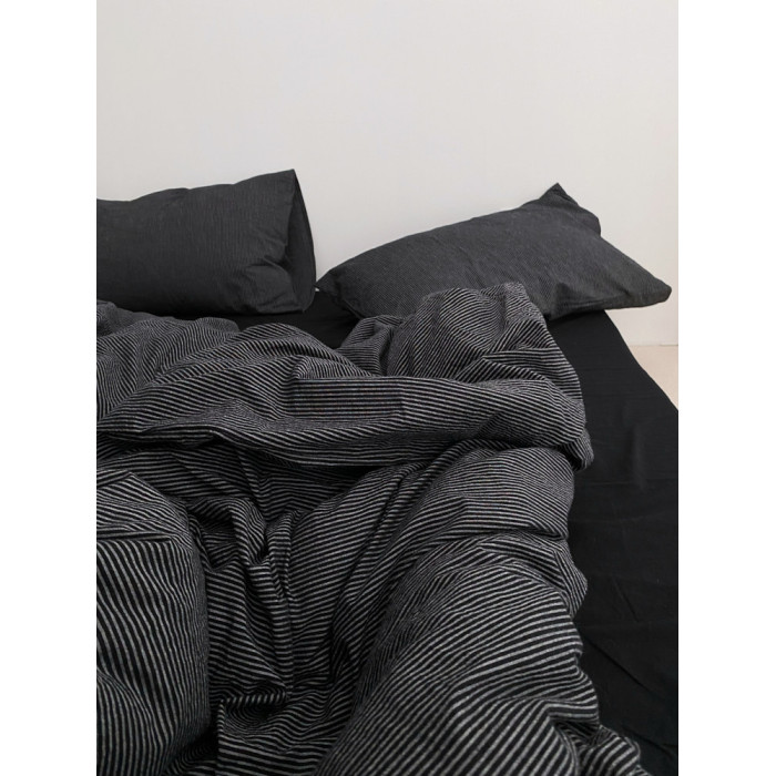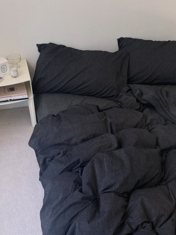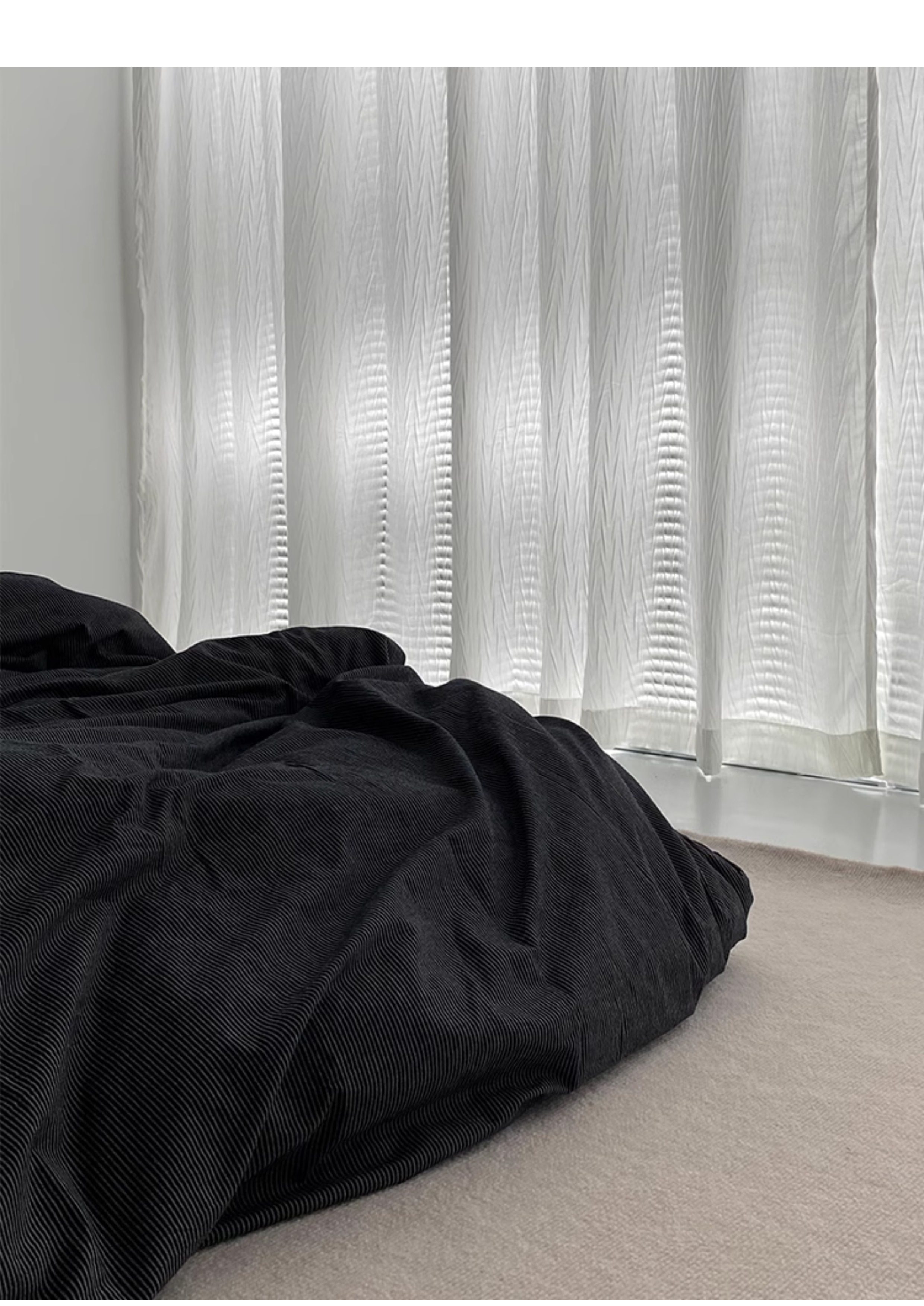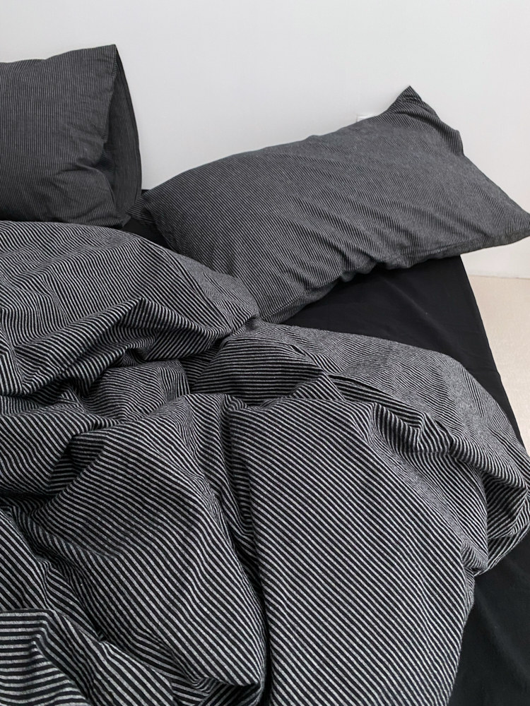 VEINSTUDIO高級冷淡風黑色條紋四件套純棉全棉床單被套床上用品