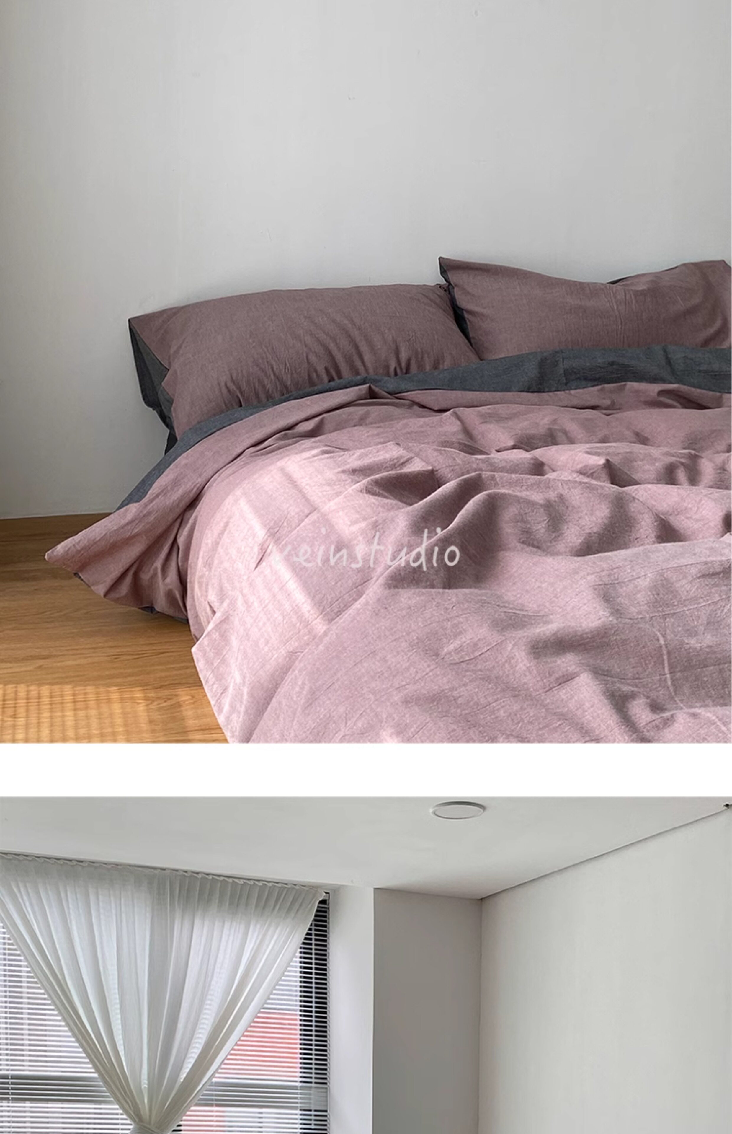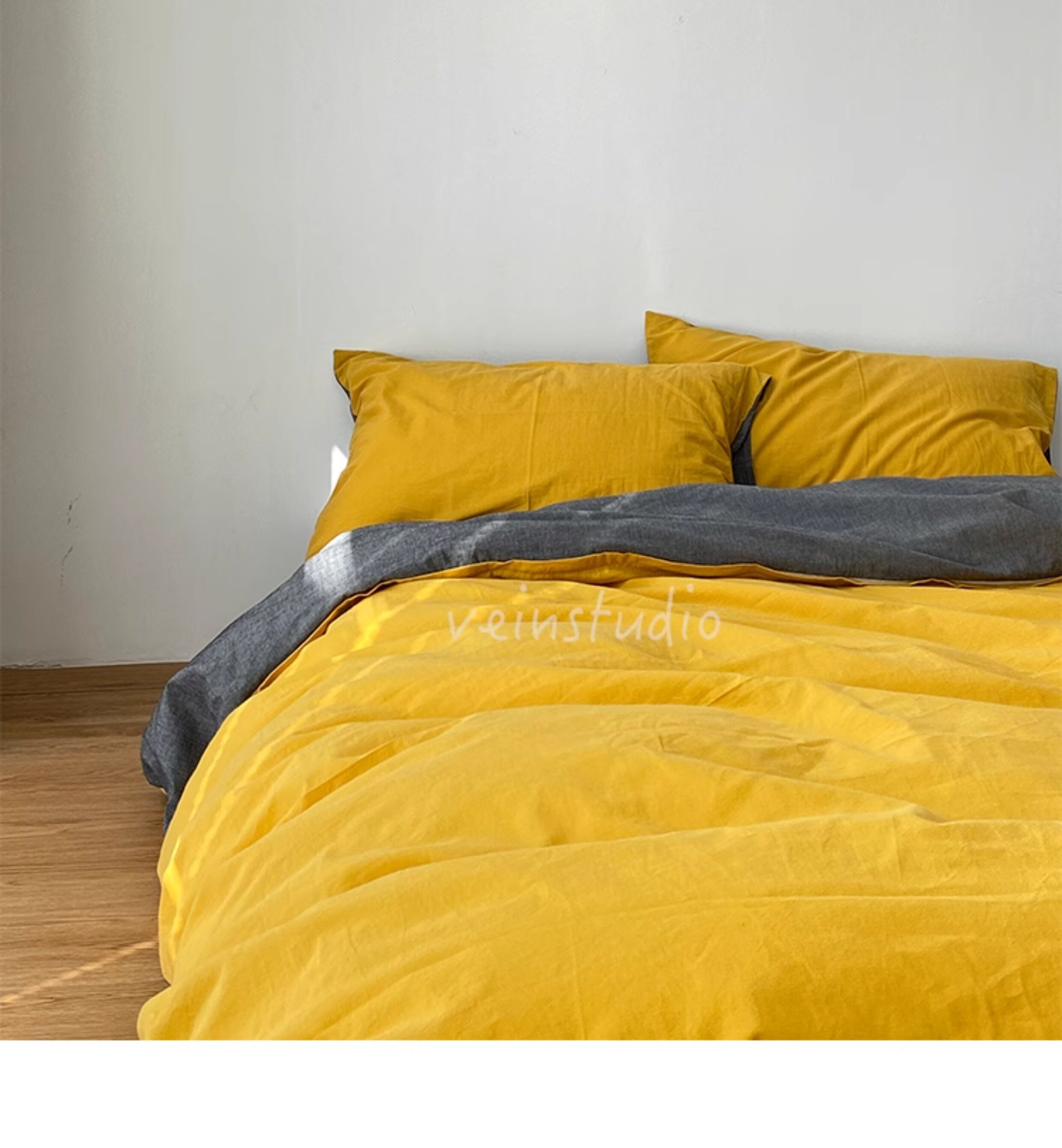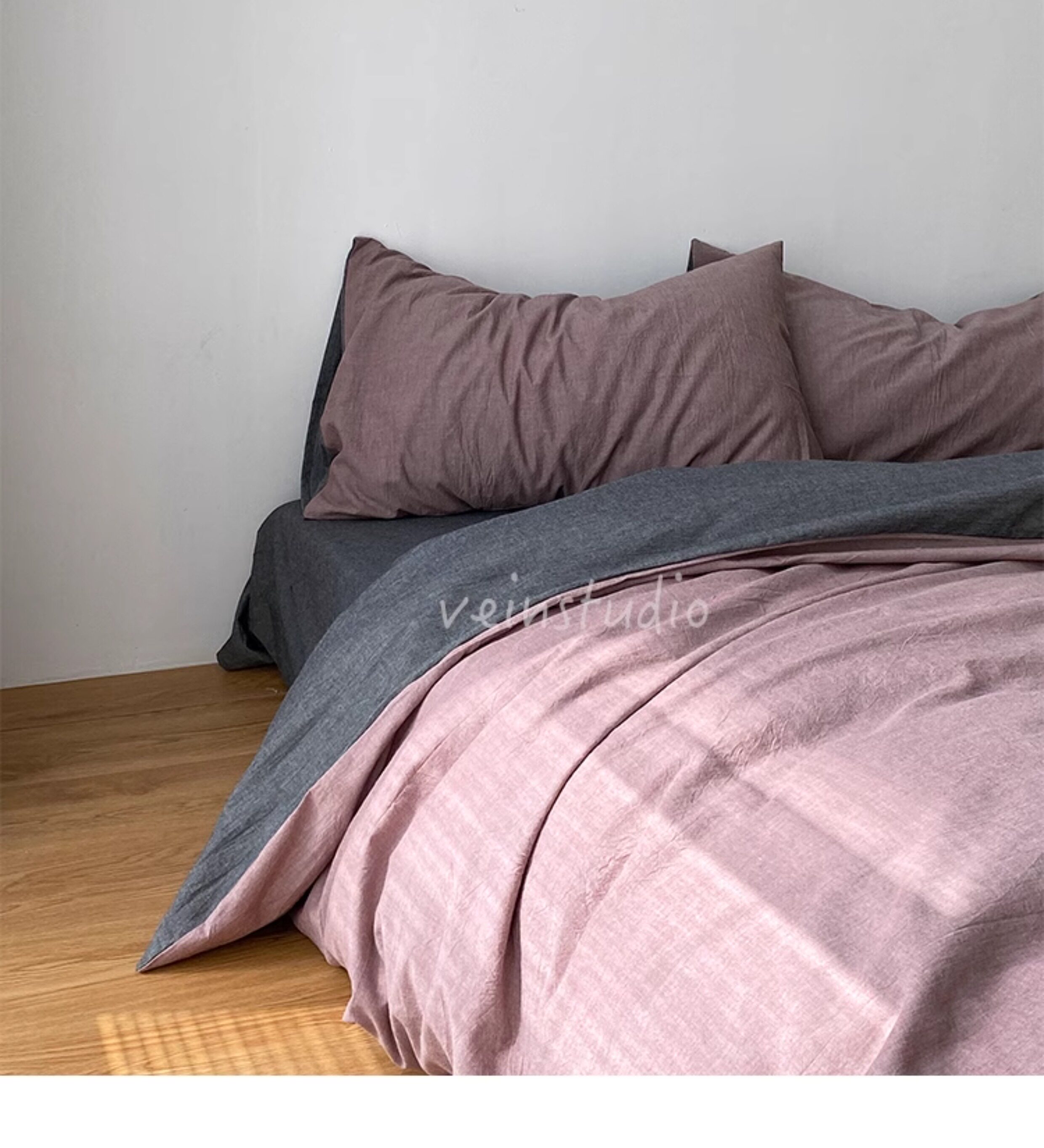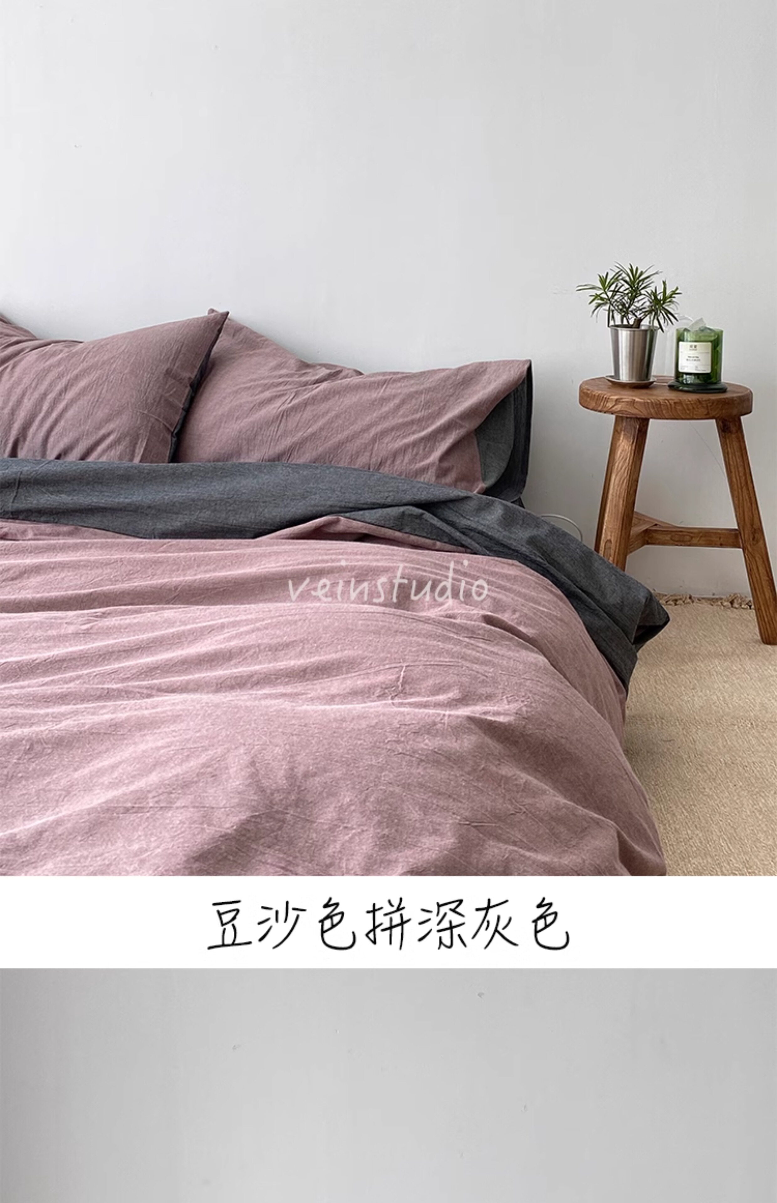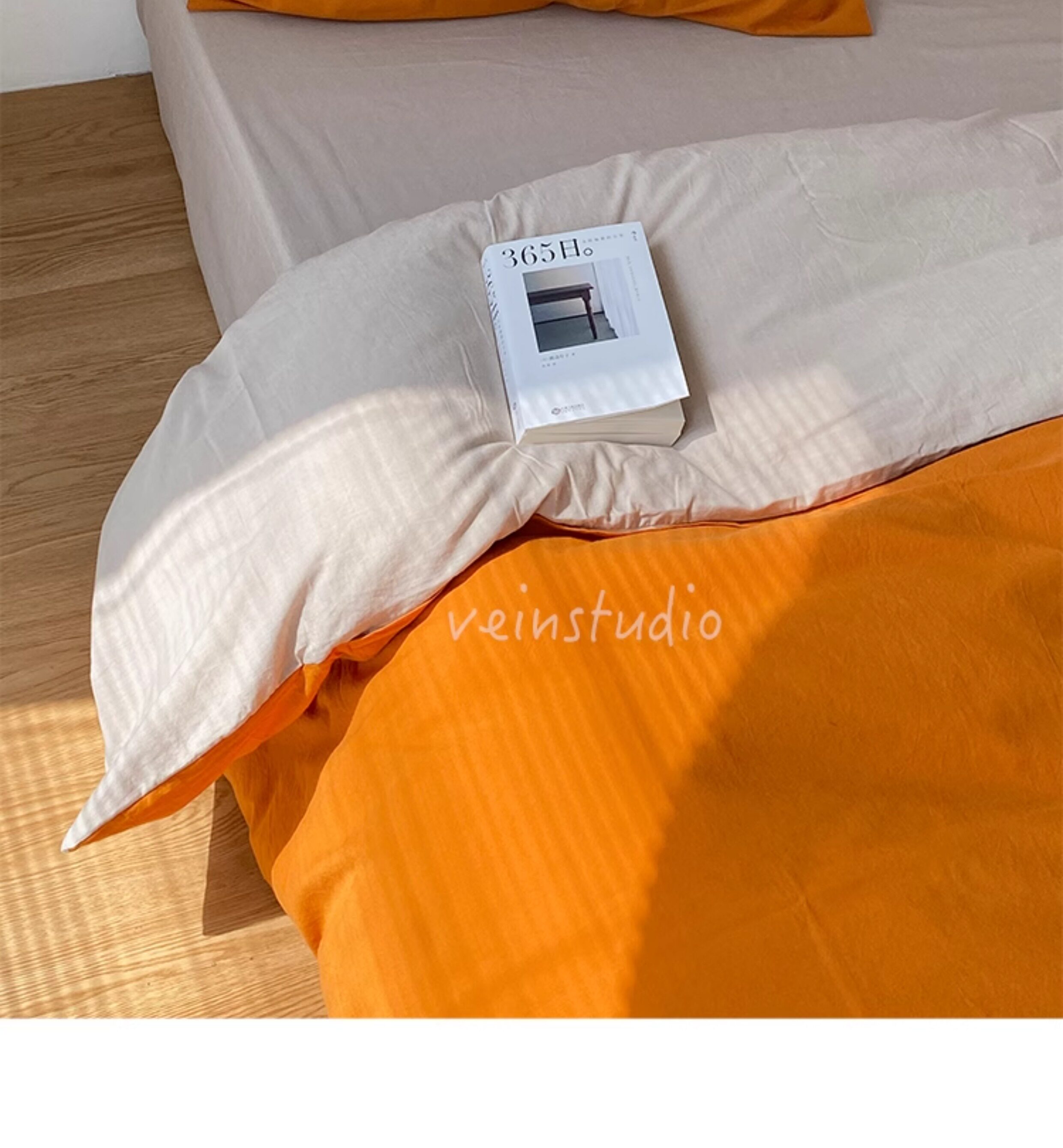 VEINSTUDIO高級冷淡風黑色條紋四件套純棉全棉床單被套床上用品