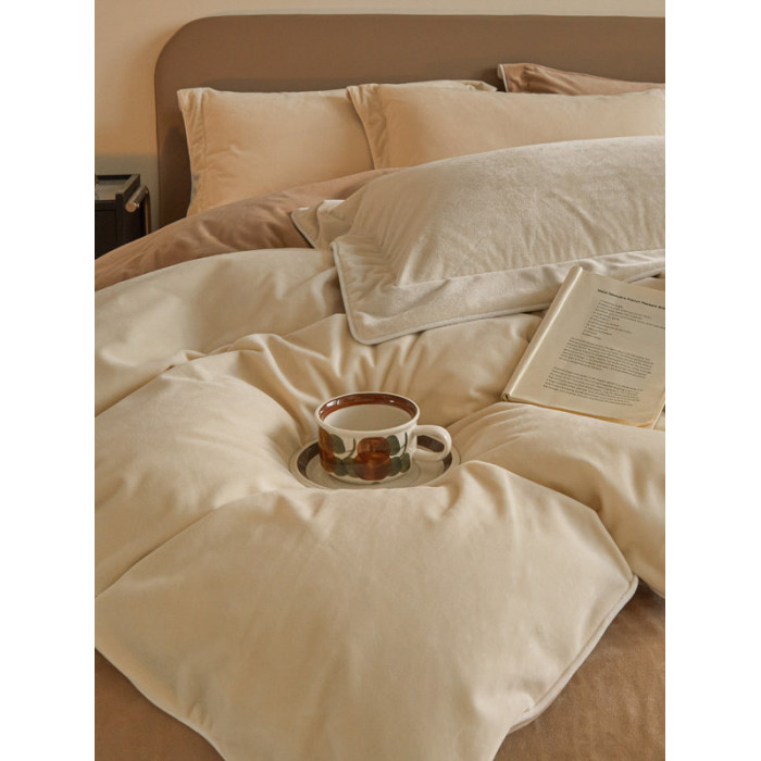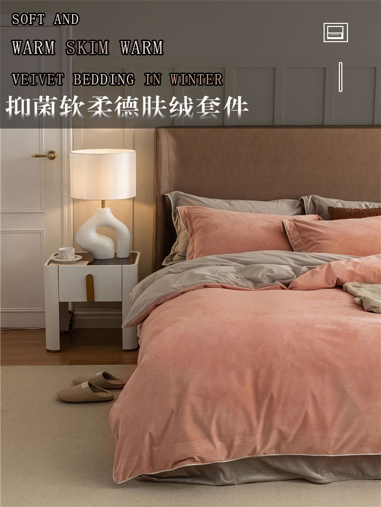 牛奶絨四件套珊瑚絨冬季保暖絨面輕奢床上雙面加絨被套床品法蘭絨